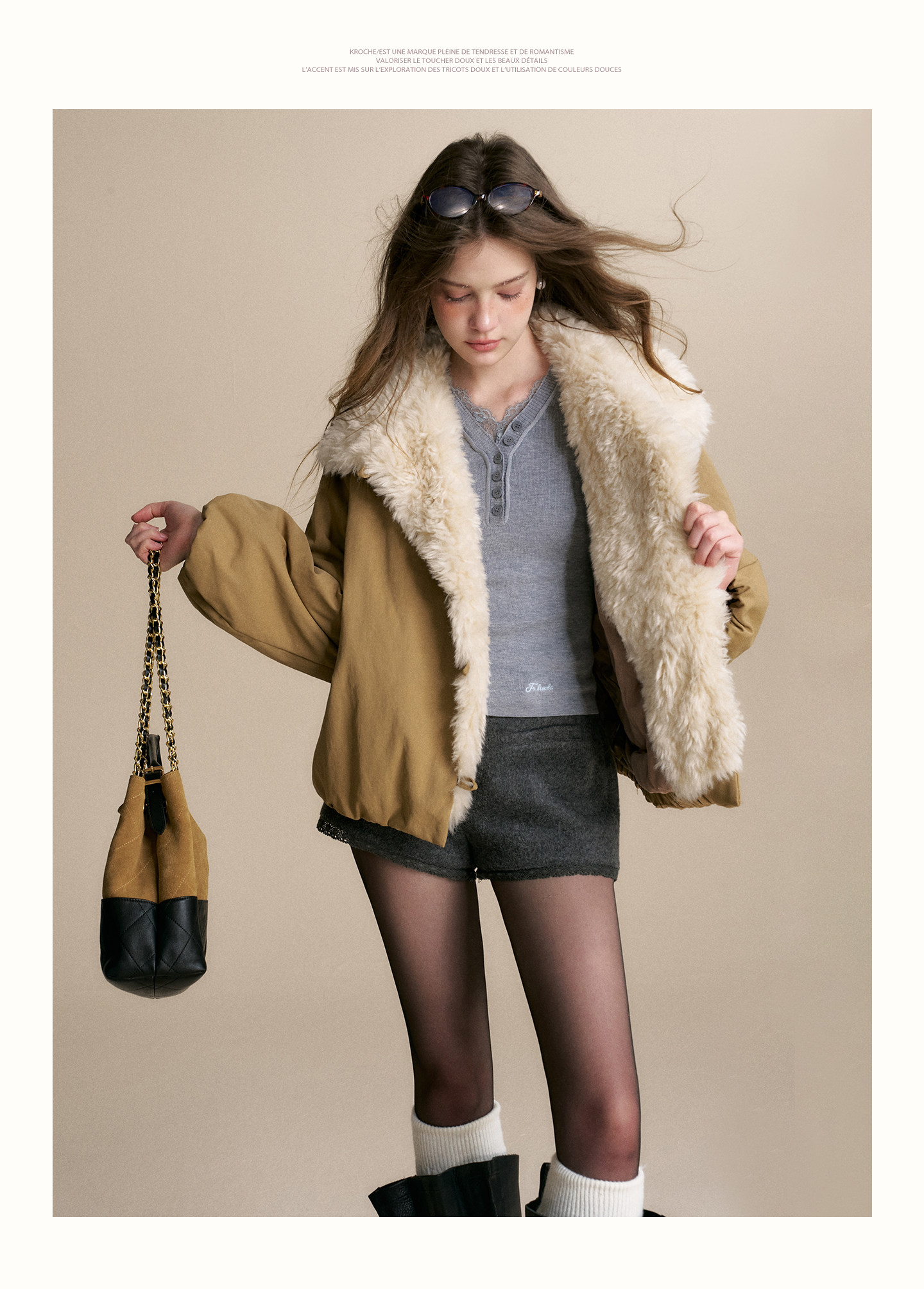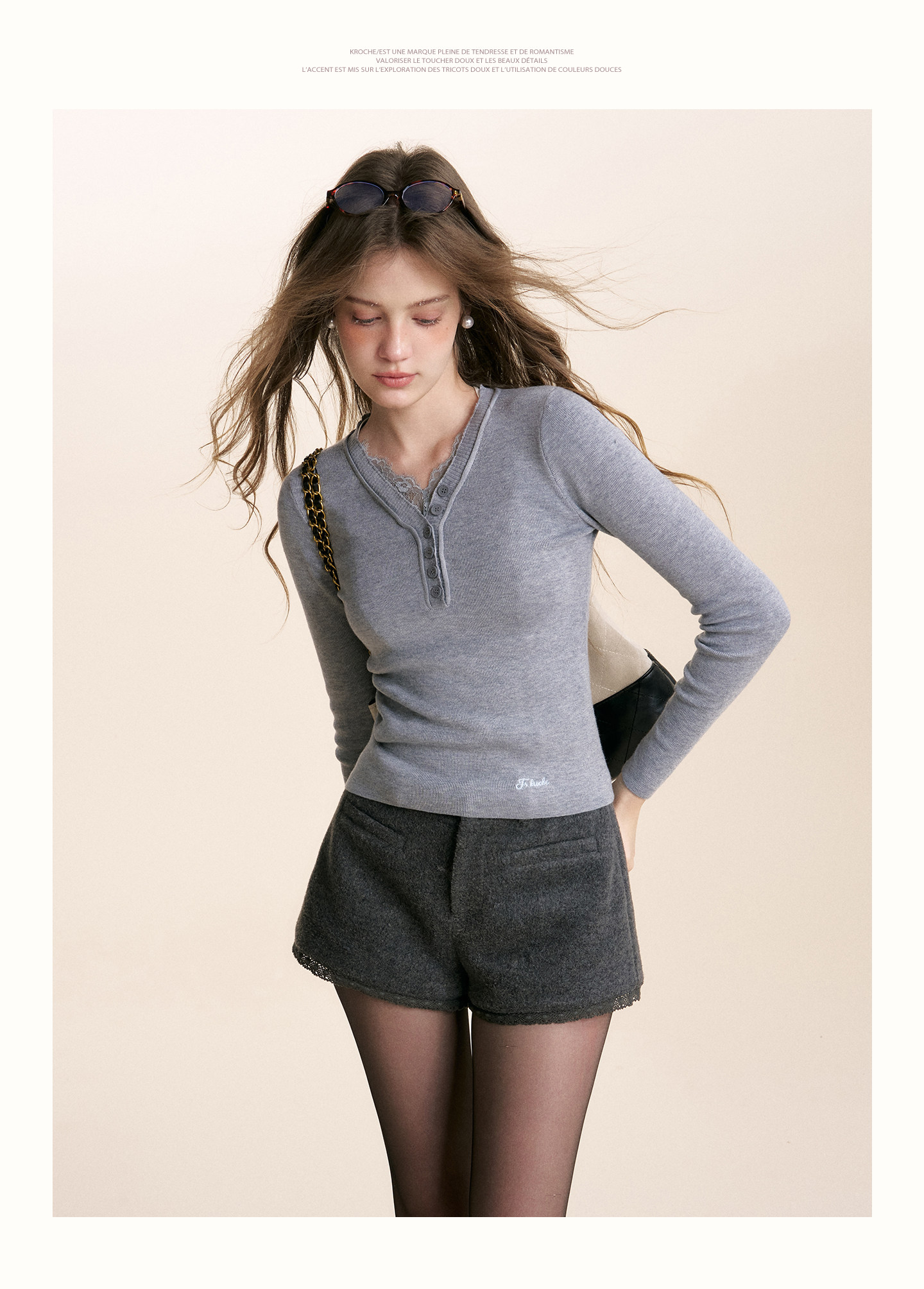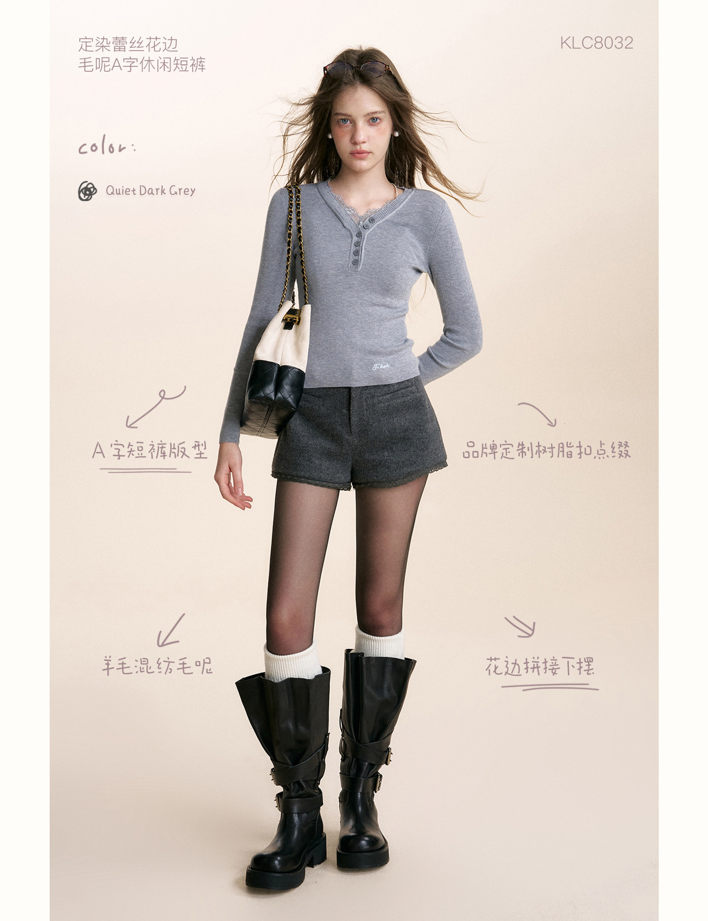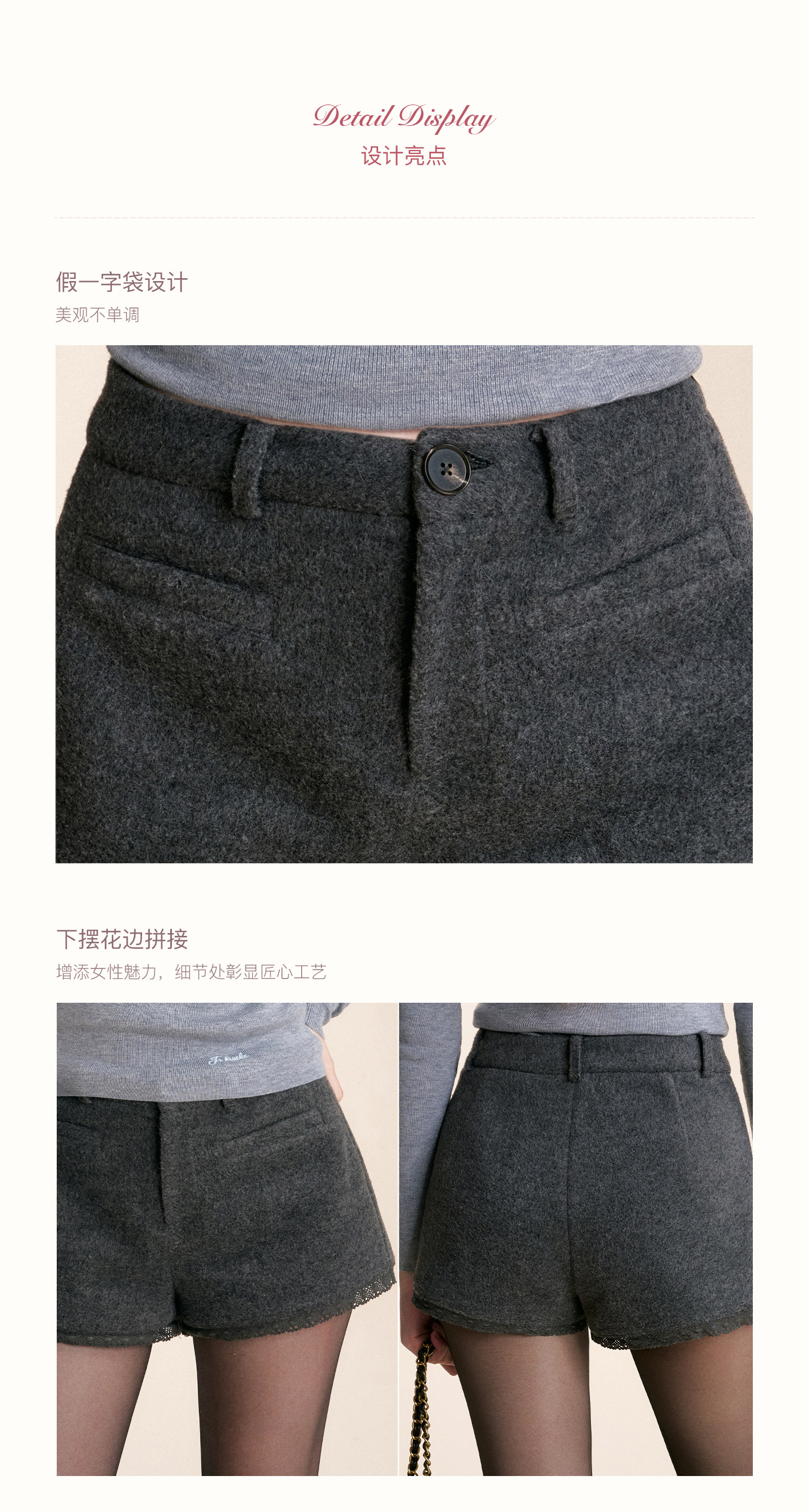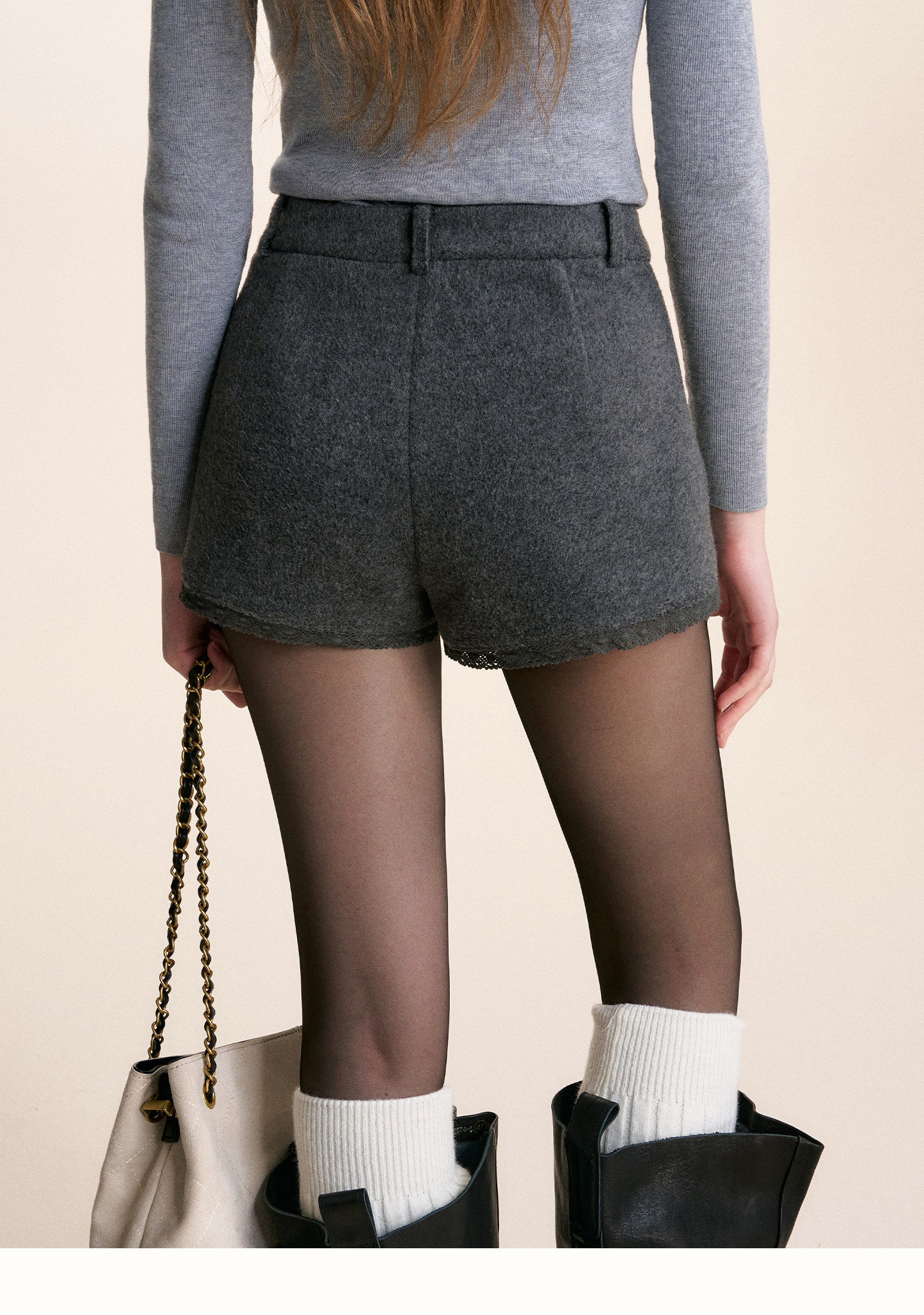 Kroche 25Aw Geek Chic Custom-Dyed Lace Trim Patchwork Wool A-Line Versatile Shorts