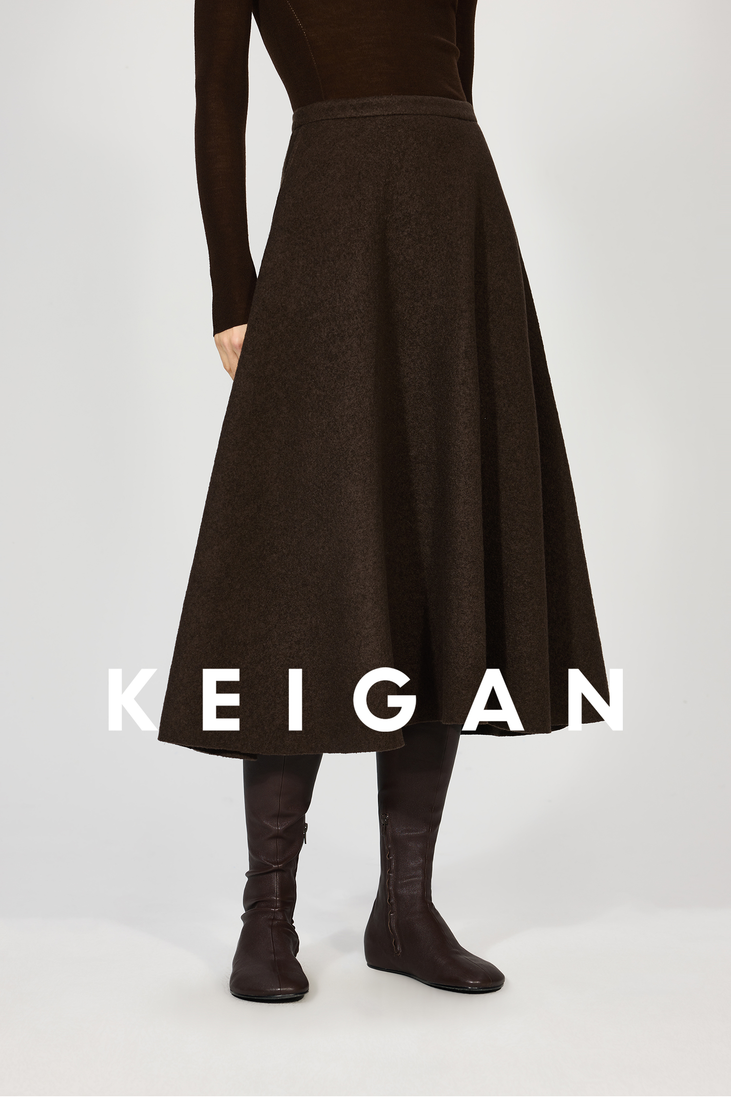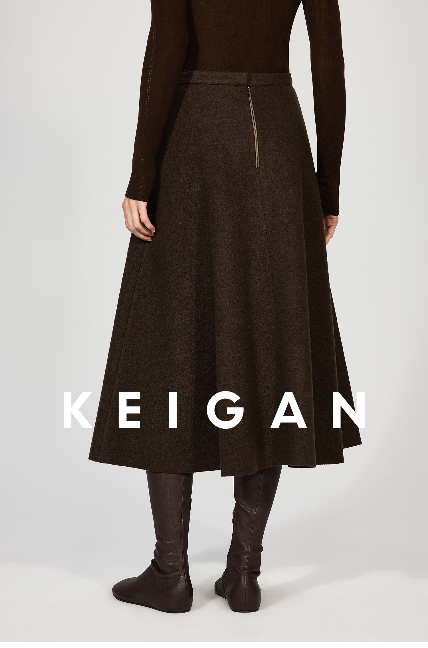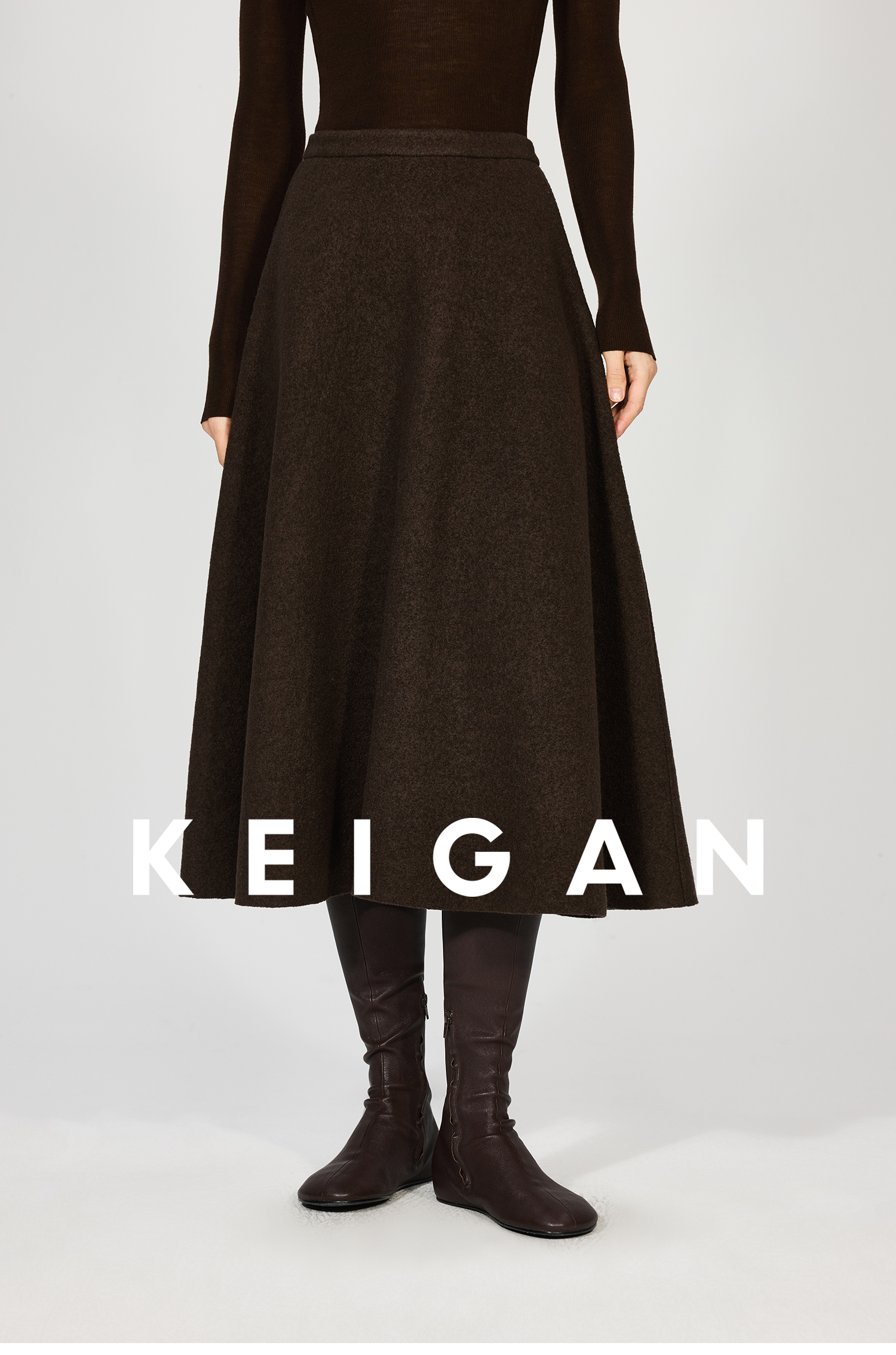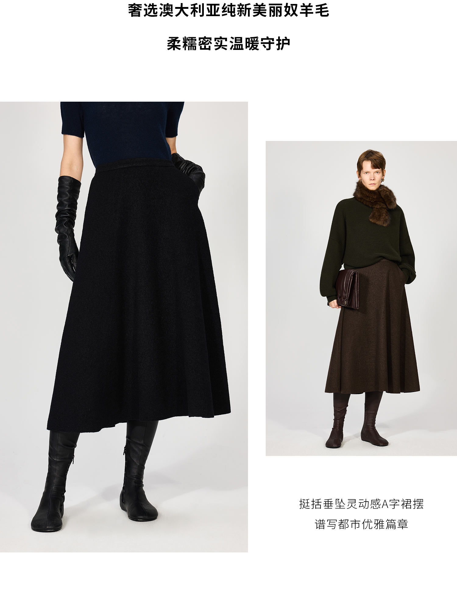 Open-Front/Australian Mixed-Color Looped Wool Merino Knit Wool Classic Elegant Silk Waist A-Line Skirt