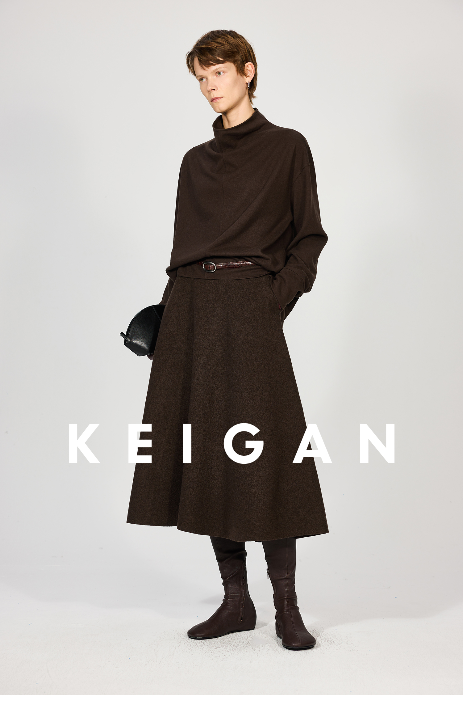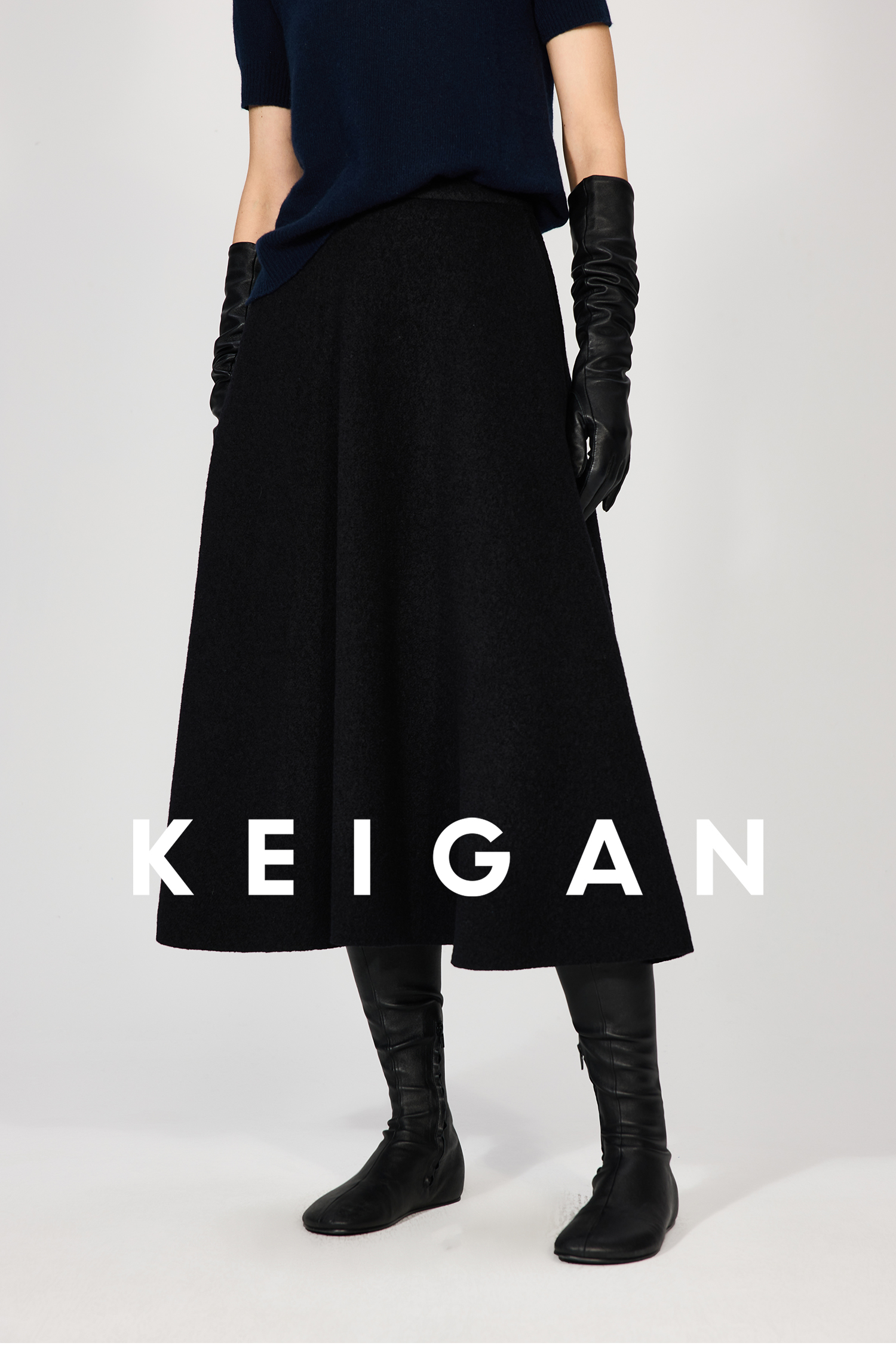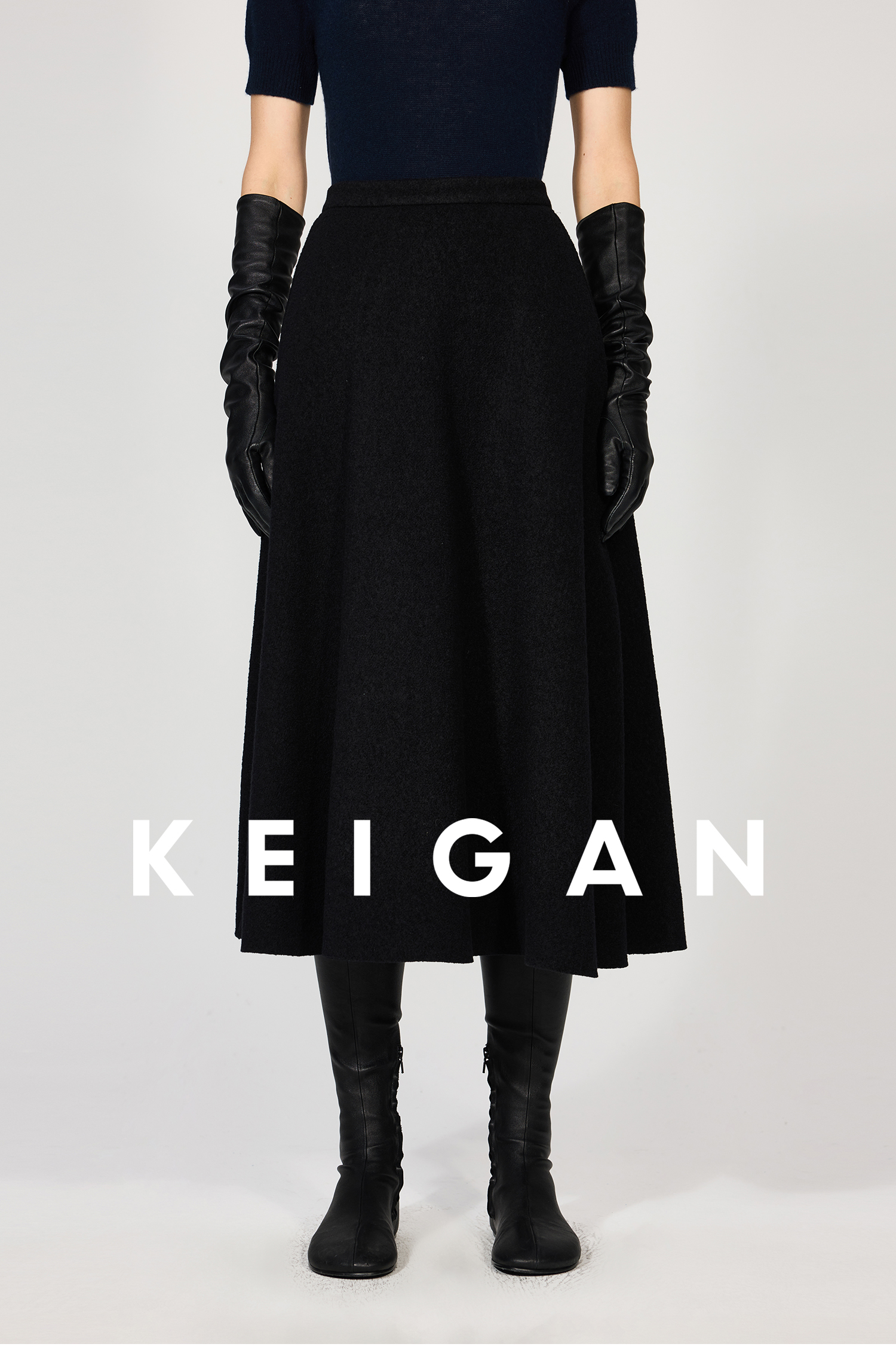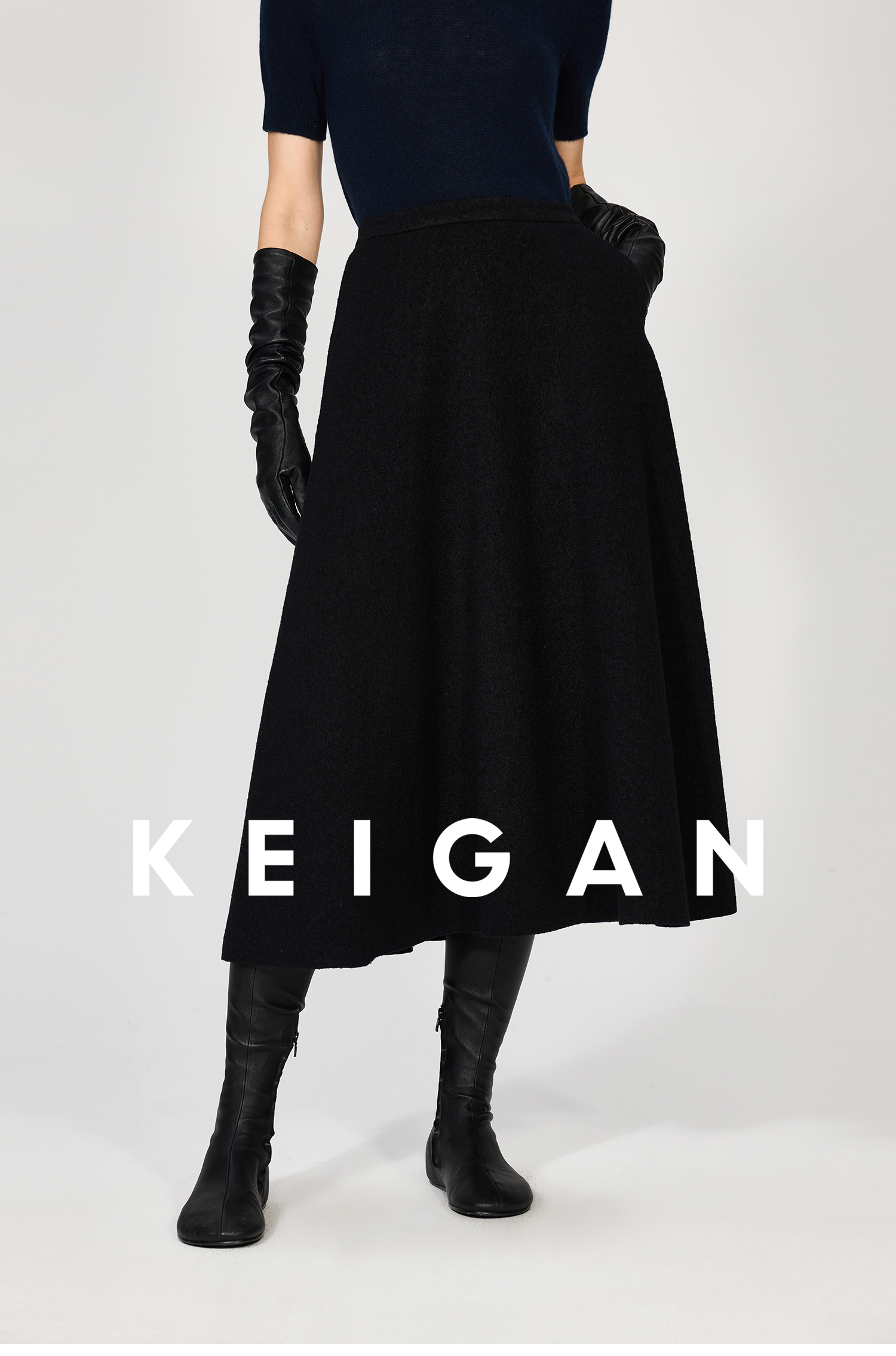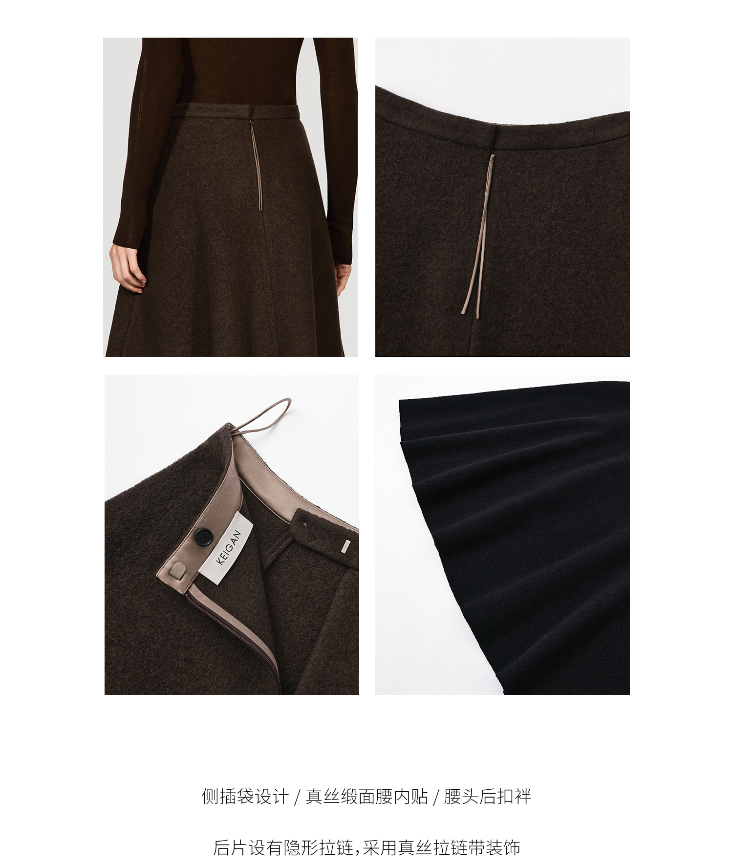 Open-Front/Australian Mixed-Color Looped Wool Merino Knit Wool Classic Elegant Silk Waist A-Line Skirt