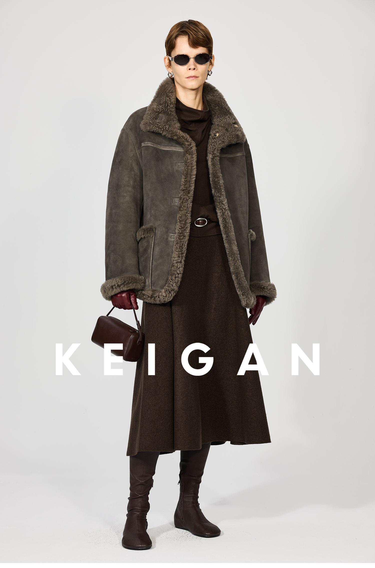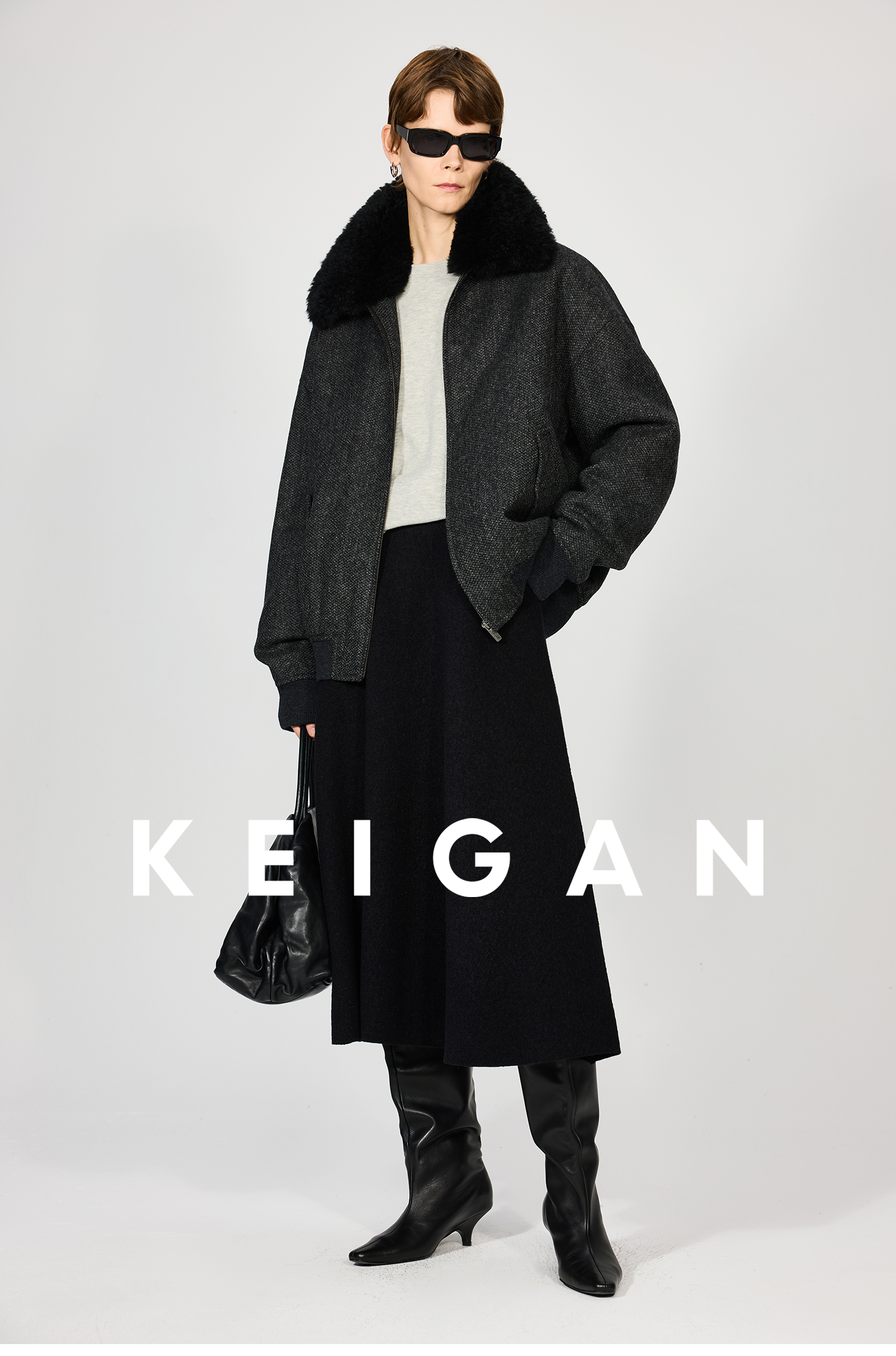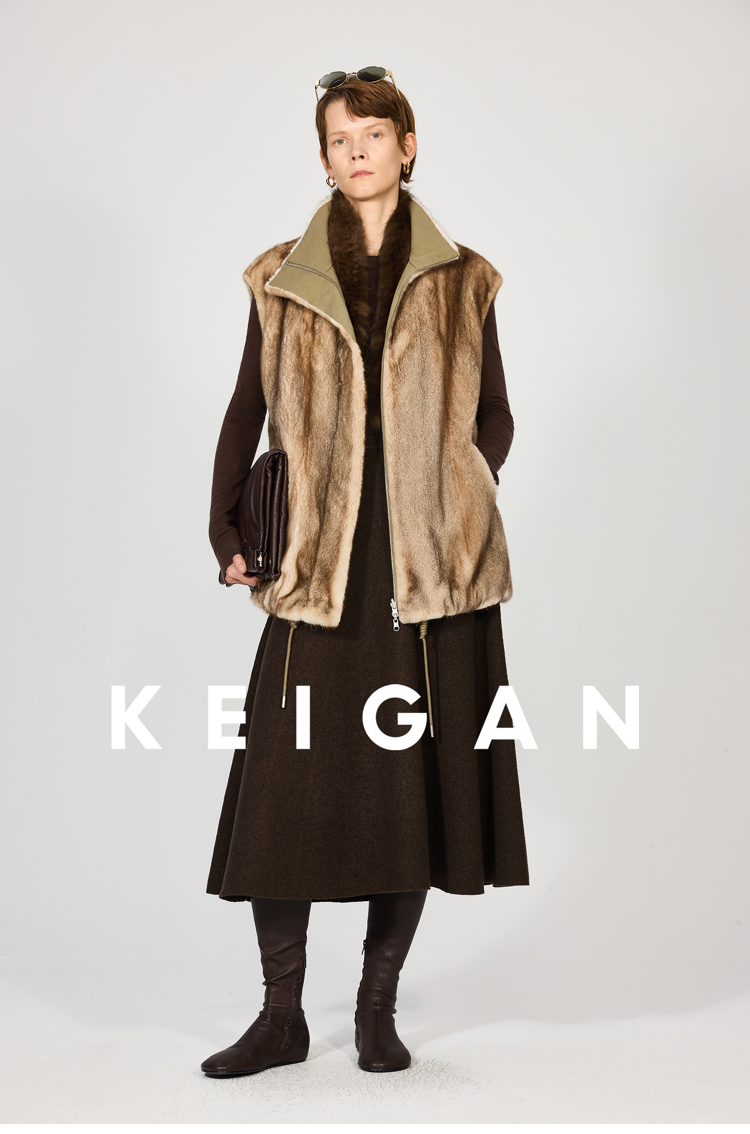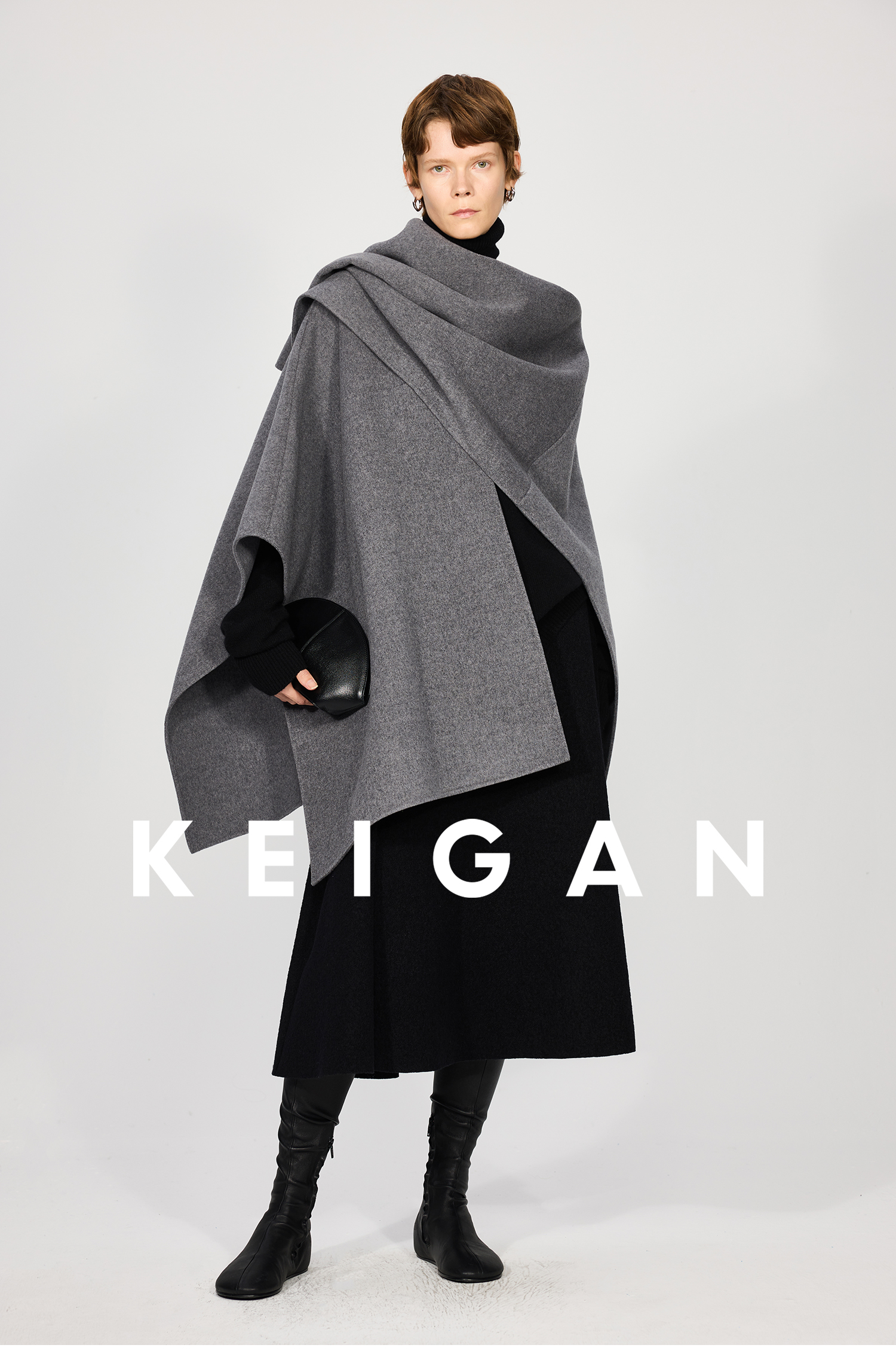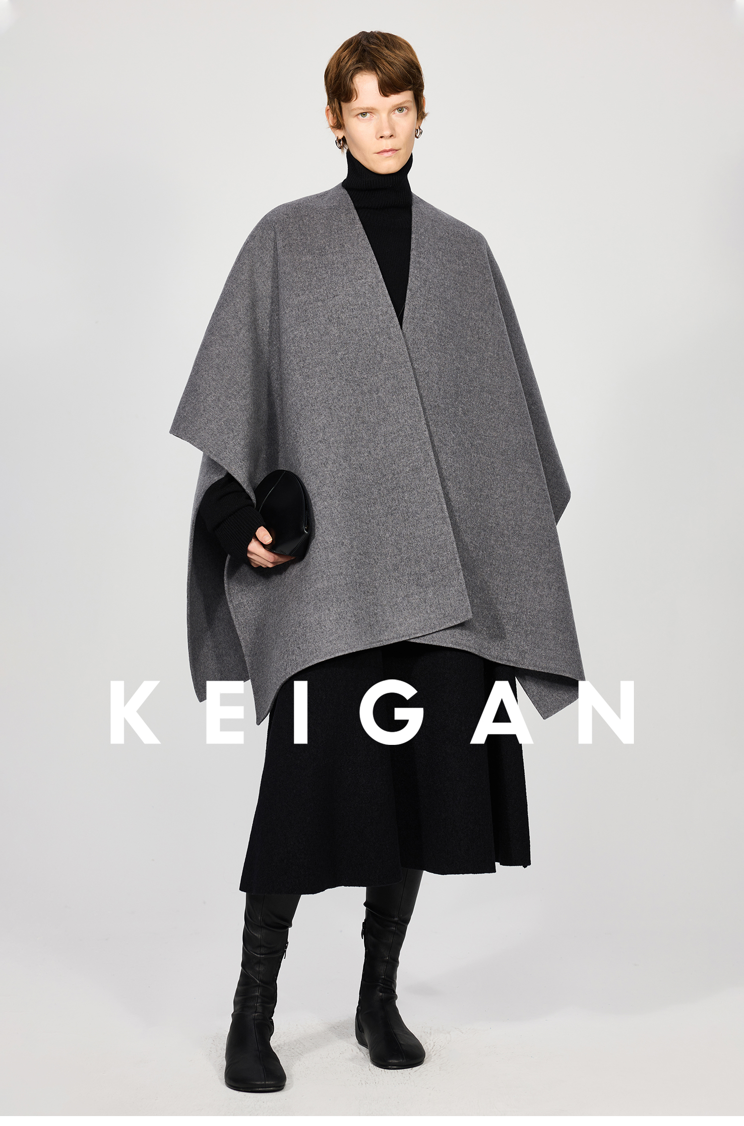 Open-Front/Australian Mixed-Color Looped Wool Merino Knit Wool Classic Elegant Silk Waist A-Line Skirt