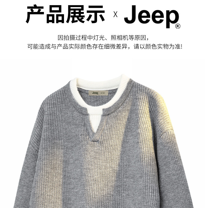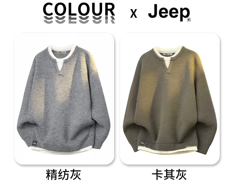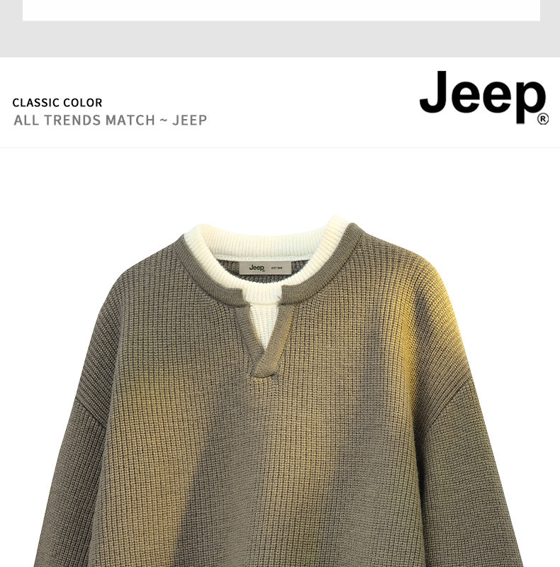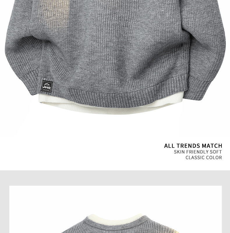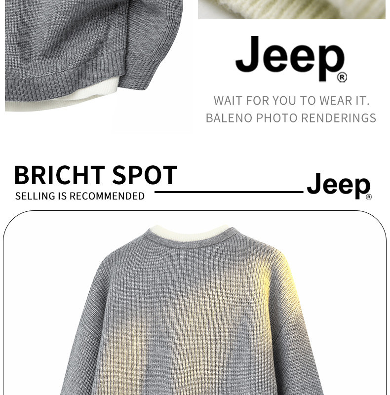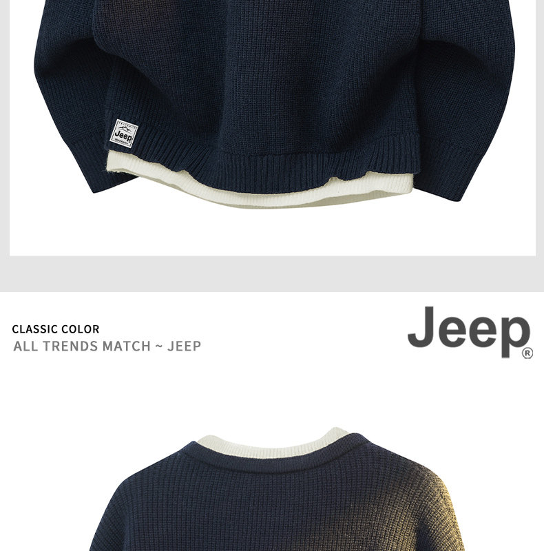 Jeep Jeep Two-Piece Style Knitted Sweater for Men 2026 New Round Neck Pullover Trendy Brand Long-Sleeve Top Base Shirt