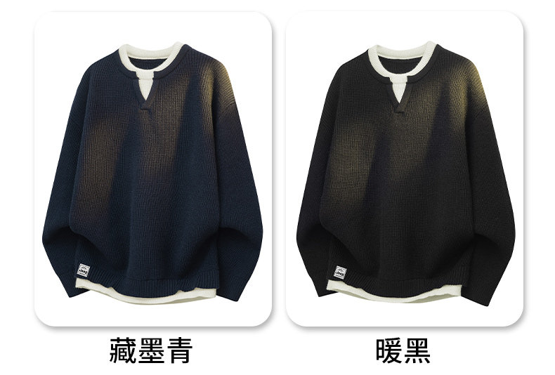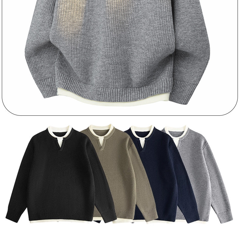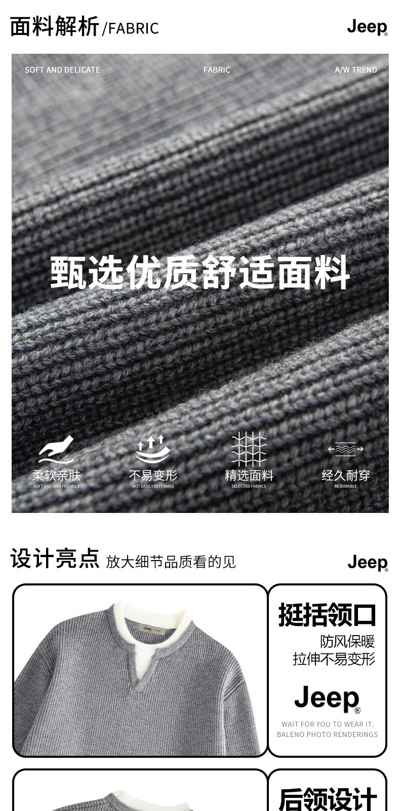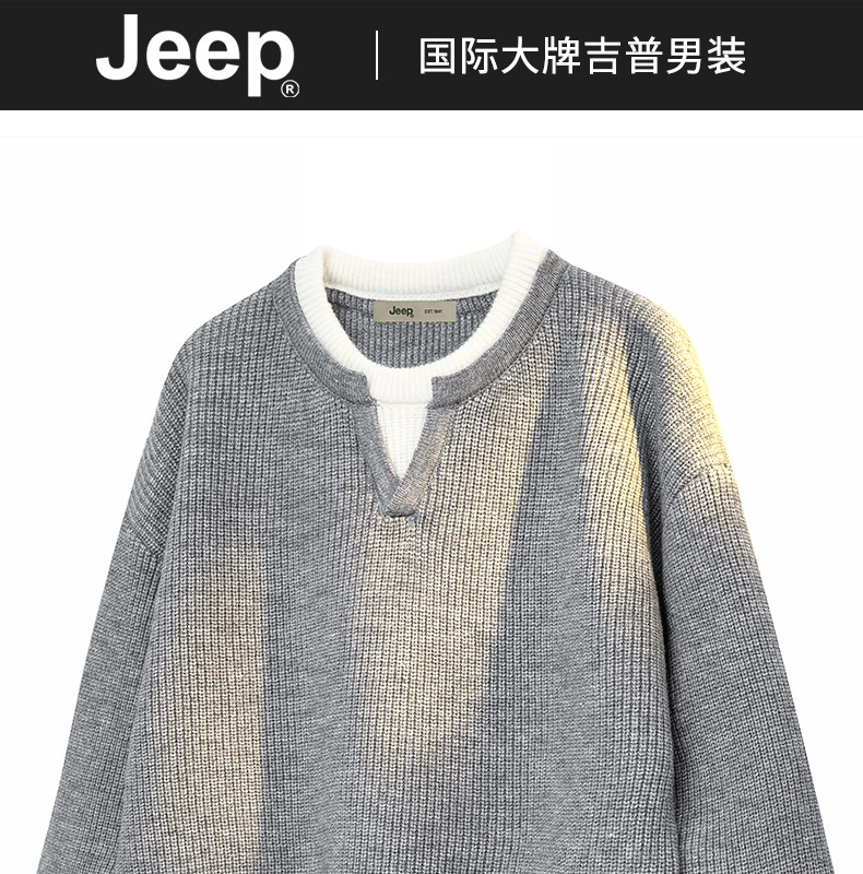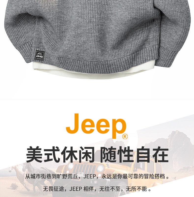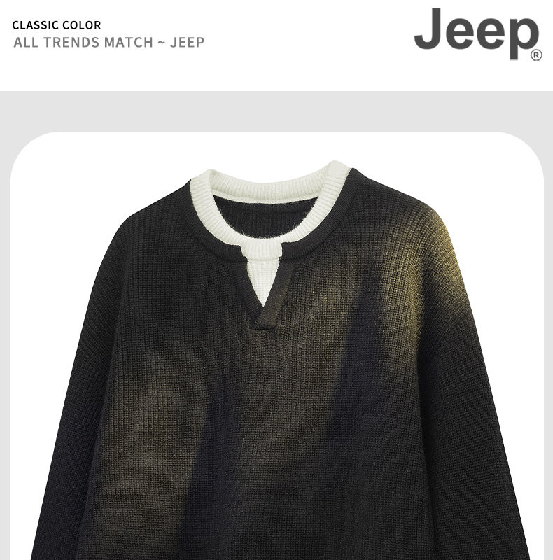 Jeep Jeep Two-Piece Style Knitted Sweater for Men 2026 New Round Neck Pullover Trendy Brand Long-Sleeve Top Base Shirt