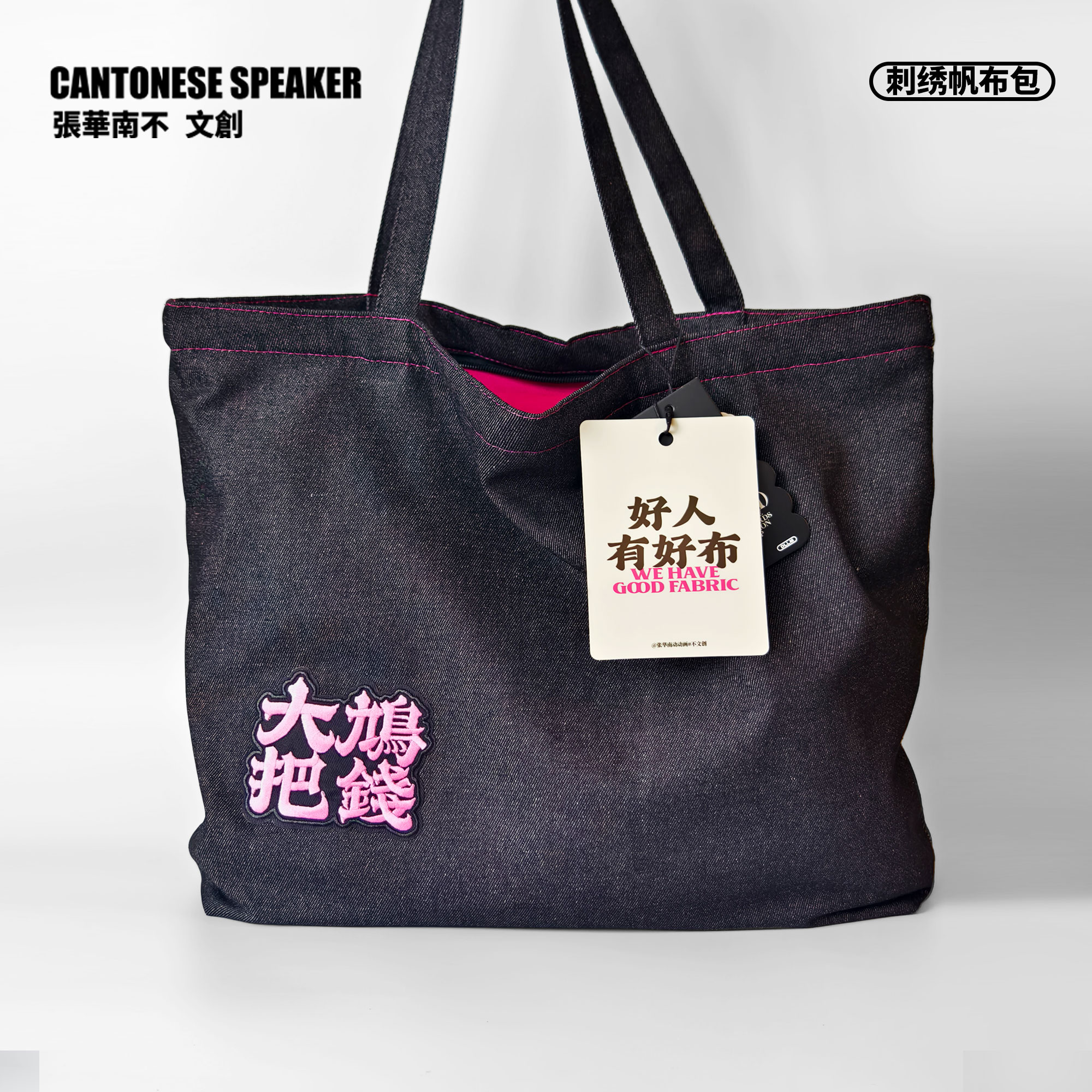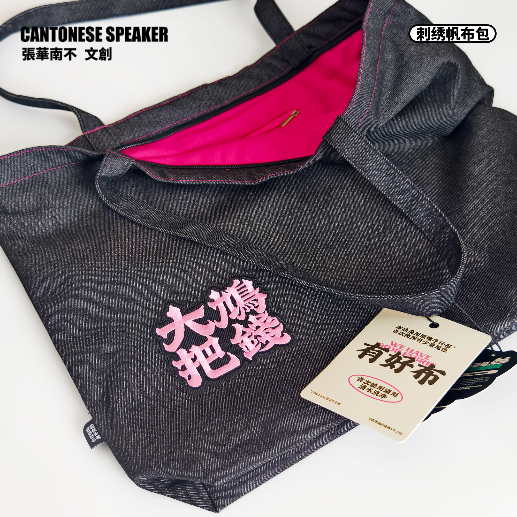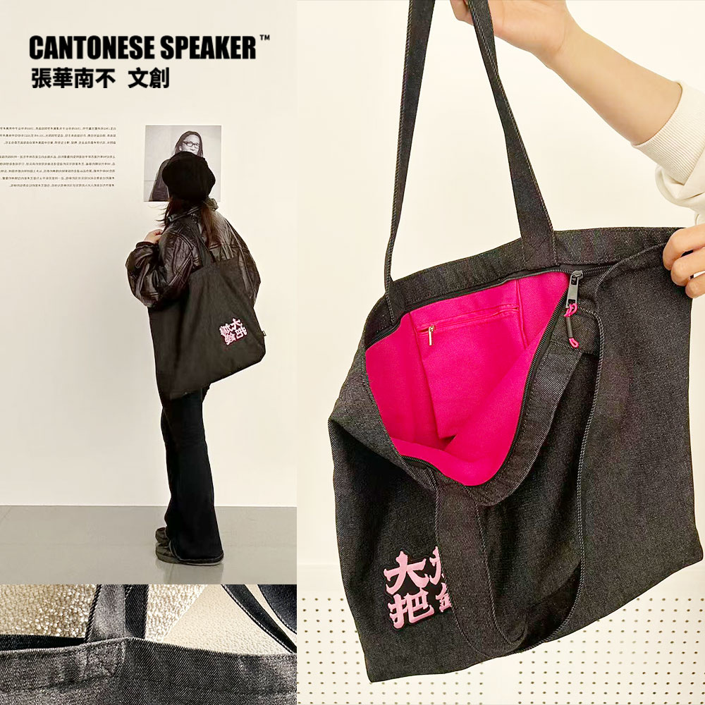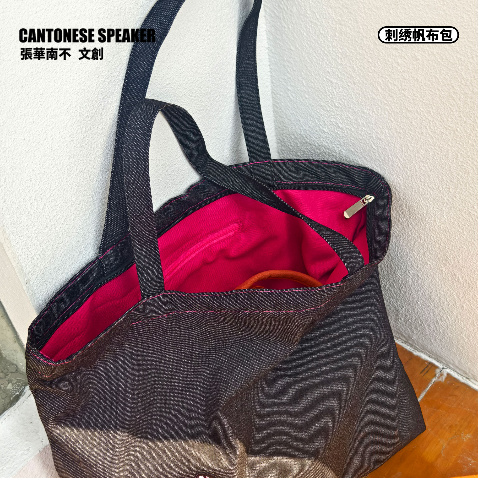 【Yue Yun New Bag】Cantonese Embroidered Denim Large Capacity Canvas Tote Bag
