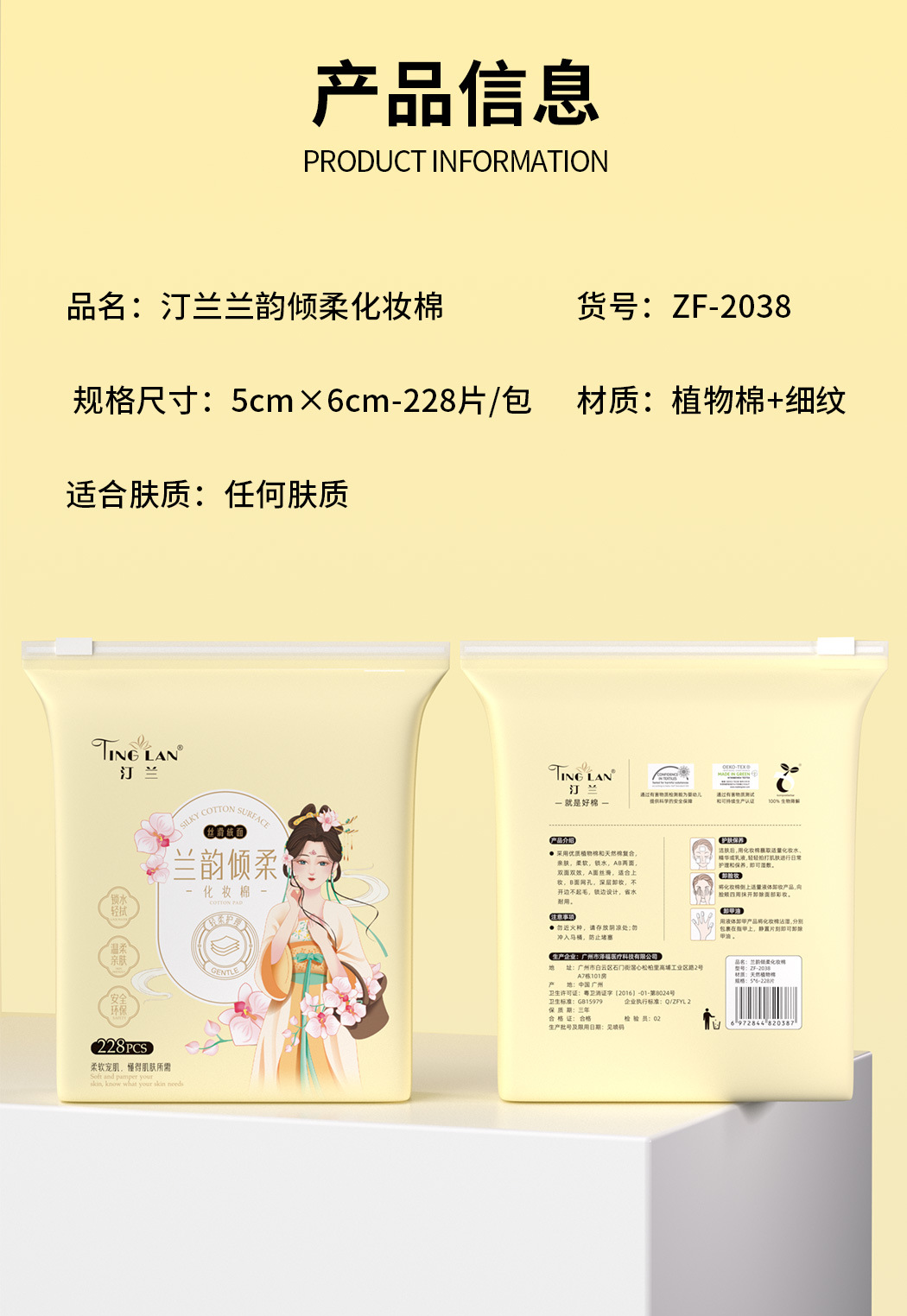 Tinglan Makeup Remover Cotton Pads, Large Size, Women's Facial Makeup Remover Cotton Pads, 228 Pieces, Large Packaging, Thickened, Specially Designed for Wet Compresses