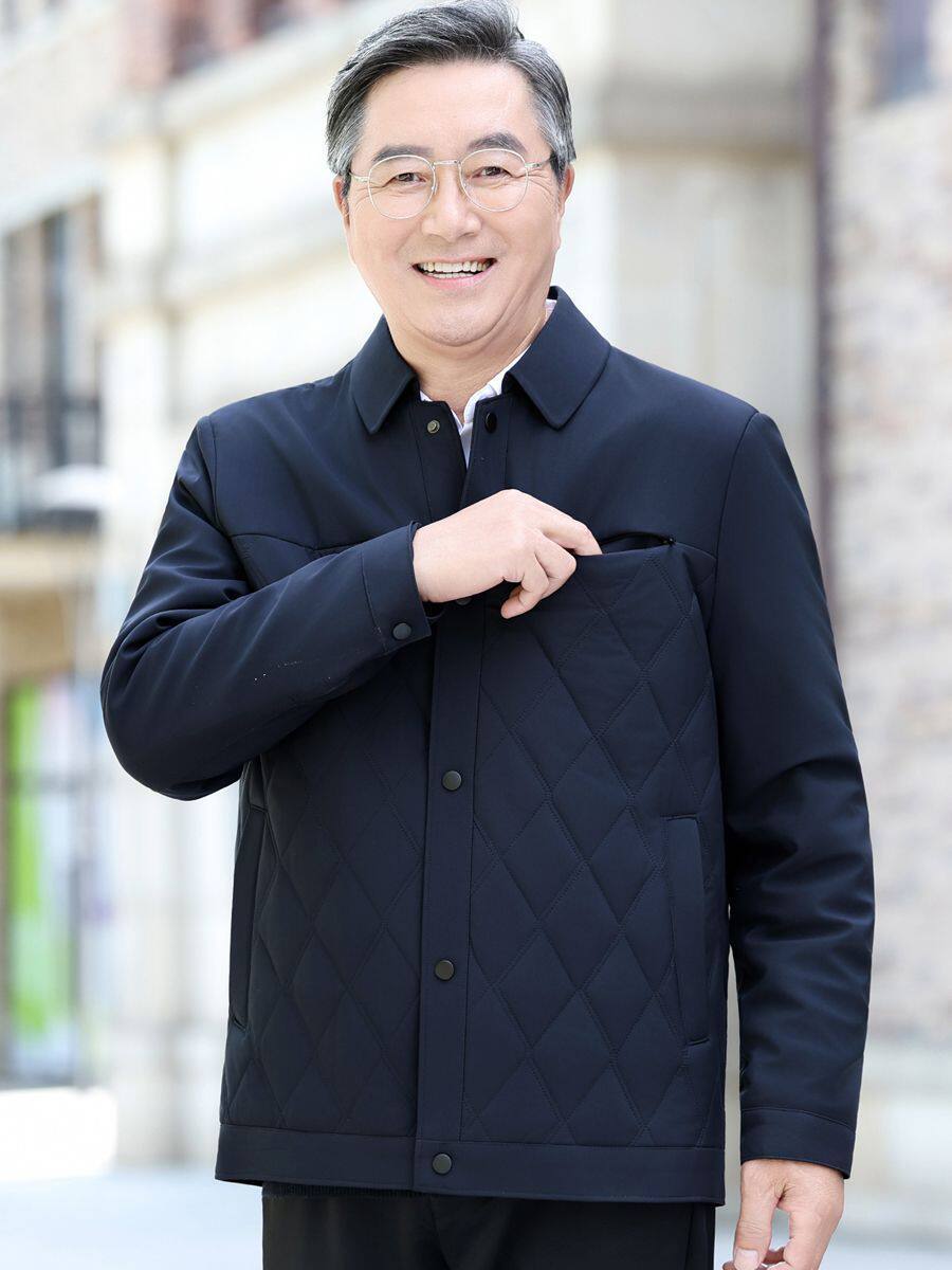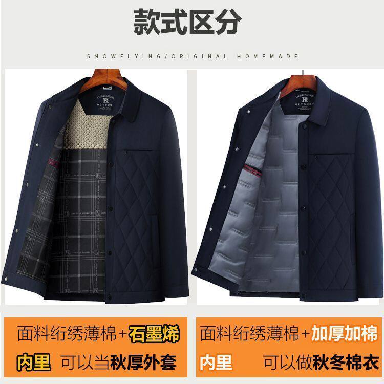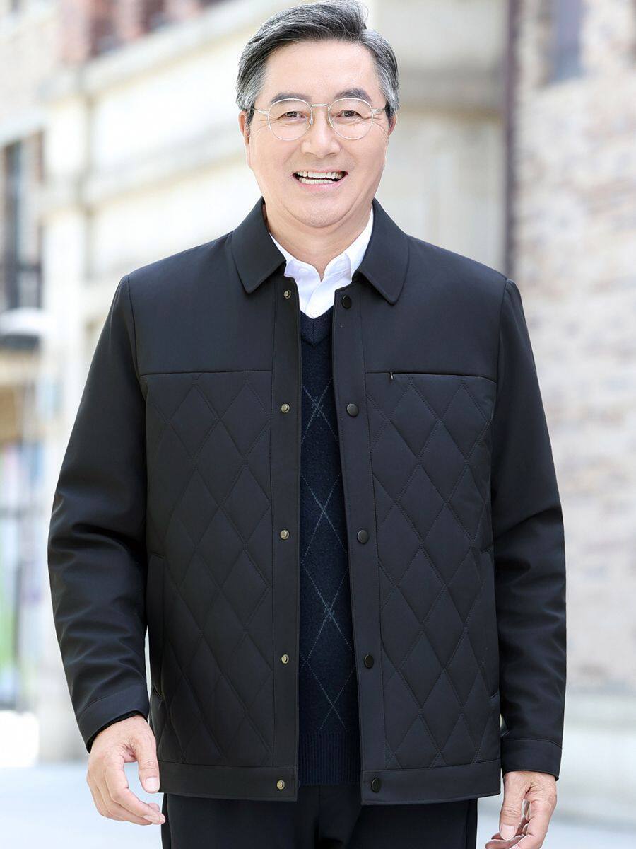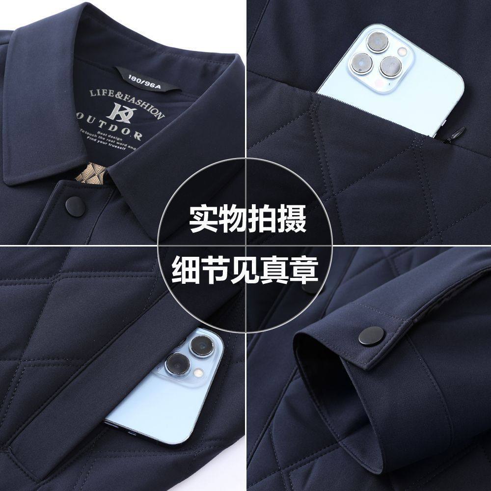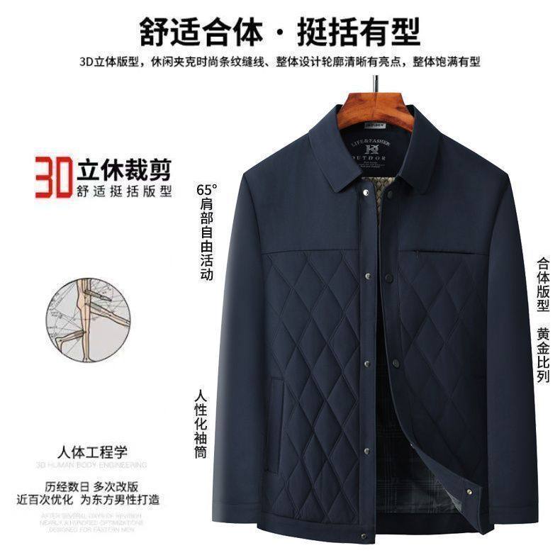Middle-Aged and Elderly Men's Jackets, Dad's Lapel Jackets, Men's Autumn Cotton-Padded Jackets, Lightweight Double-Layer Cotton Executive Jackets, Men's Jackets for Middle-Aged Men