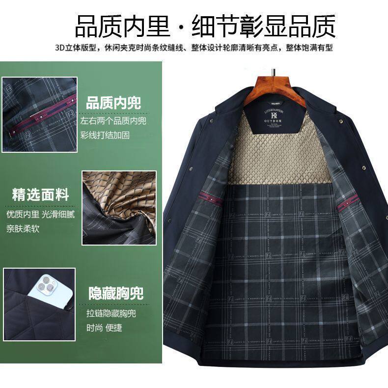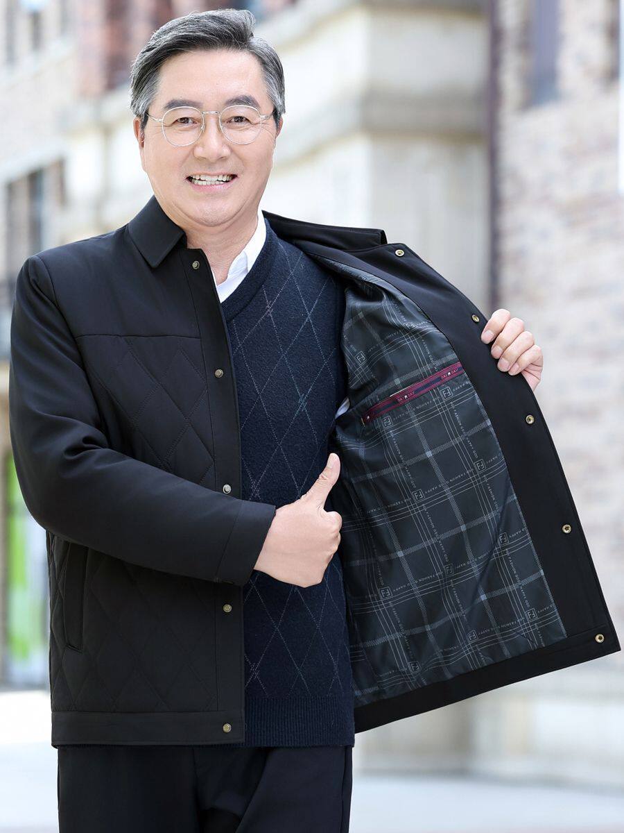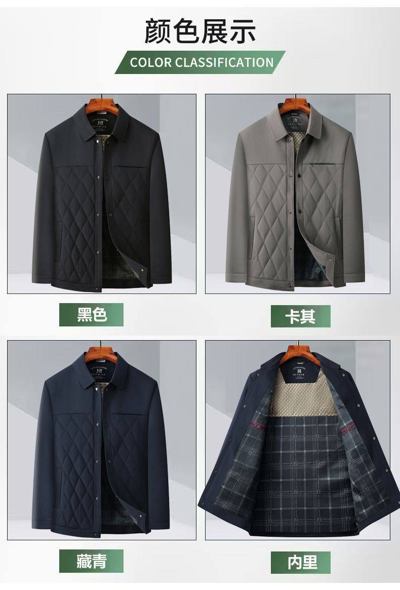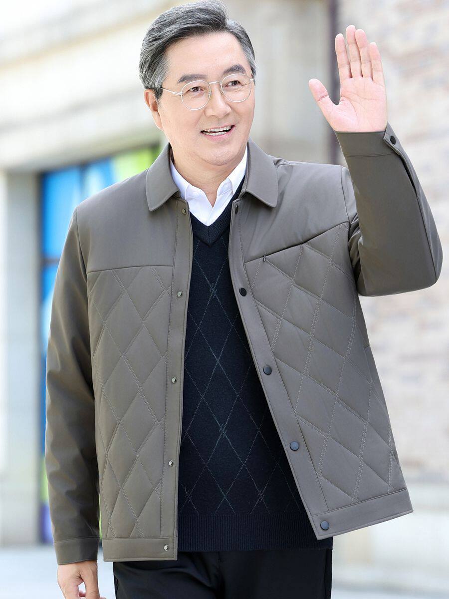 Middle-Aged and Elderly Men's Jackets, Dad's Lapel Jackets, Men's Autumn Cotton-Padded Jackets, Lightweight Double-Layer Cotton Executive Jackets, Men's Jackets for Middle-Aged Men