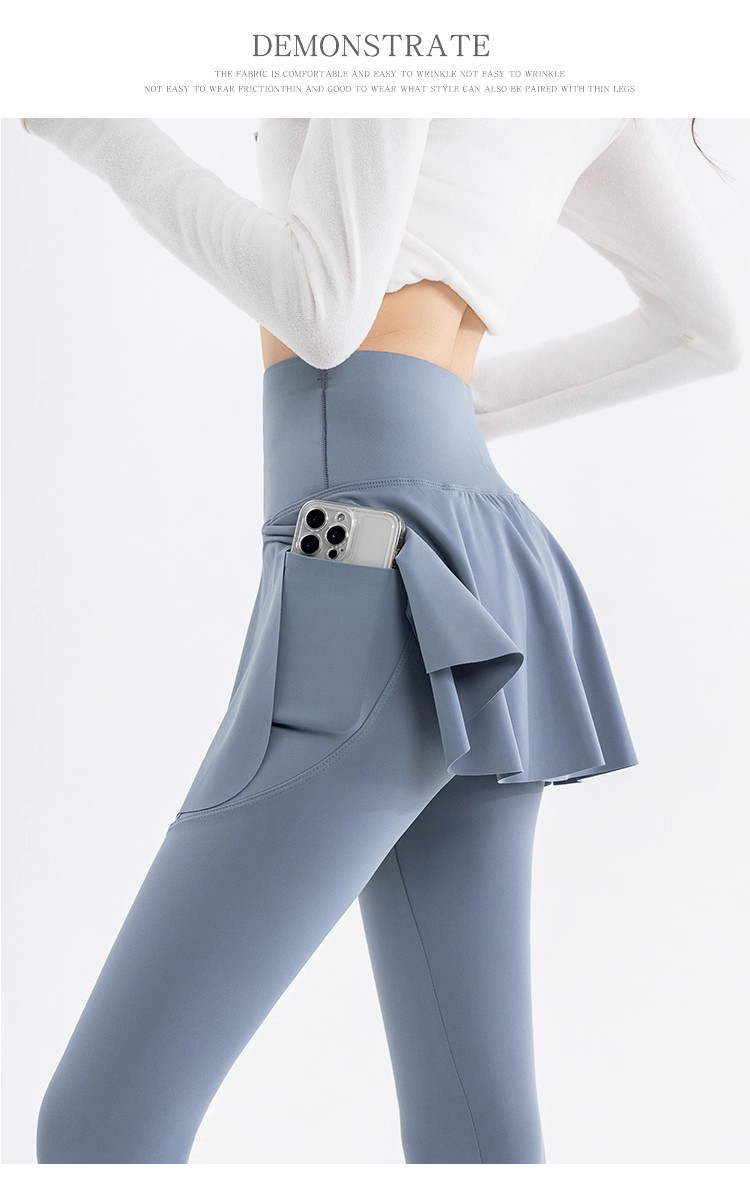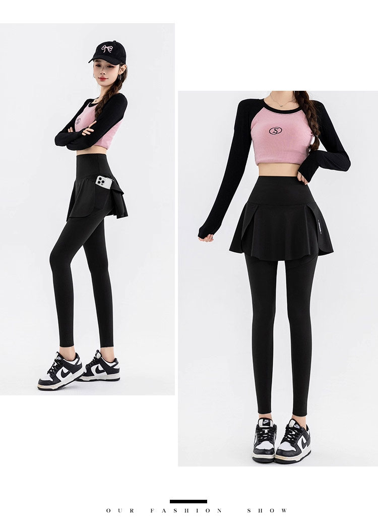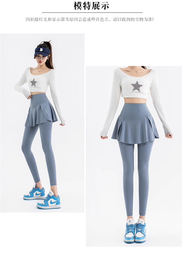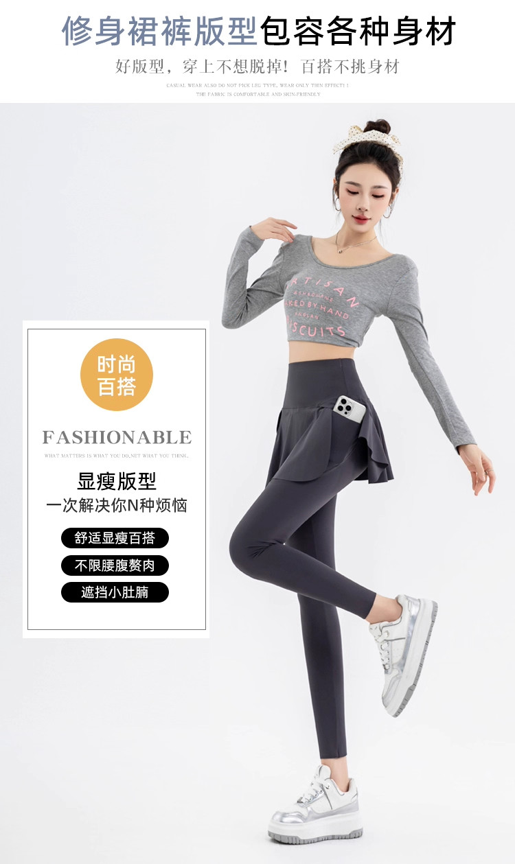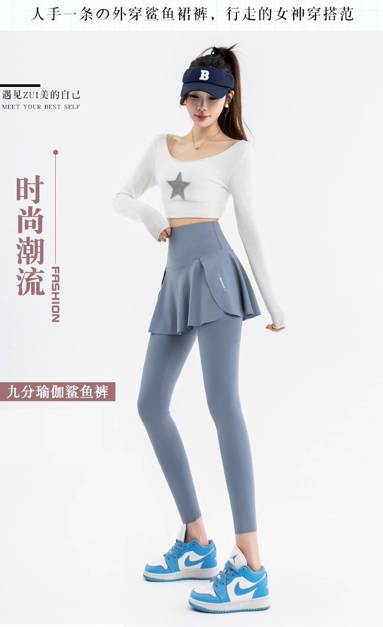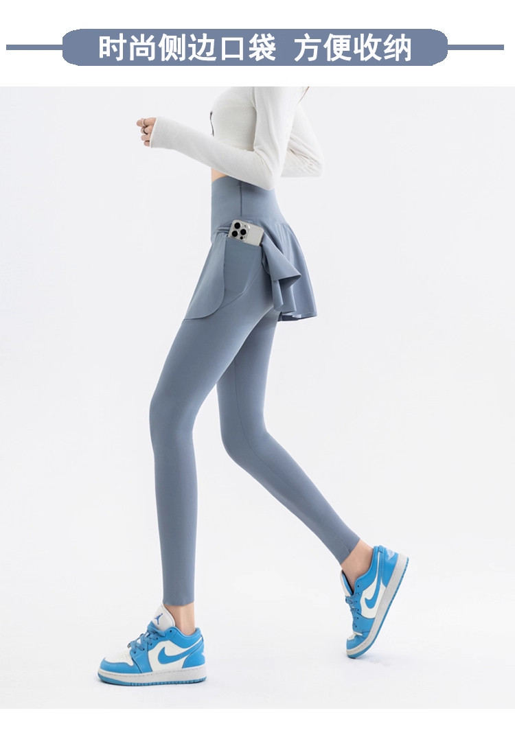 鲨鱼裤女士秋冬季口袋假两件外穿加绒高腰收腹瑜伽弹力健身打底裤