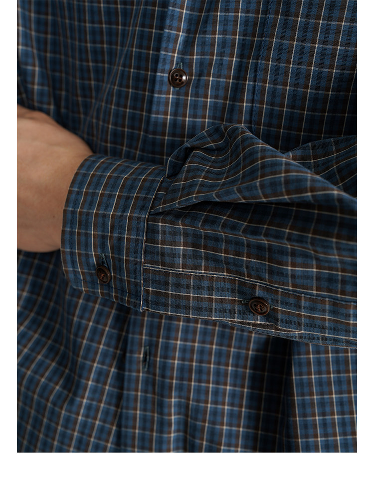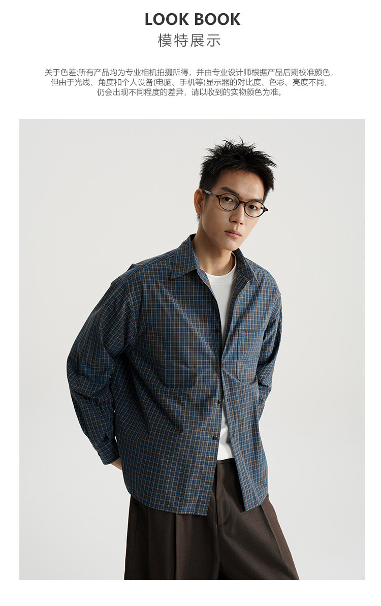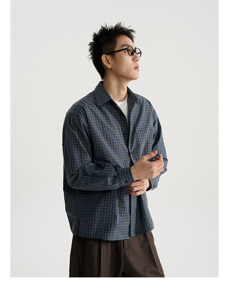 Awt25Aw Retro Blue and Brown Plaid Simple Loose Versatile Long-Sleeved Shirt for Men and Women