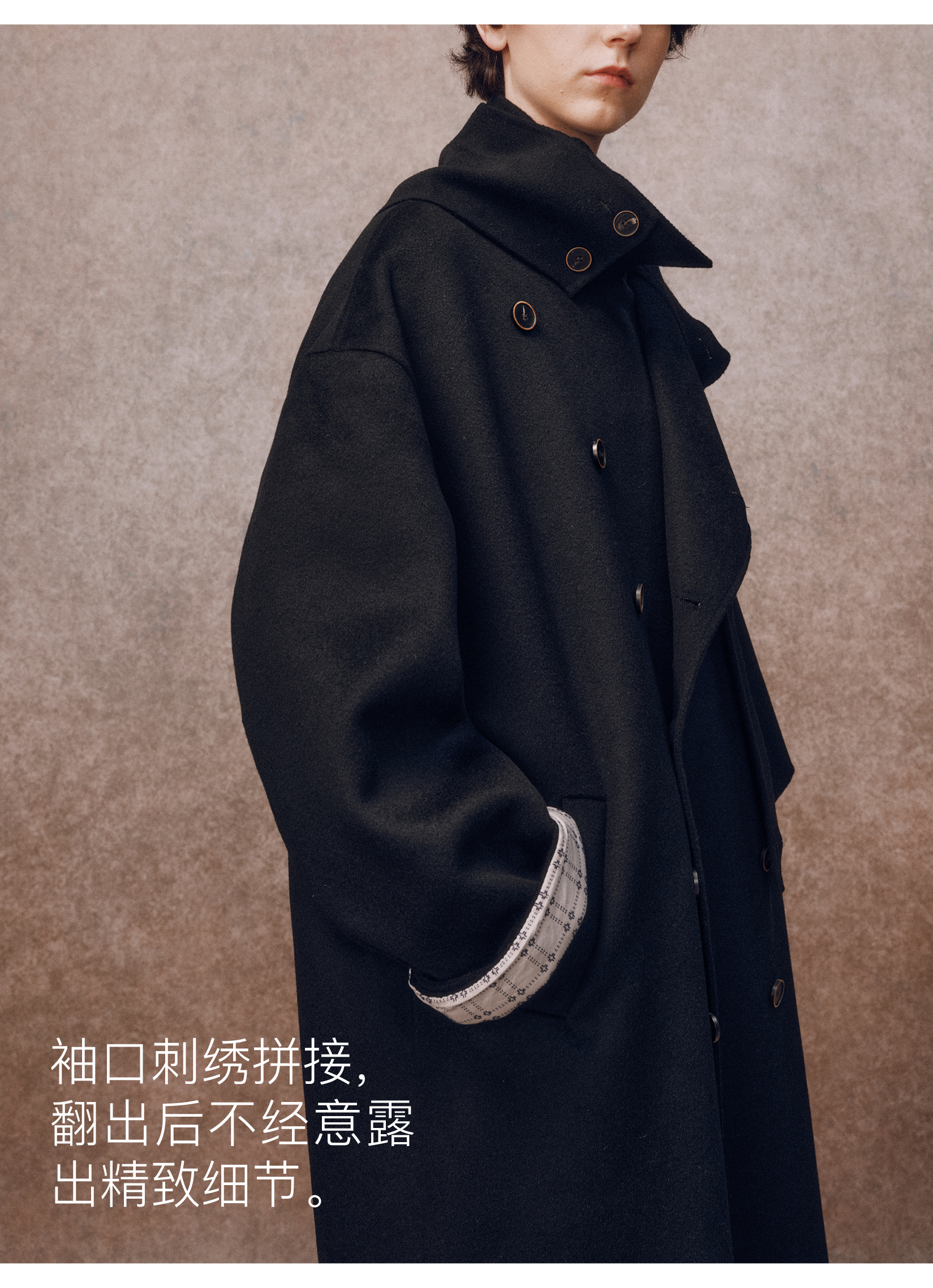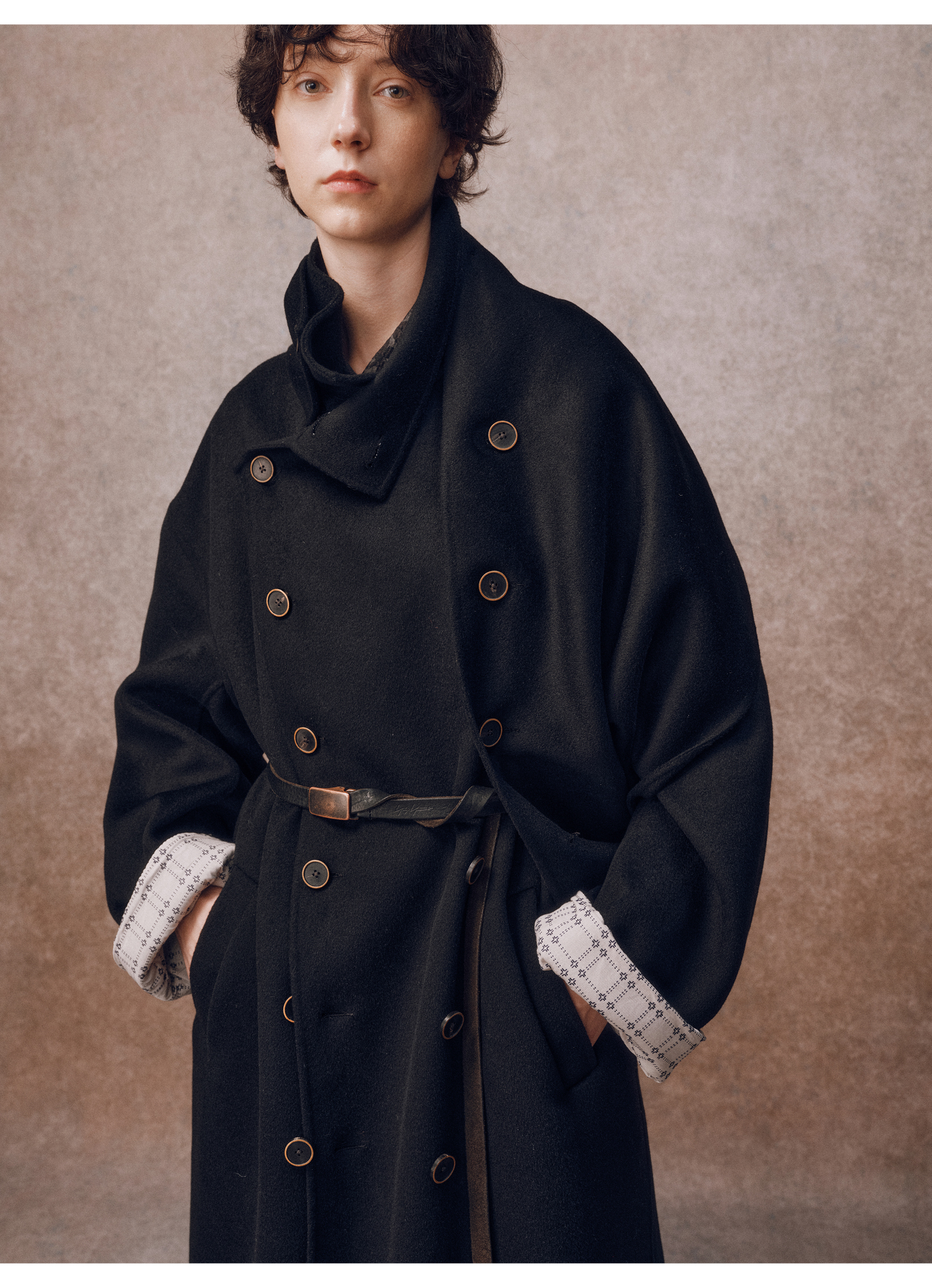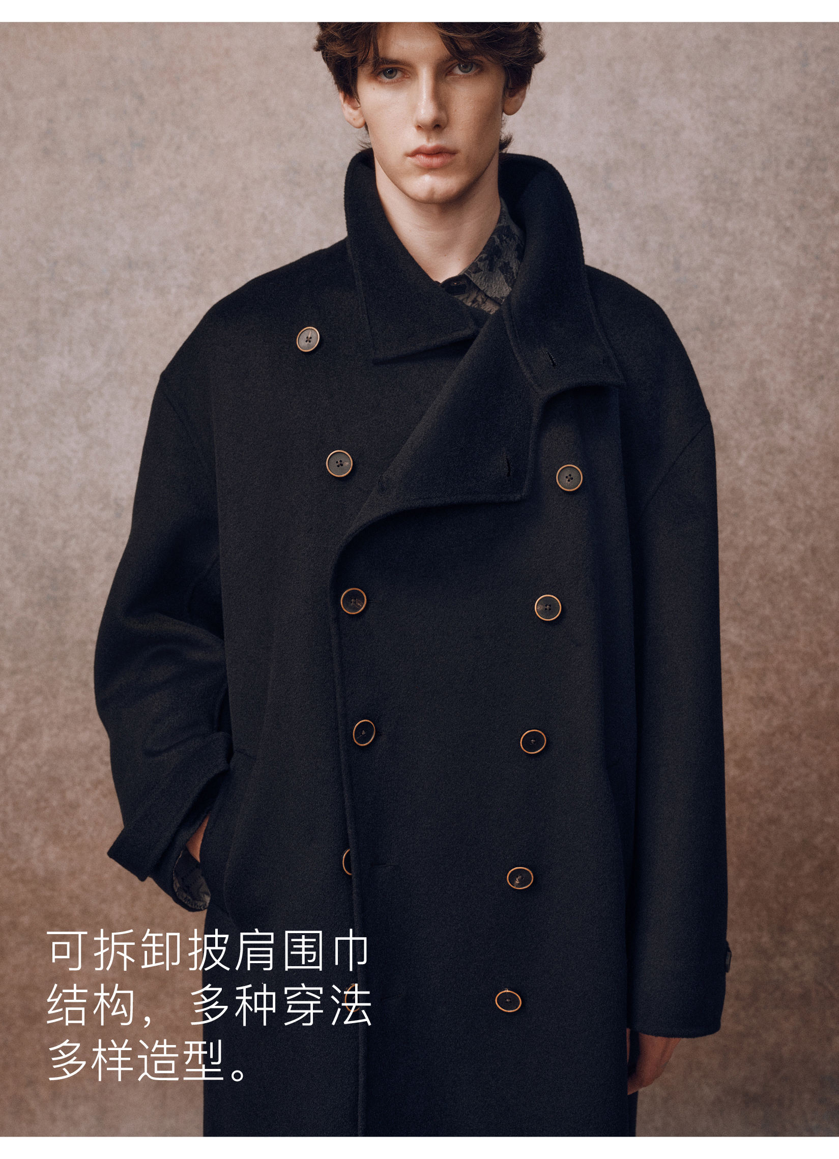 New Autumn/Winter Product: Sagesalt Double-Sided Wool Black Pure Wool Detachable Scarf Collar Coat 9024Bk