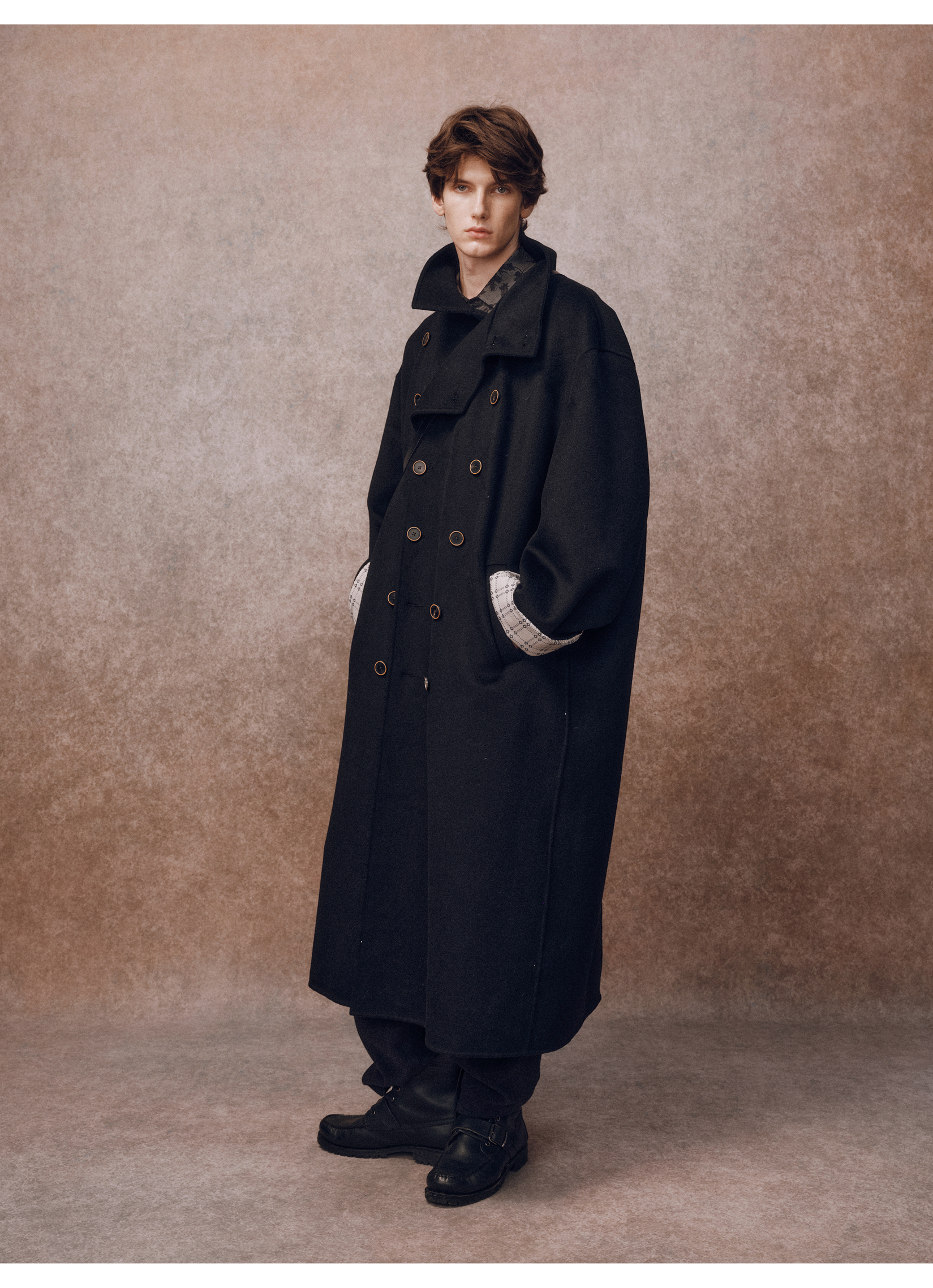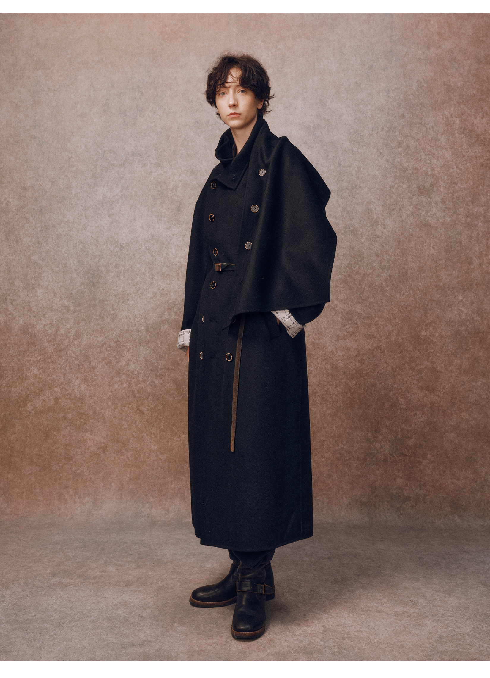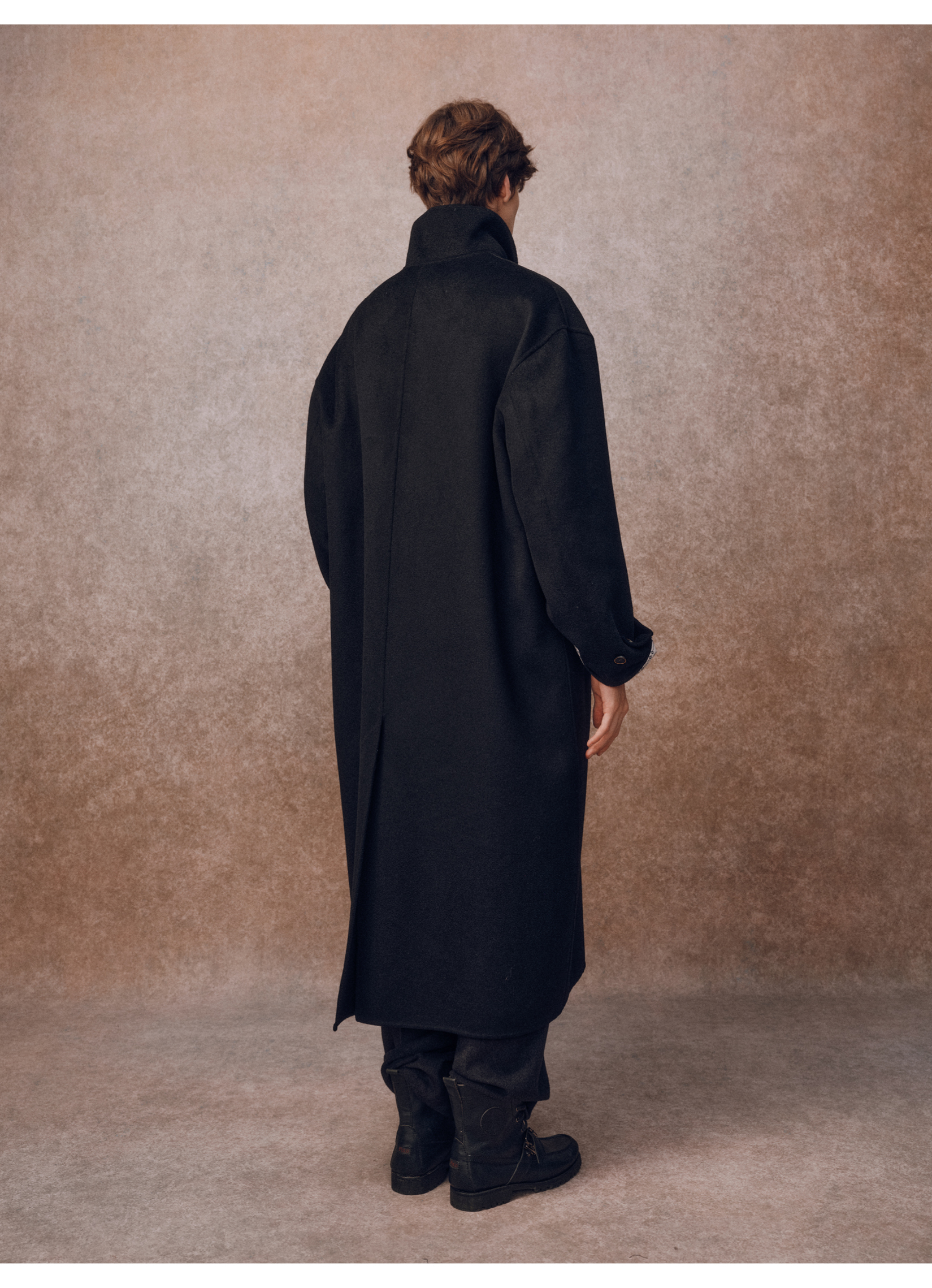 New Autumn/Winter Product: Sagesalt Double-Sided Wool Black Pure Wool Detachable Scarf Collar Coat 9024Bk