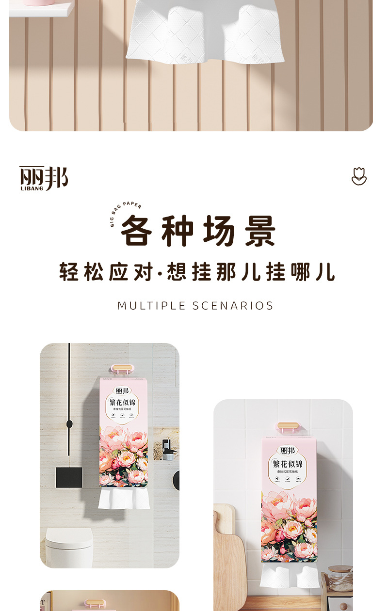 Libang Hanging Tissue Dispenser, Pull-Out Toilet Paper, Household Hand Wipes, Toilet Paper, Large Pack, Flat Toilet Paper Towels