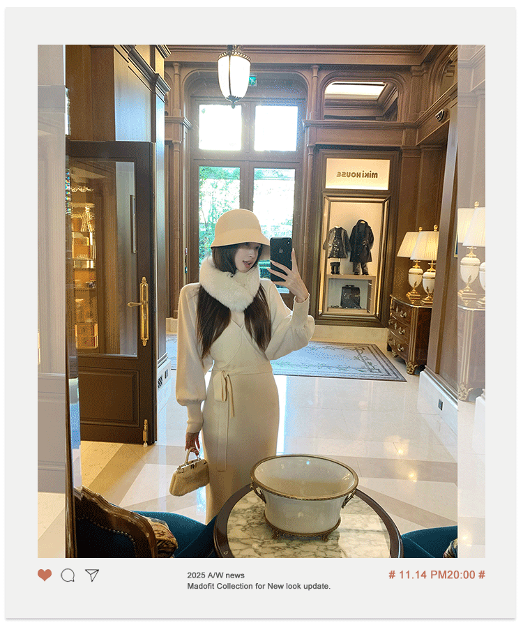 Madofit Ma Dou/Sapporo Holiday_Soulful Inner Layer Slimming Skirt Lantern Sleeve Tie-Up Merino Wool Knit Skirt