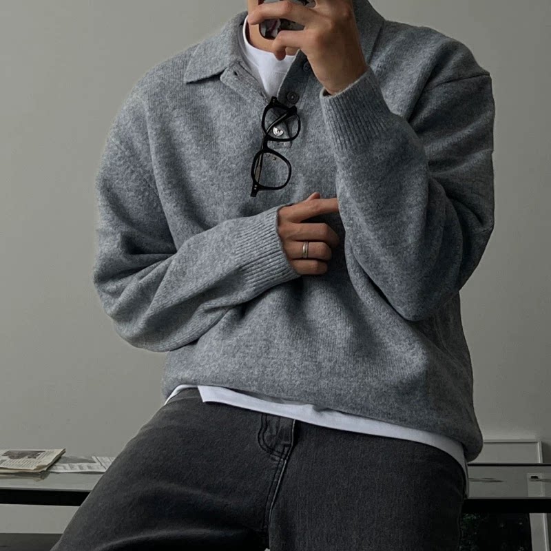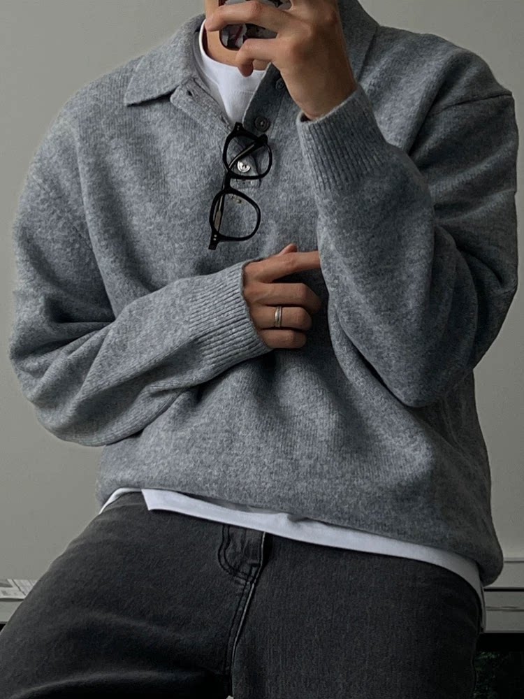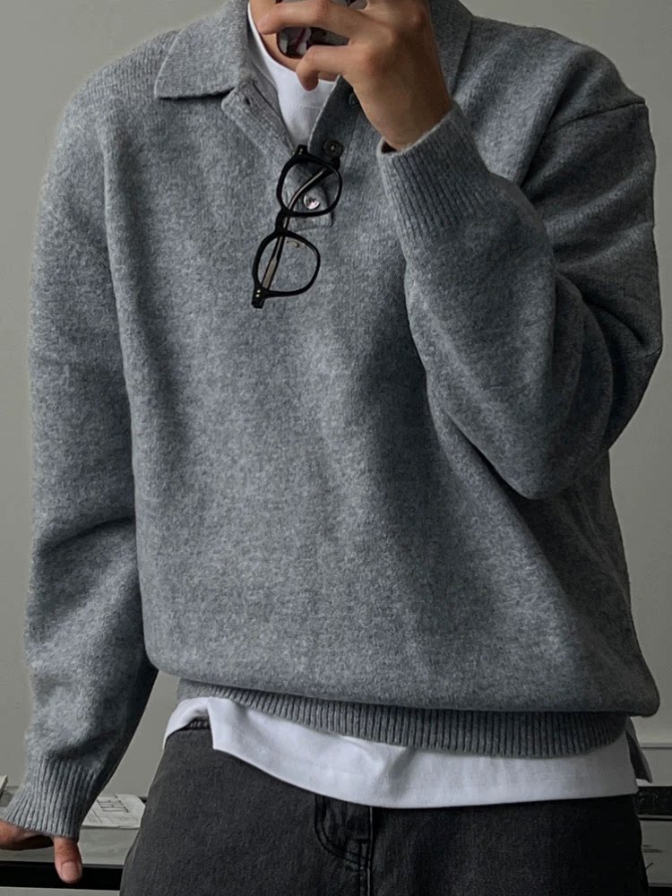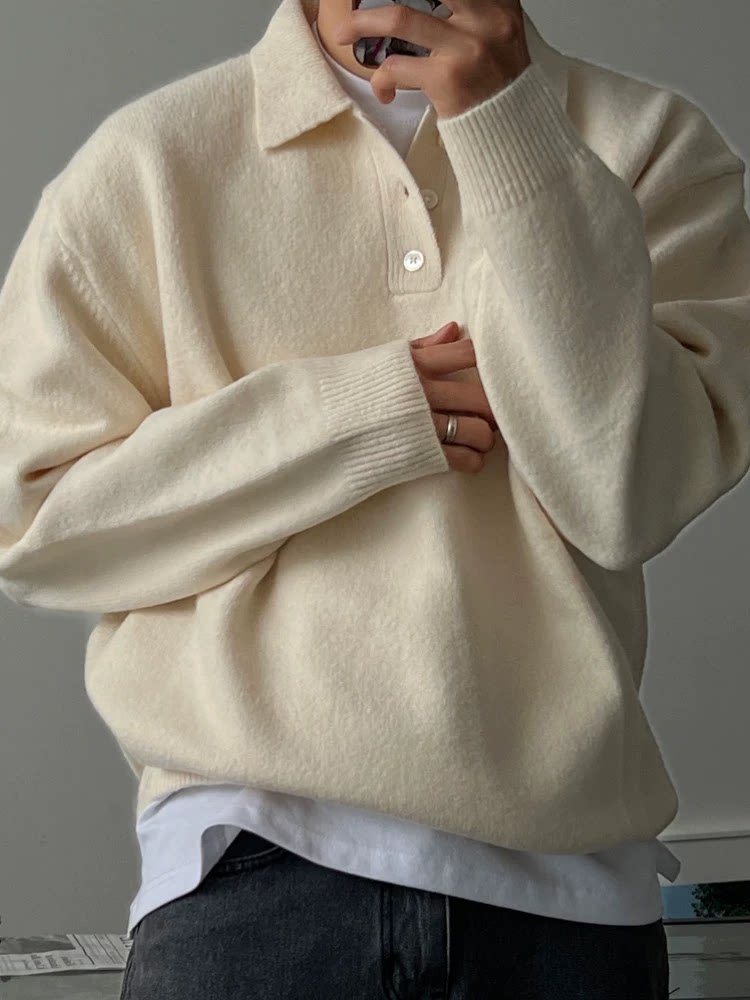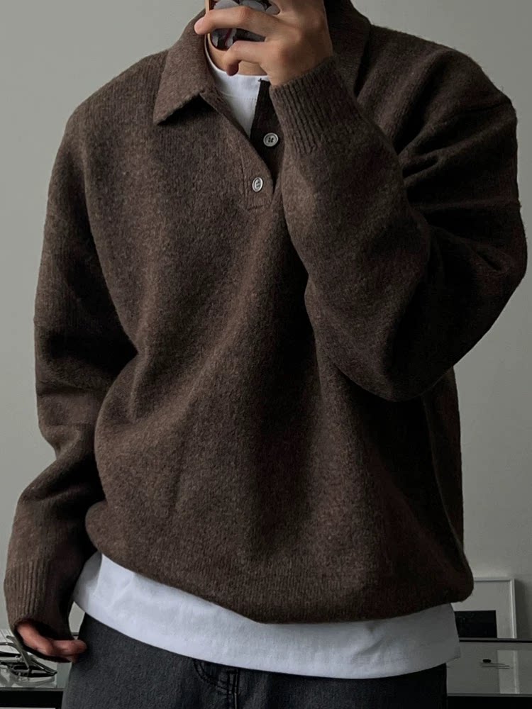 Old Money Style Core-Spun Yarn Knitted Polo Shirt for Men, American Retro Long-Sleeve Sweatshirt, Soft and Breathable Sweater, Trendy Polo Shirt