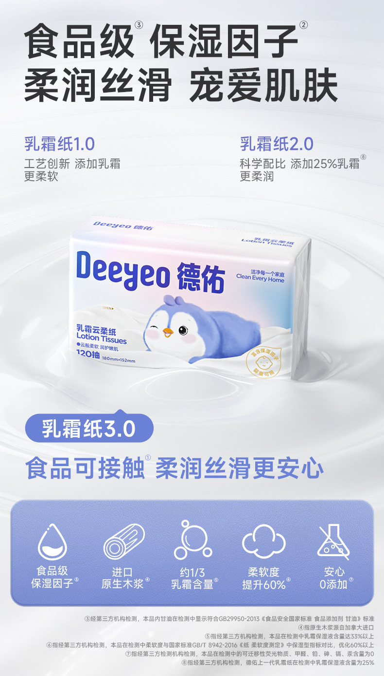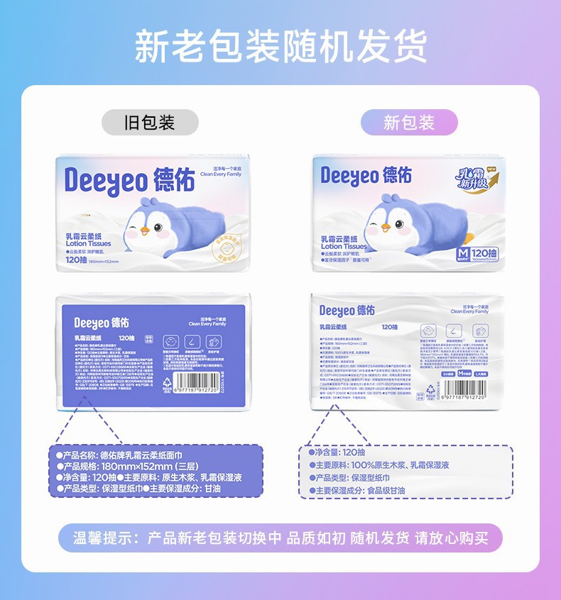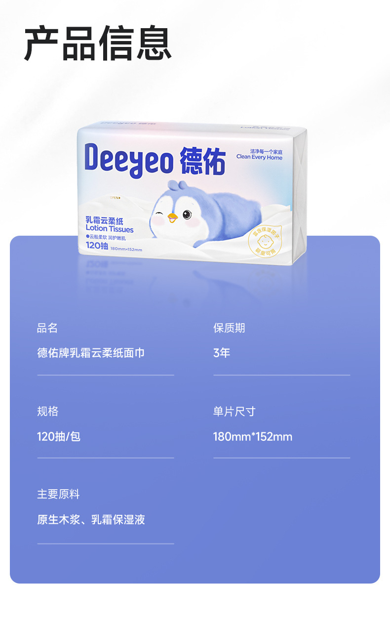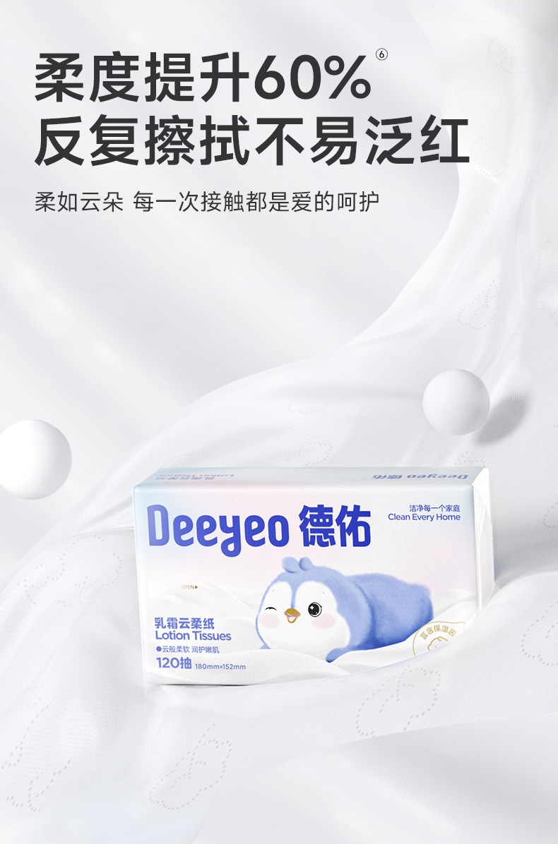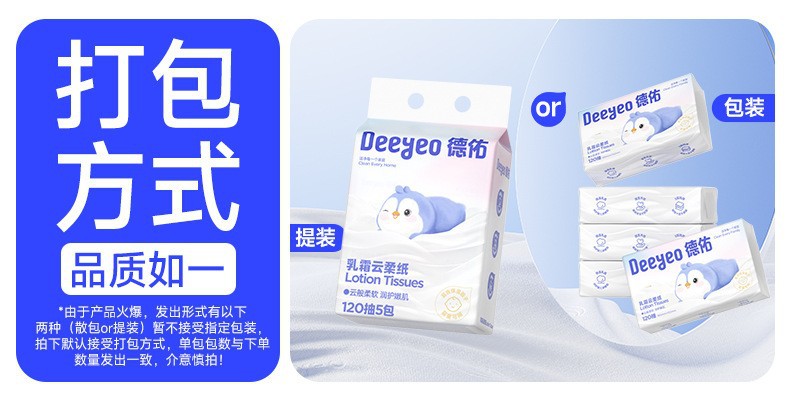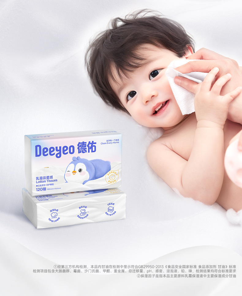 【Carefully Selected】Deyou Creamy Soft Tissues Baby Newborn Soft Moisturizing Tissues Cloud Soft Tissues 120 Sheets 5 Packs