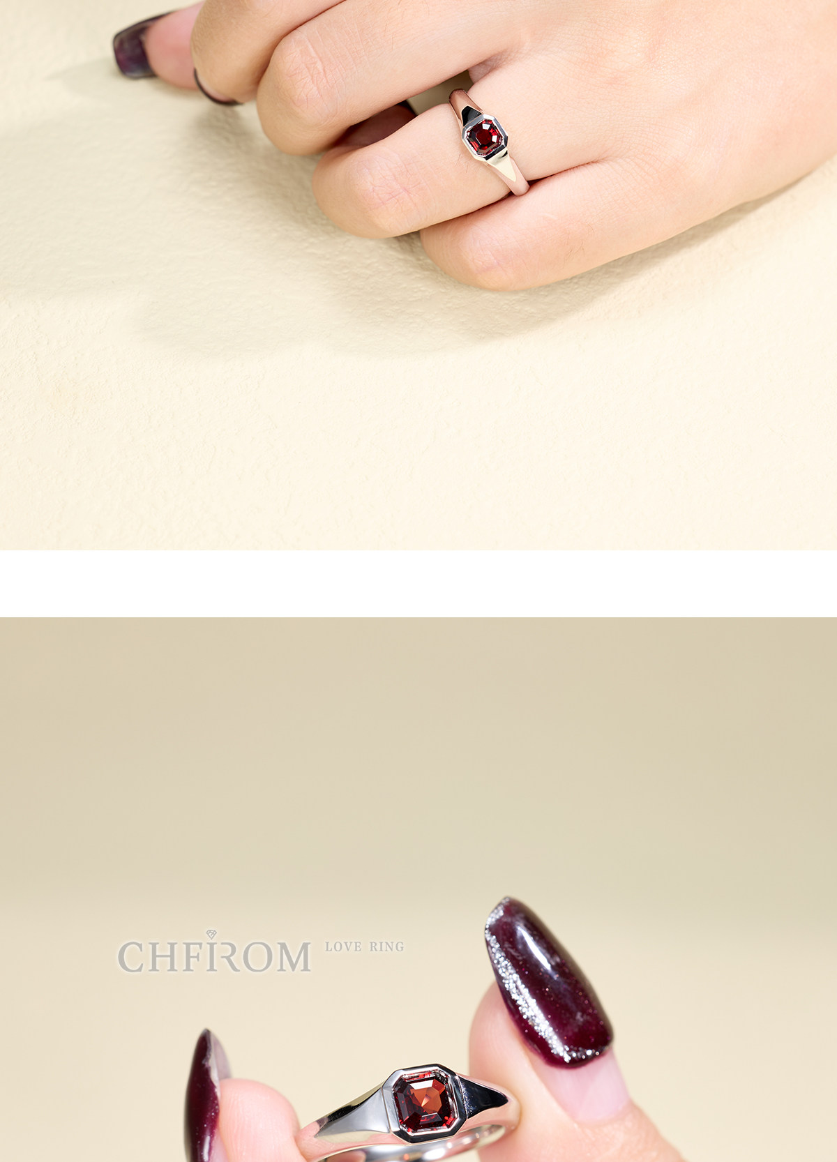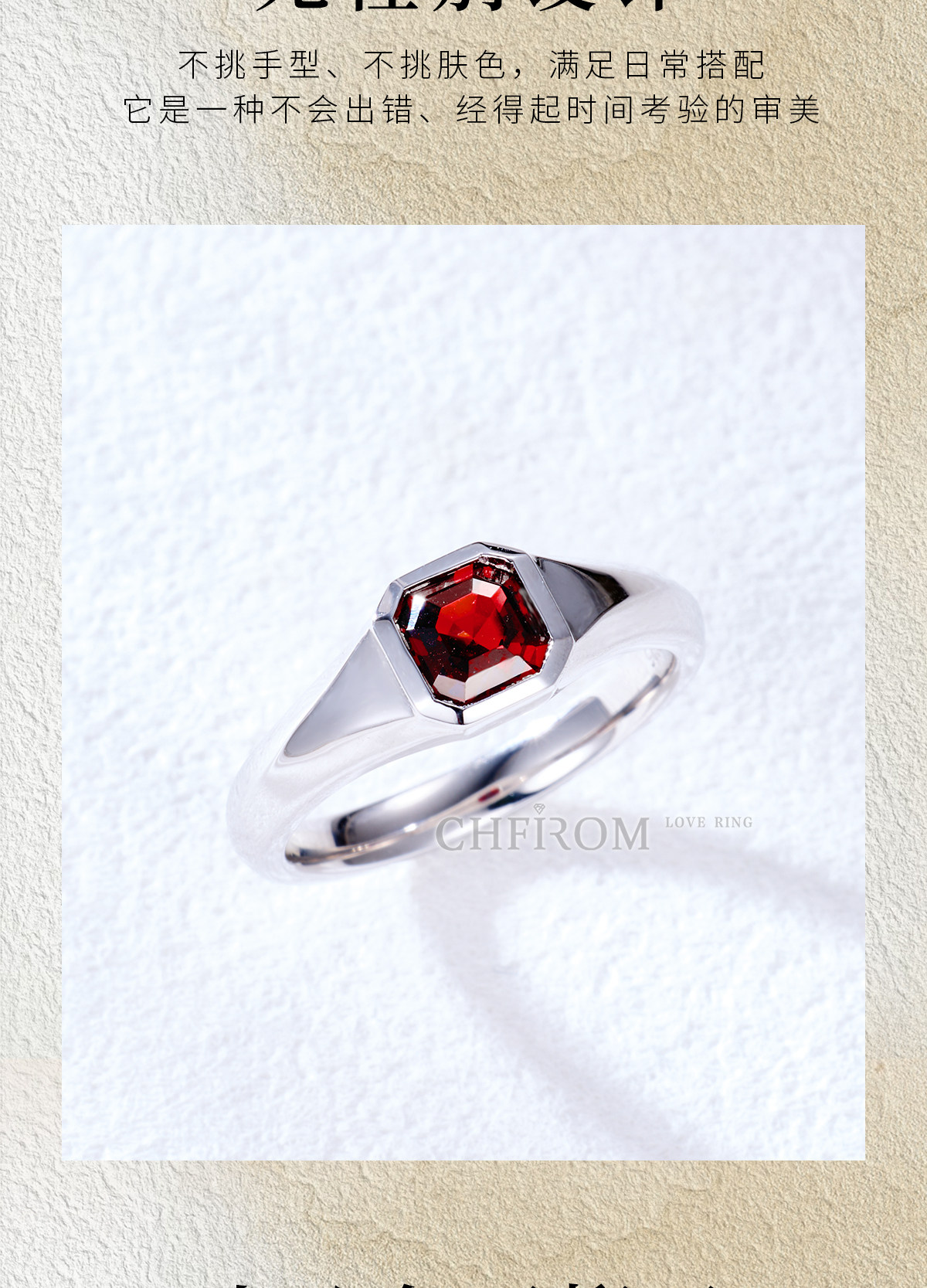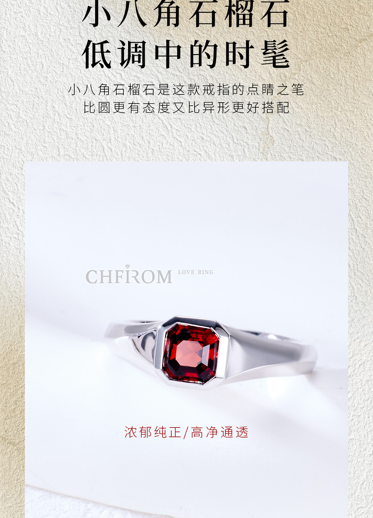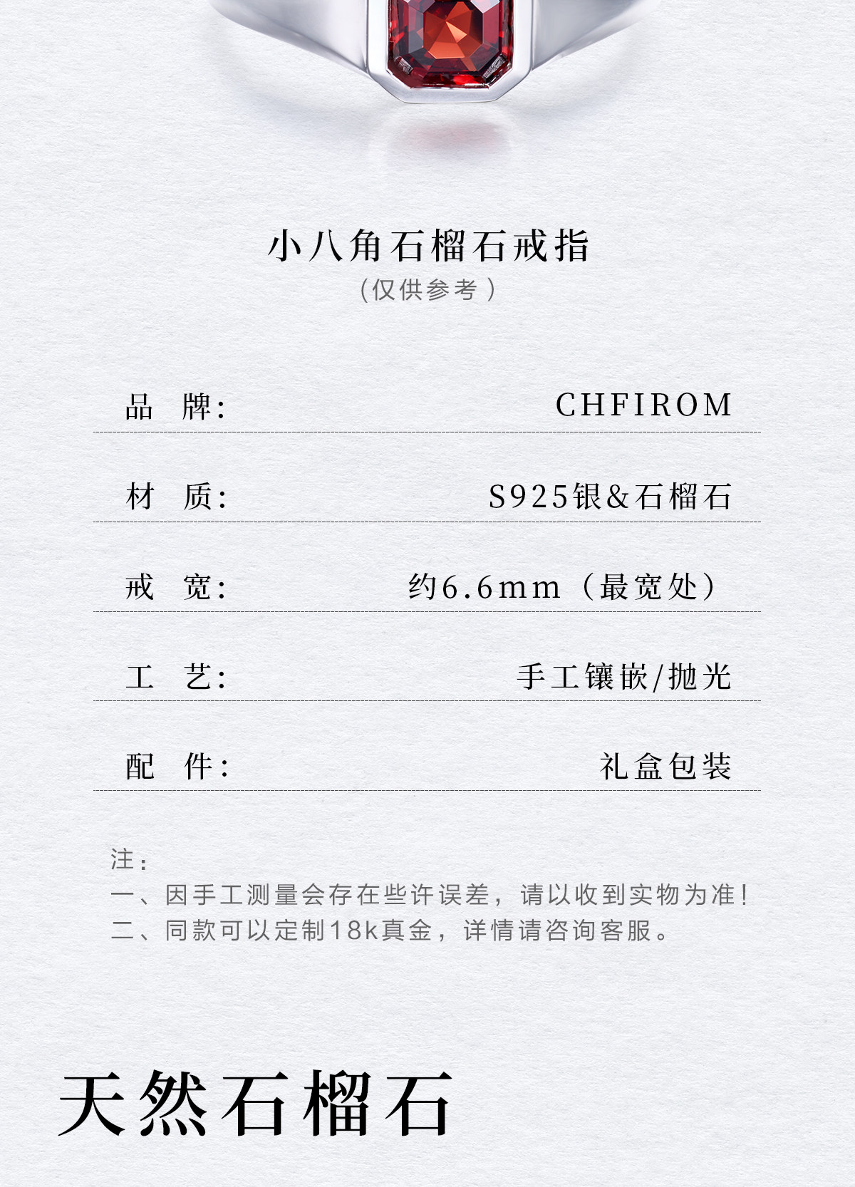 Natural Garnet Ring S925 Sterling Silver Single Small Octagonal Gemstone Unisex Ring Simple and High-End Design