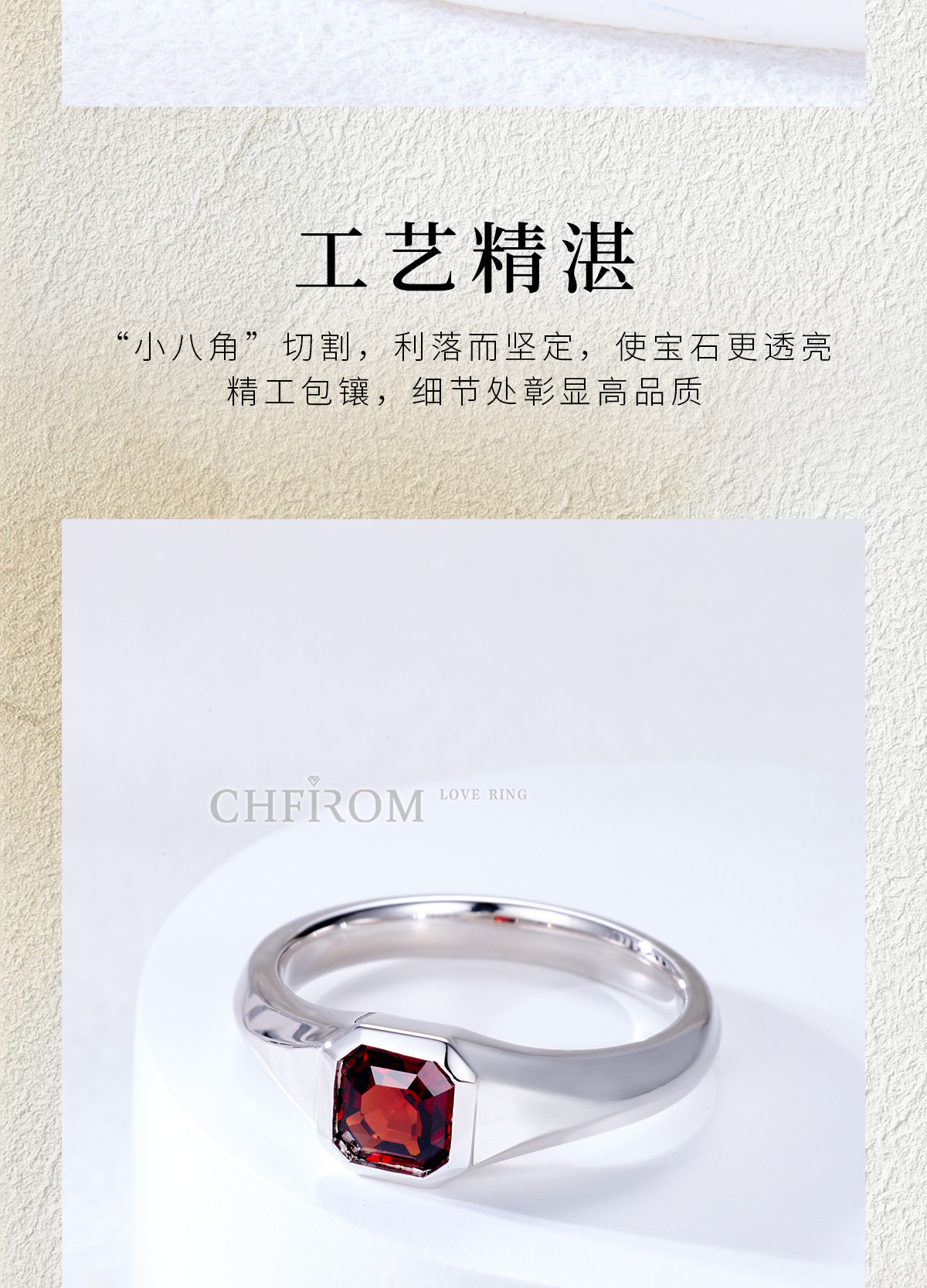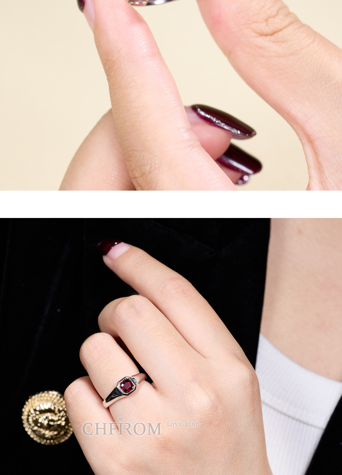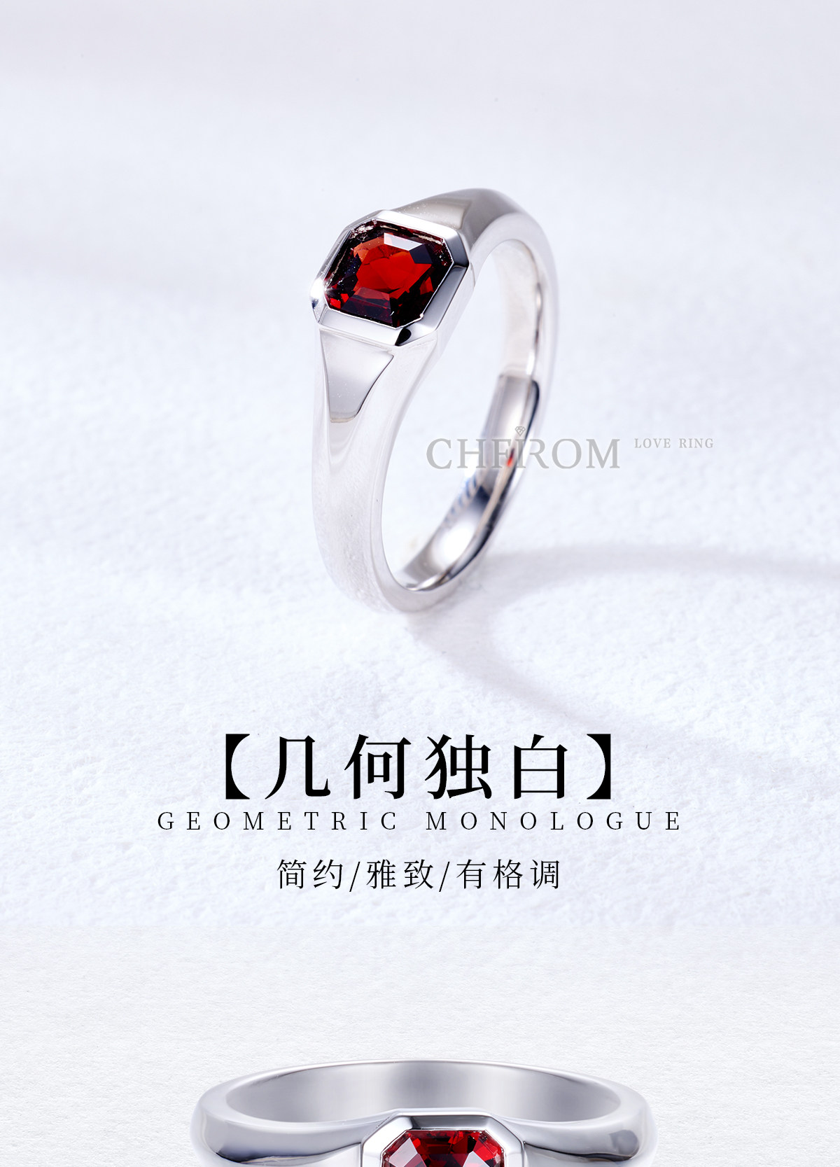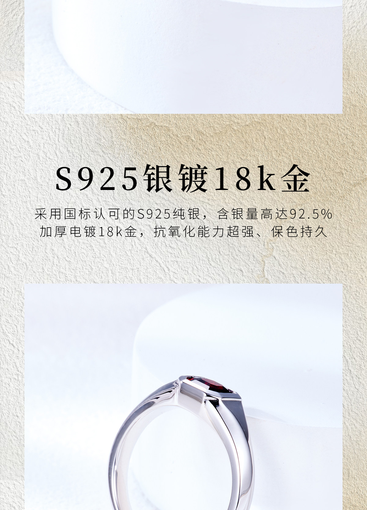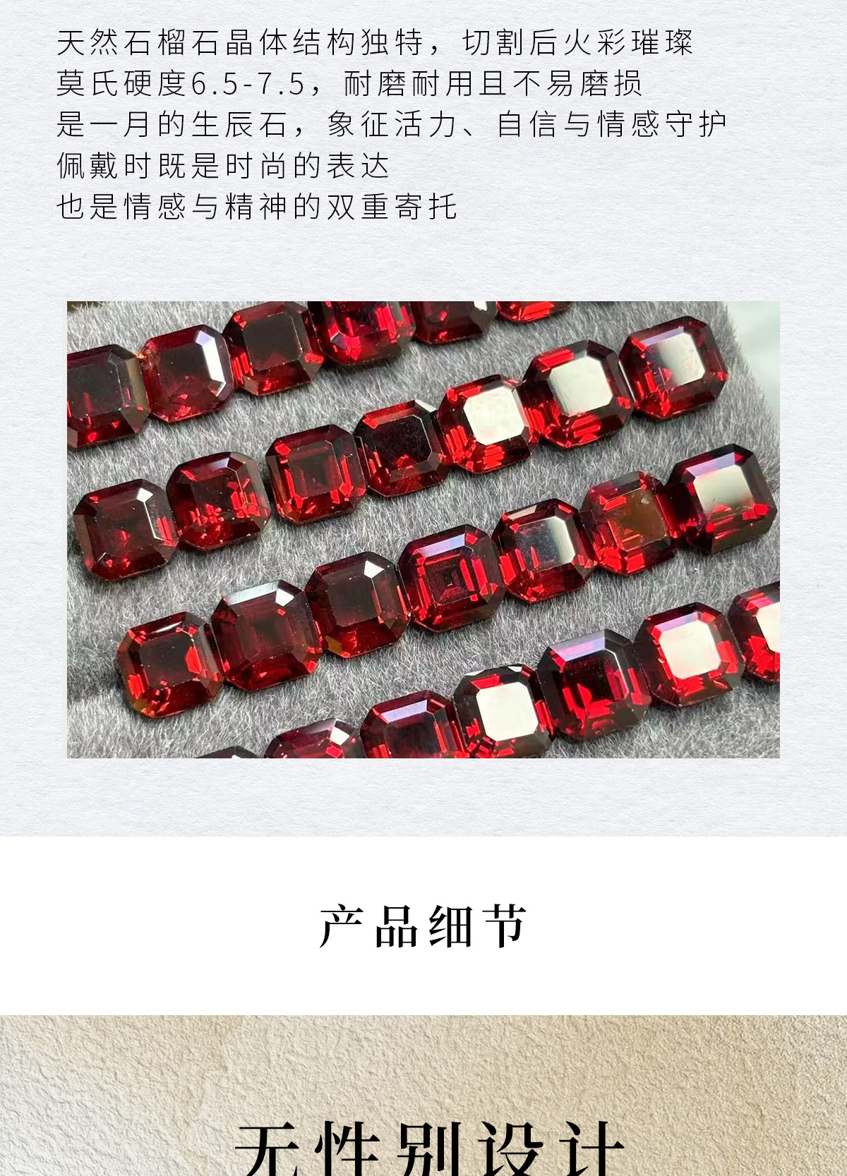 Natural Garnet Ring S925 Sterling Silver Single Small Octagonal Gemstone Unisex Ring Simple and High-End Design