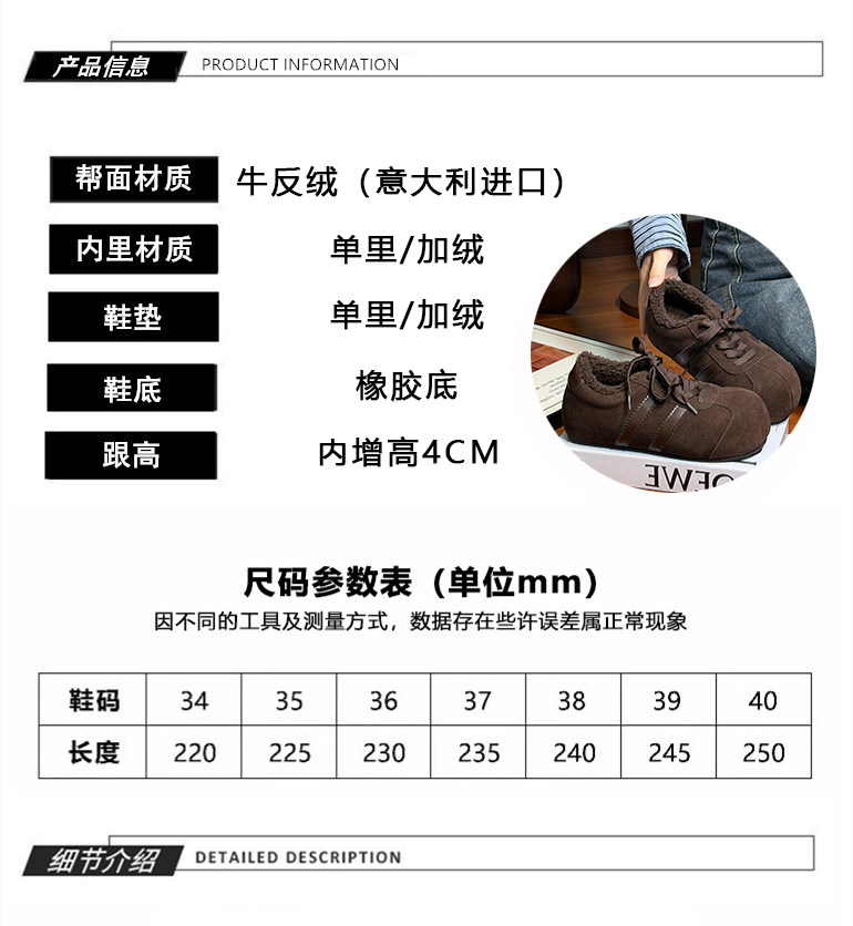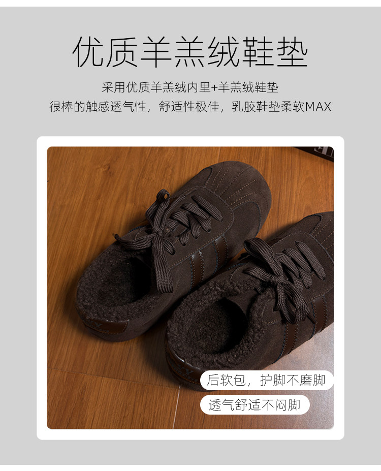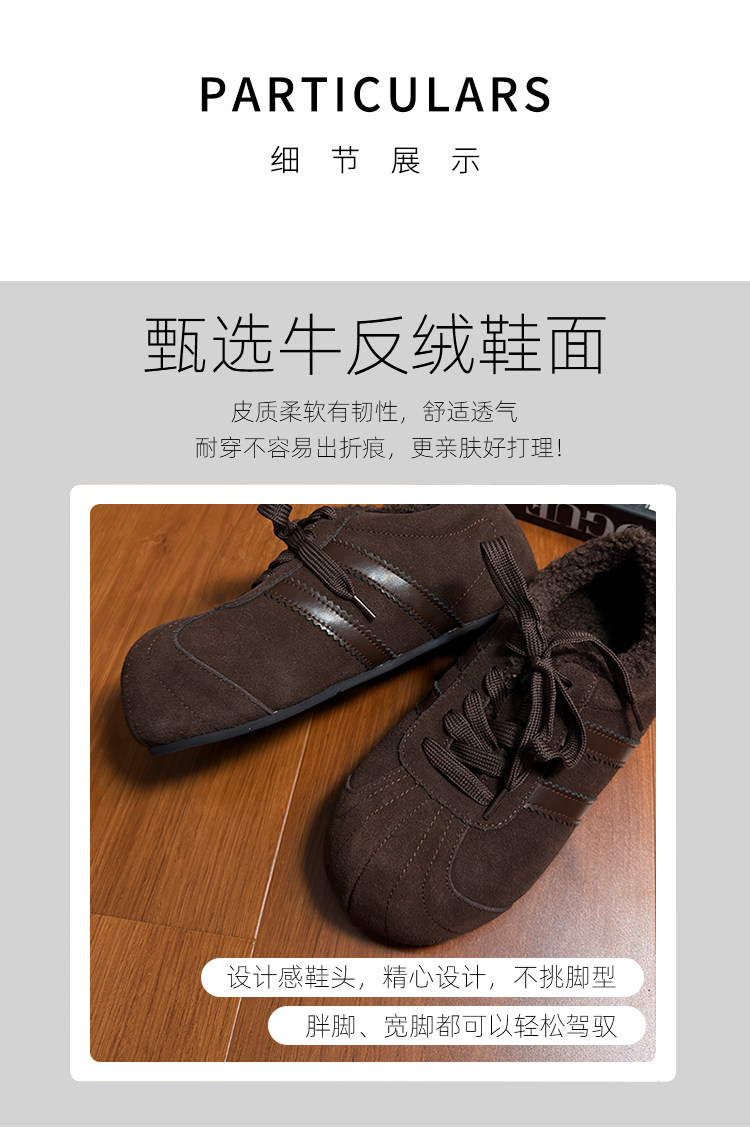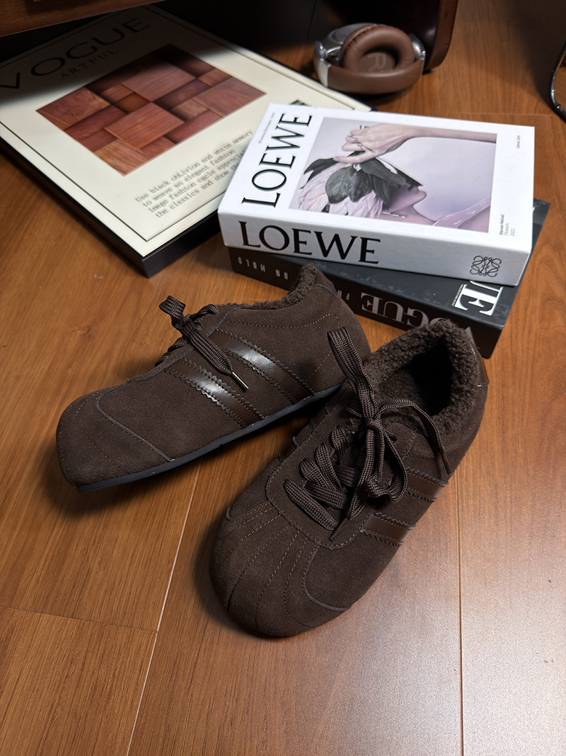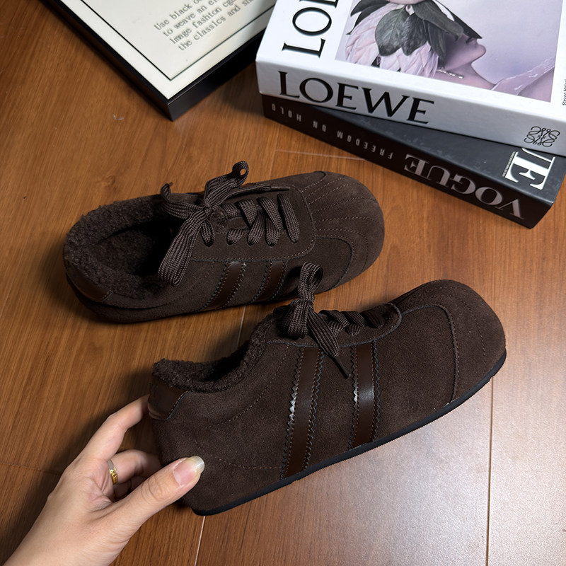Hong Kong Genuine Leather Lace-Up Large-Toe Furry Shoes for Women 2025 Autumn and Winter New Style Fleece-Lined Casual Shoes German Training Shoes Flat Cotton Shoes