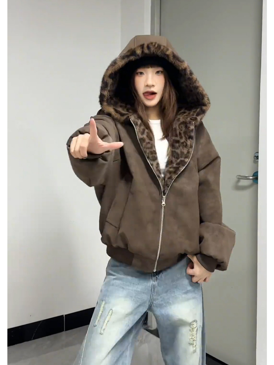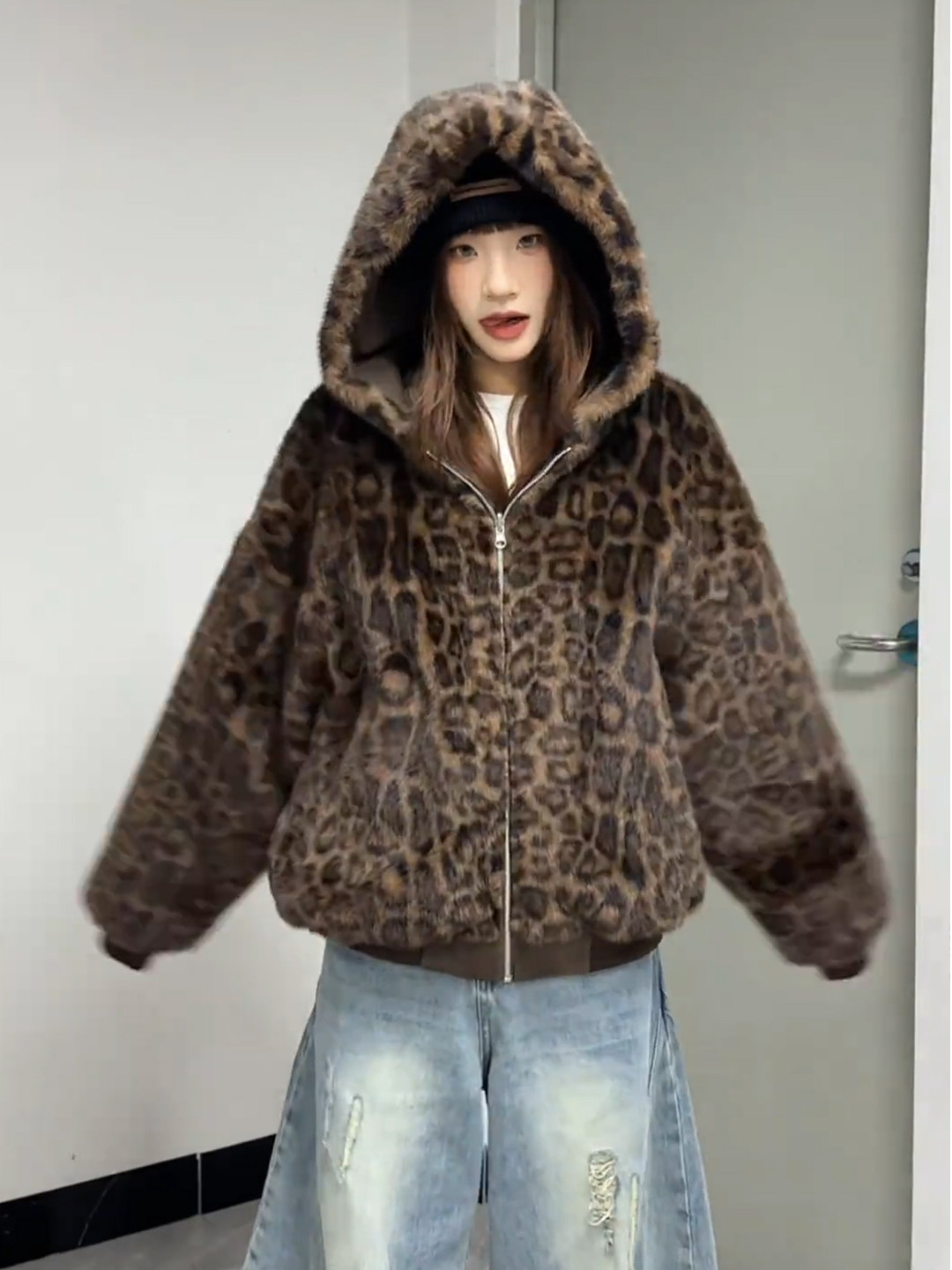 Melard Leopard Print Reversible Cotton Jacket for Men and Women, Winter Fleece-Lined, Thickened, High-End, Warm, Hooded, Mountain Carving Jacket