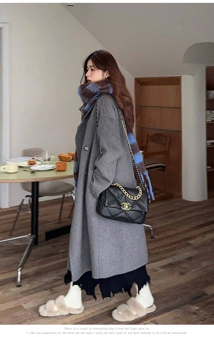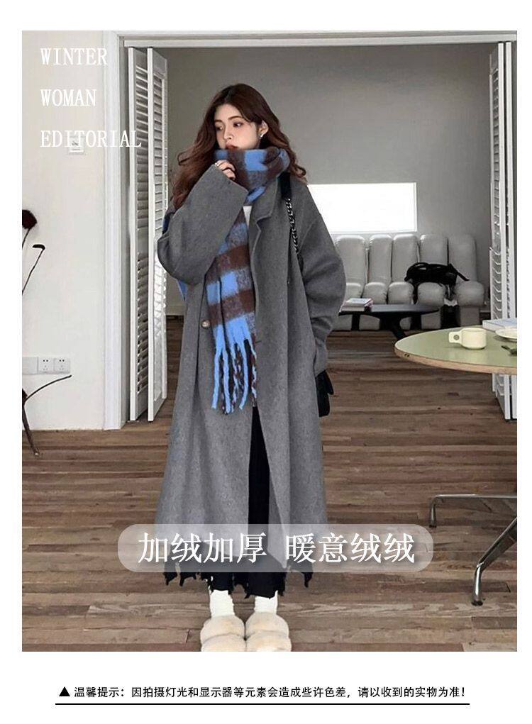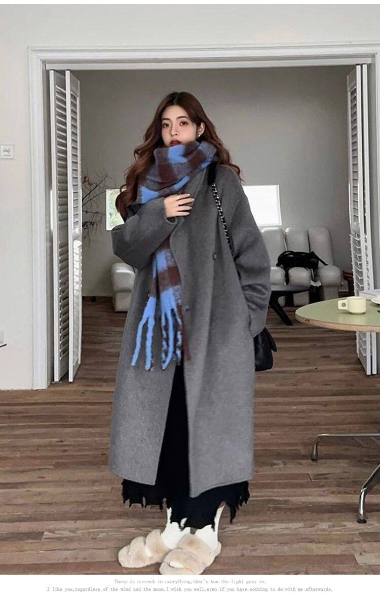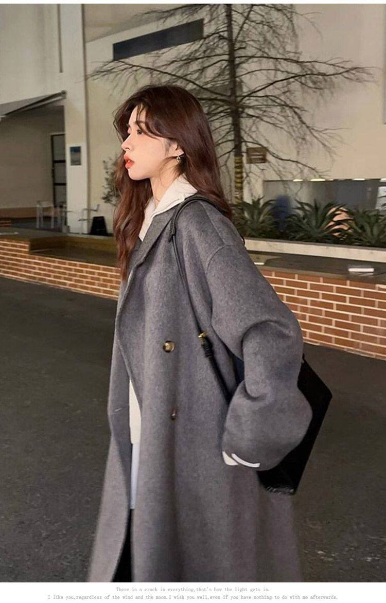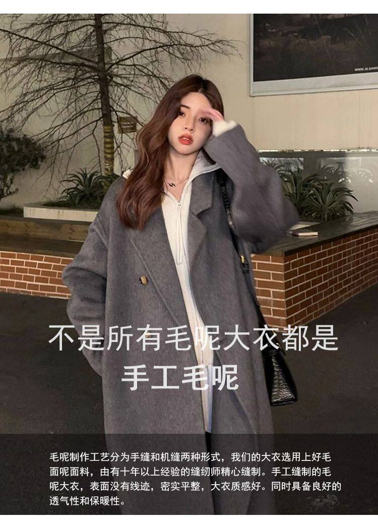 Gray Double-Breasted Down-Lined Coat, 2025 Autumn and Winter New Style, High-End Mid-Length Thick Woolen Coat