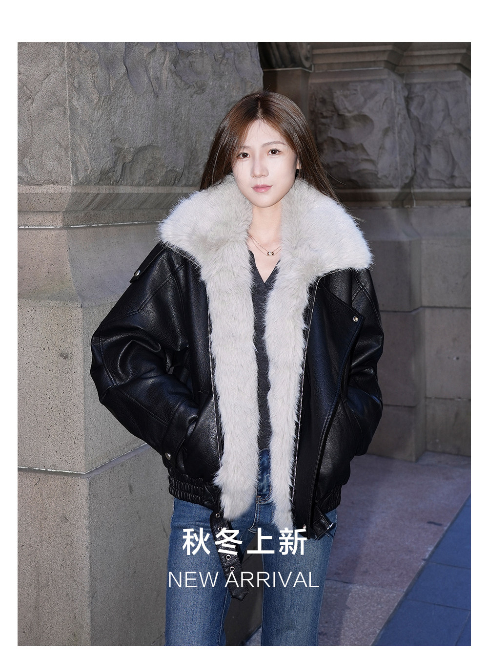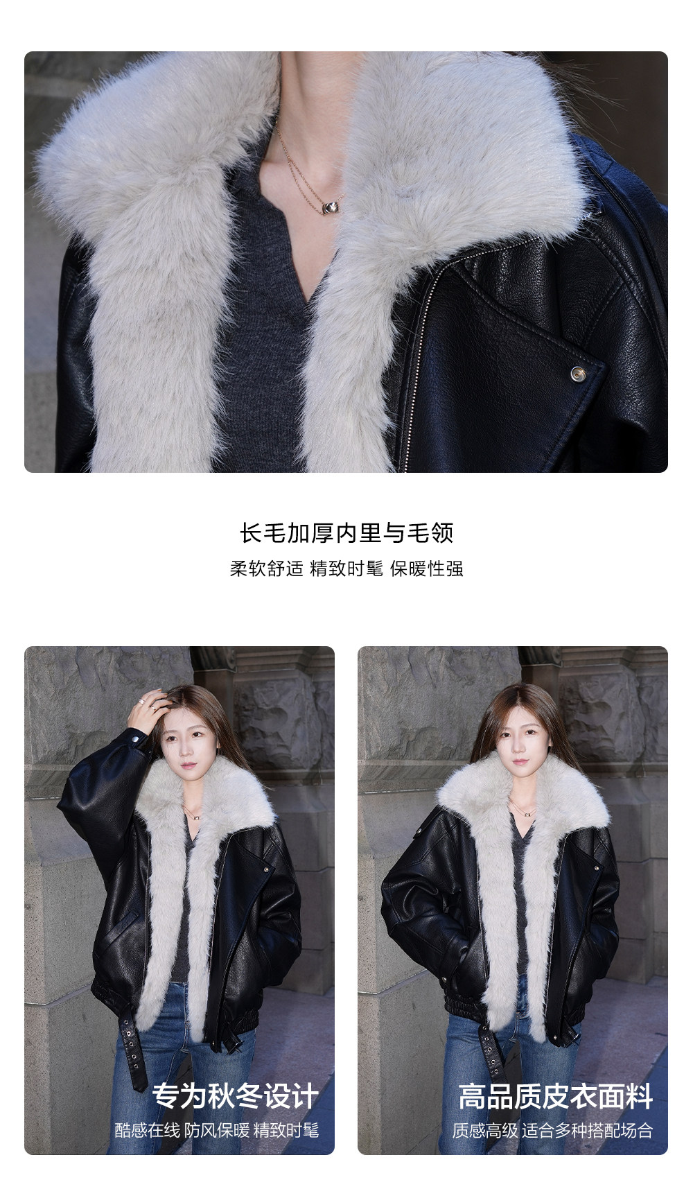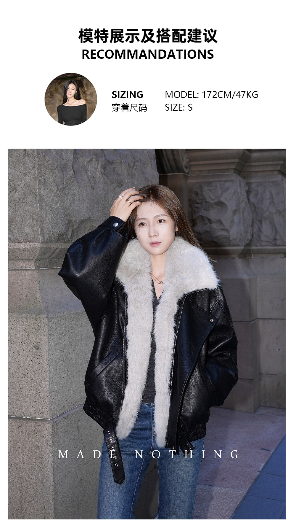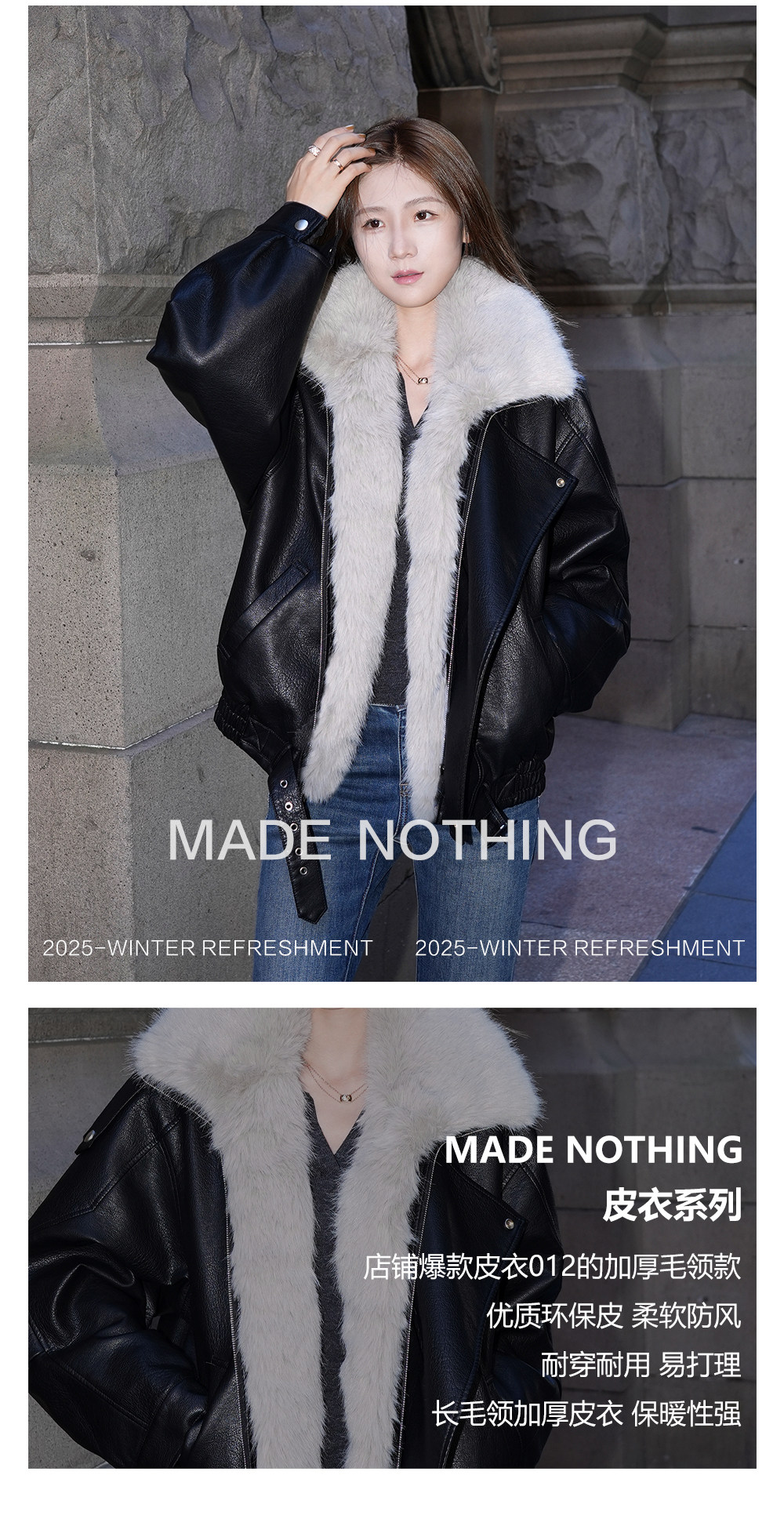 Made Nothing Leather Jacket 012 Thickened Detachable Large Fur Collar Heavy Craft Double Collar Black Leather Jacket for Women