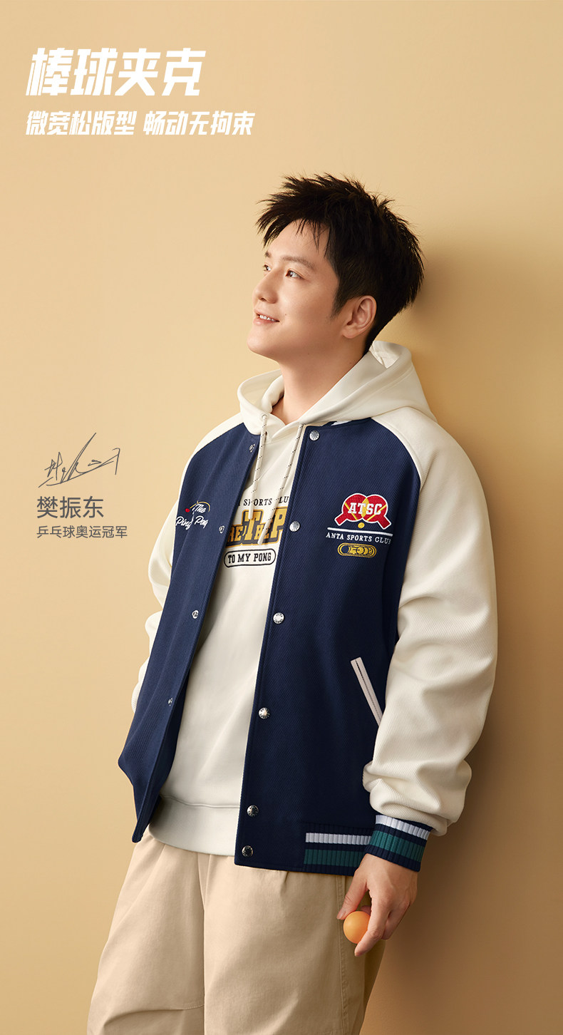 【Fan Zhendong's Style】Anta American Retro Baseball Jacket Men's Casual Outerwear Top 152618702S