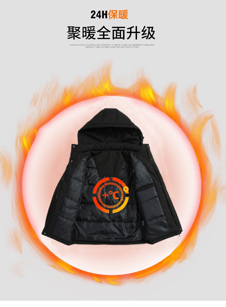 Jeanswest Hooded Cotton Jacket for Men, Winter Thickened Warm Windproof Cotton Coat, Outdoor Workwear Style Jacket
