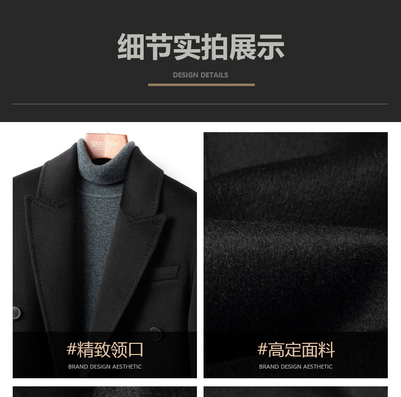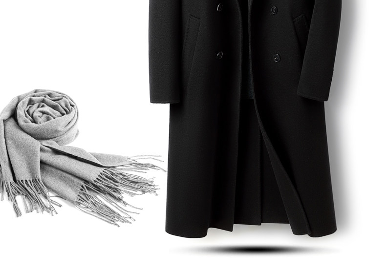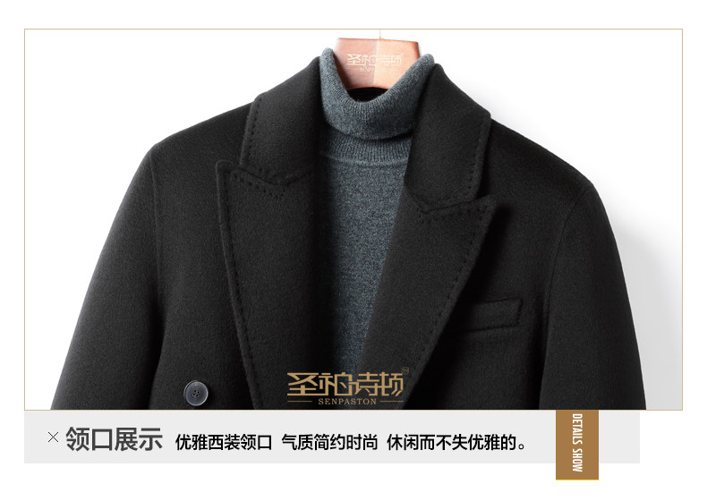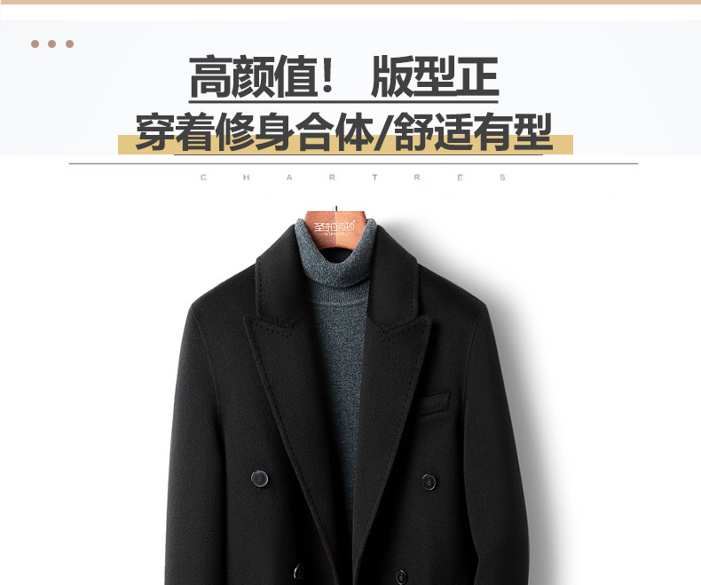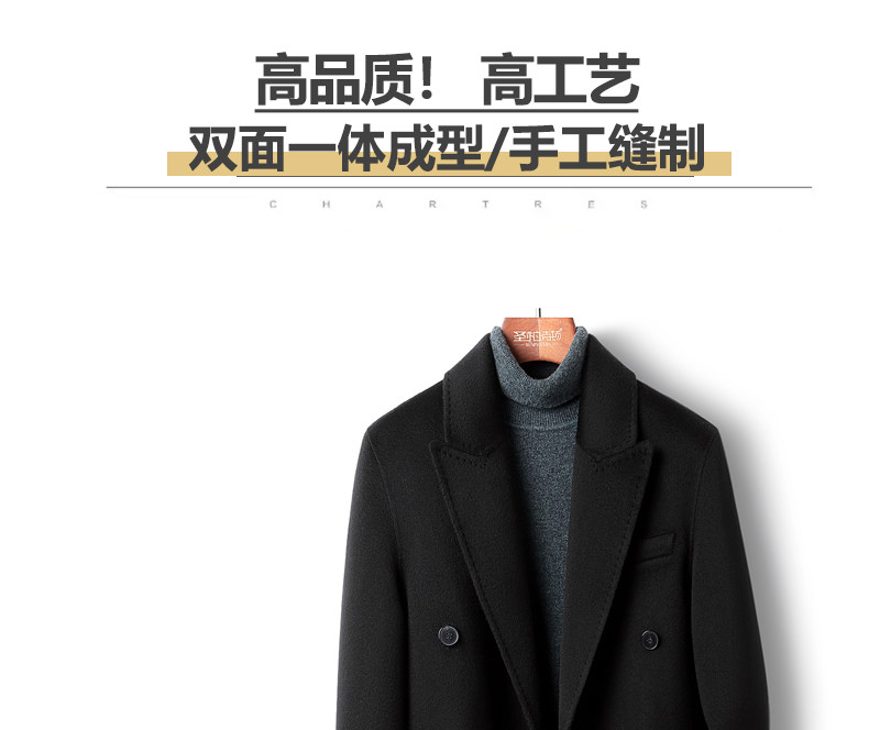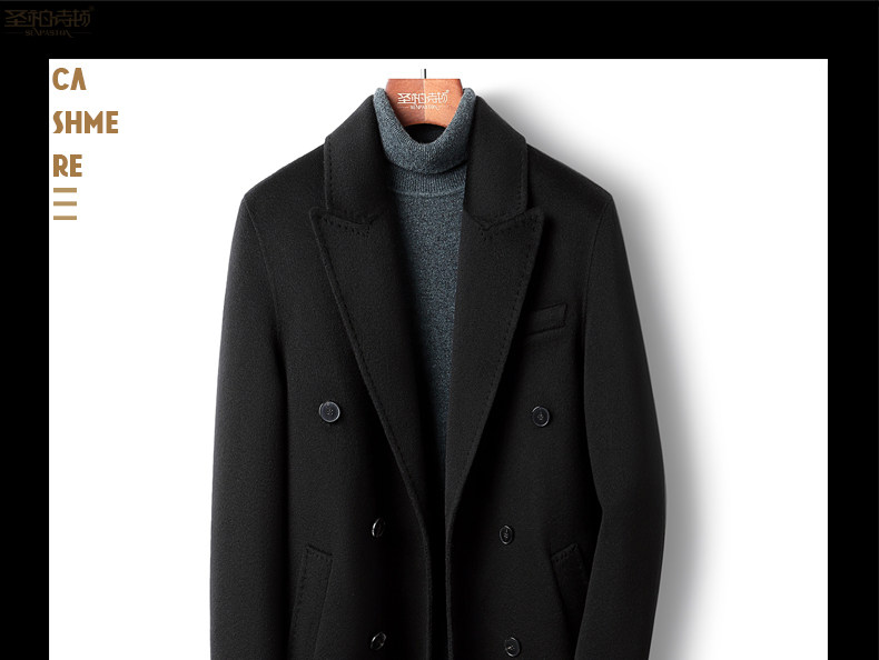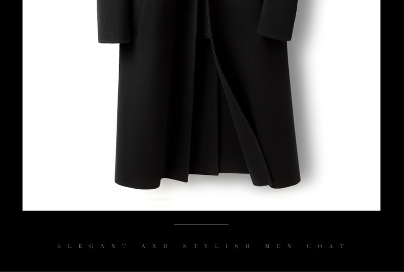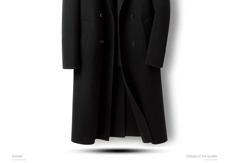 High-End 100% Cashmere Coat for Men, Over-The-Knee Long Double-Breasted Peaked Lapel Autumn and Winter Wool Trench Coat