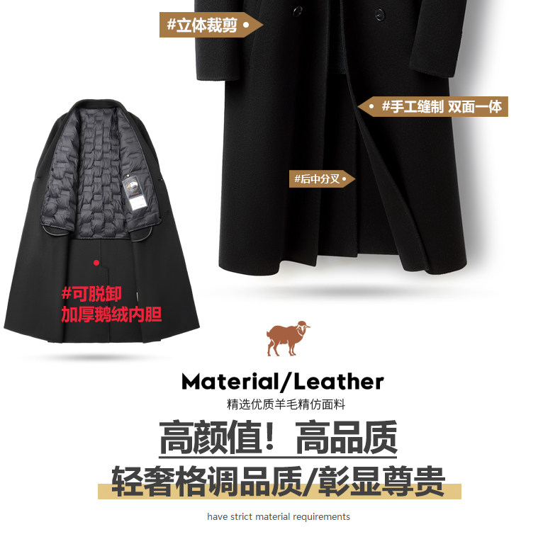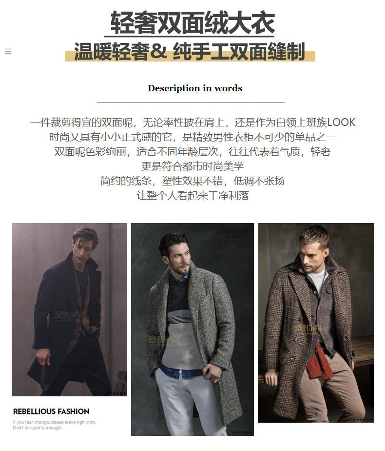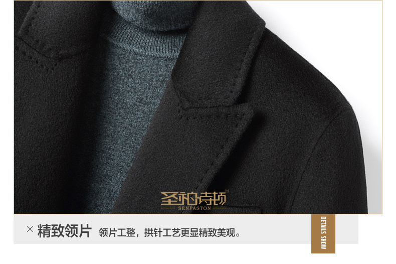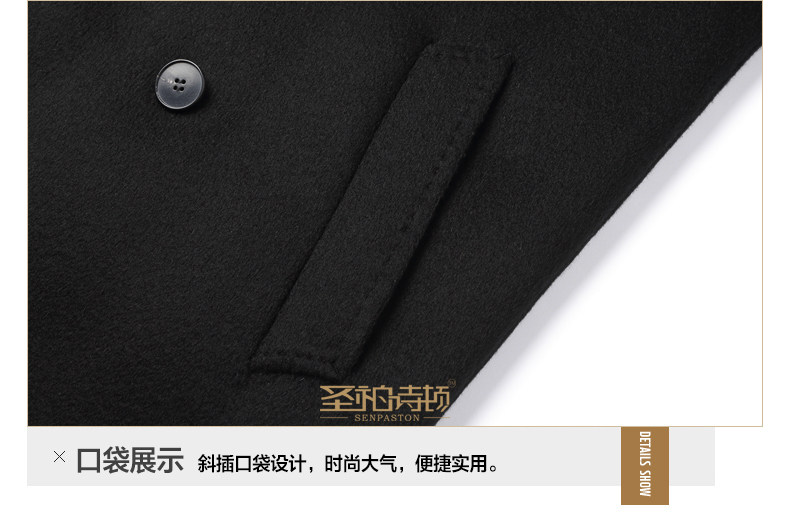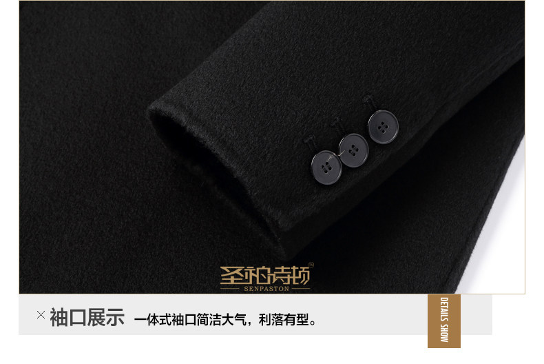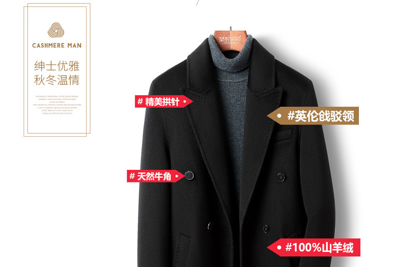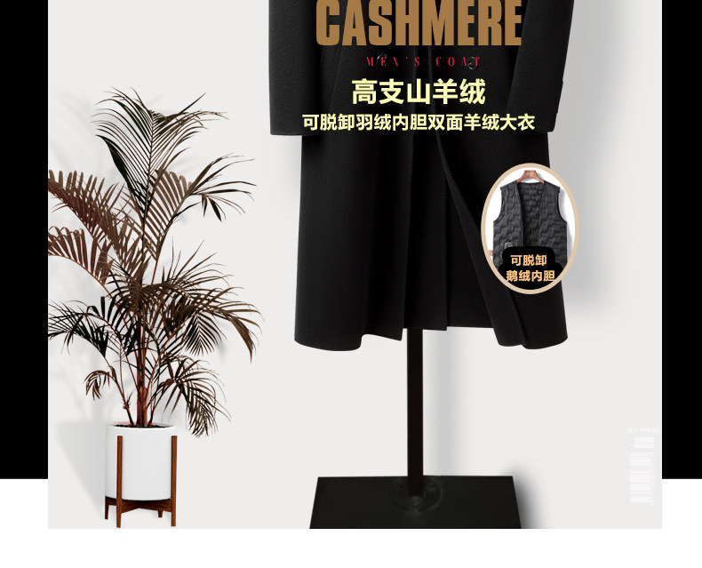 High-End 100% Cashmere Coat for Men, Over-The-Knee Long Double-Breasted Peaked Lapel Autumn and Winter Wool Trench Coat