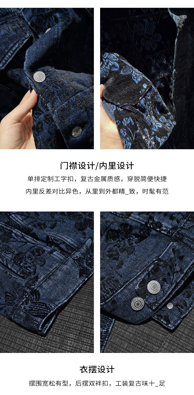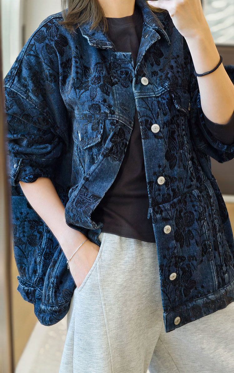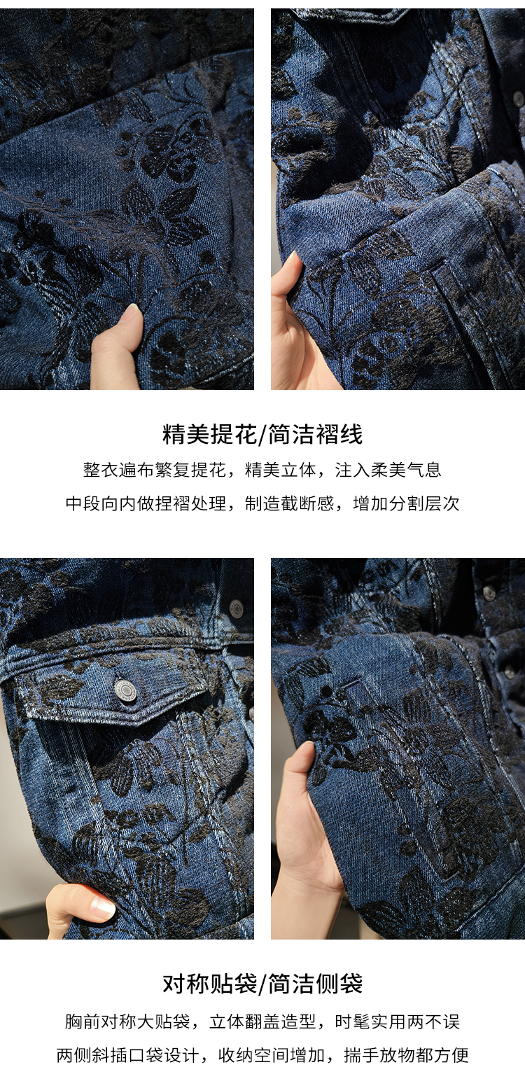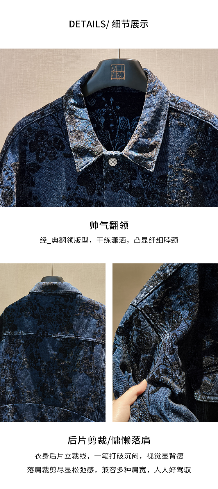 Meiyang Big Pin No. 4 Denim Jacket Jacquard Lapel Buttoned Jacket Top [Wide]