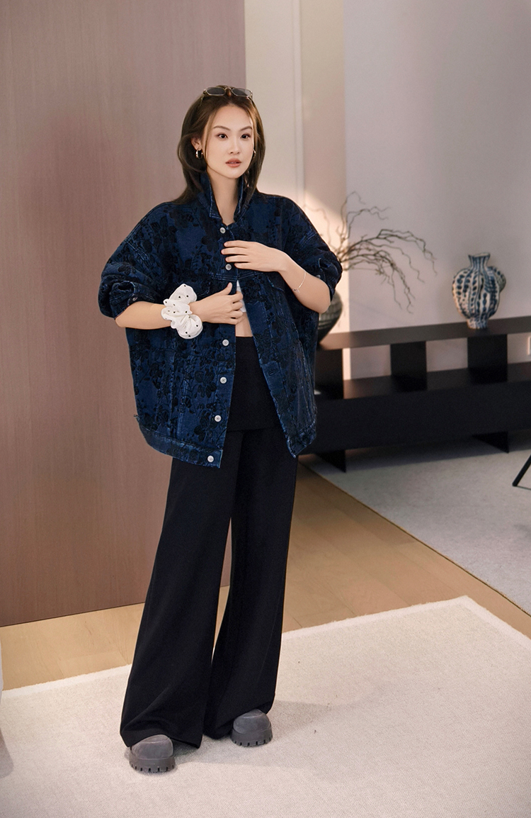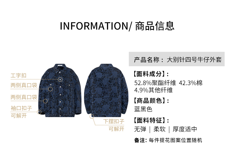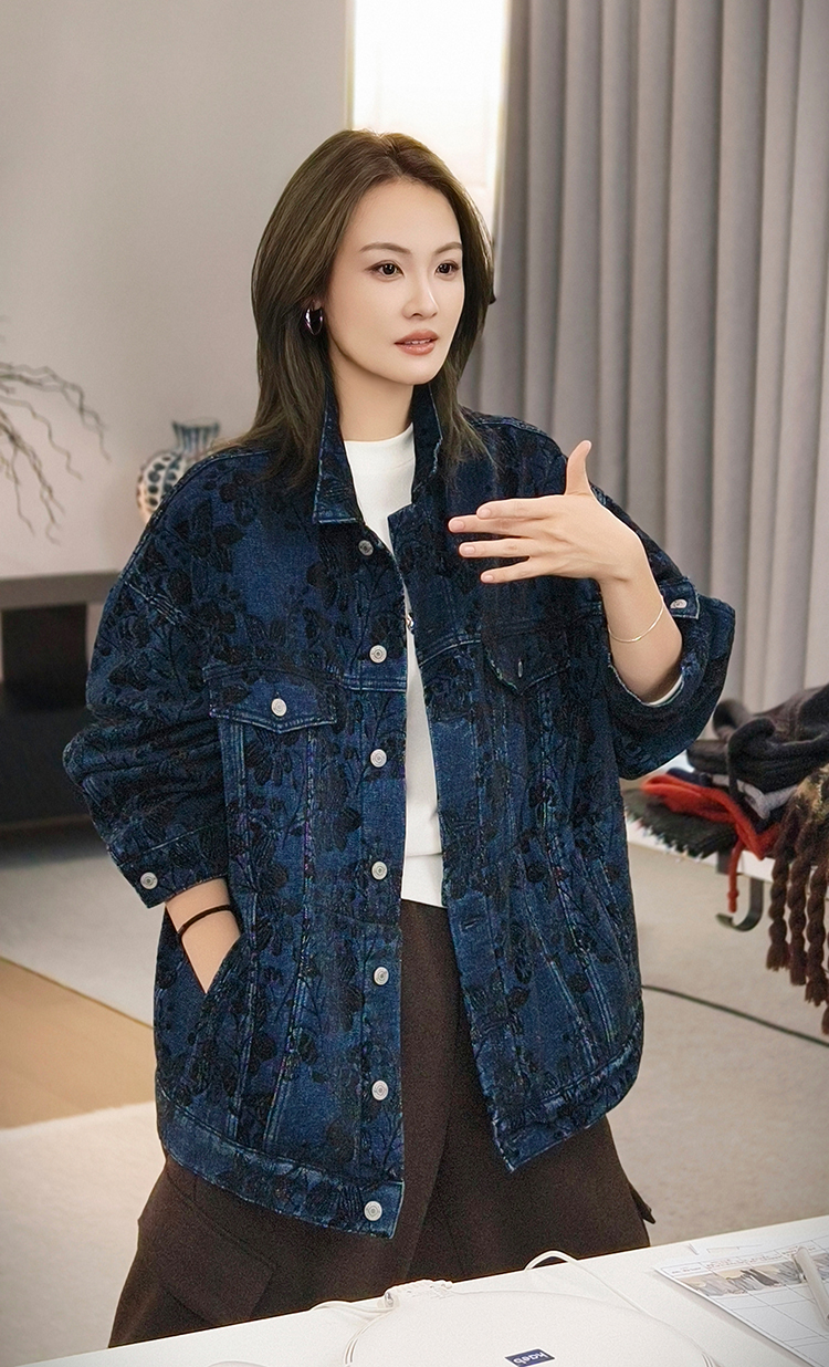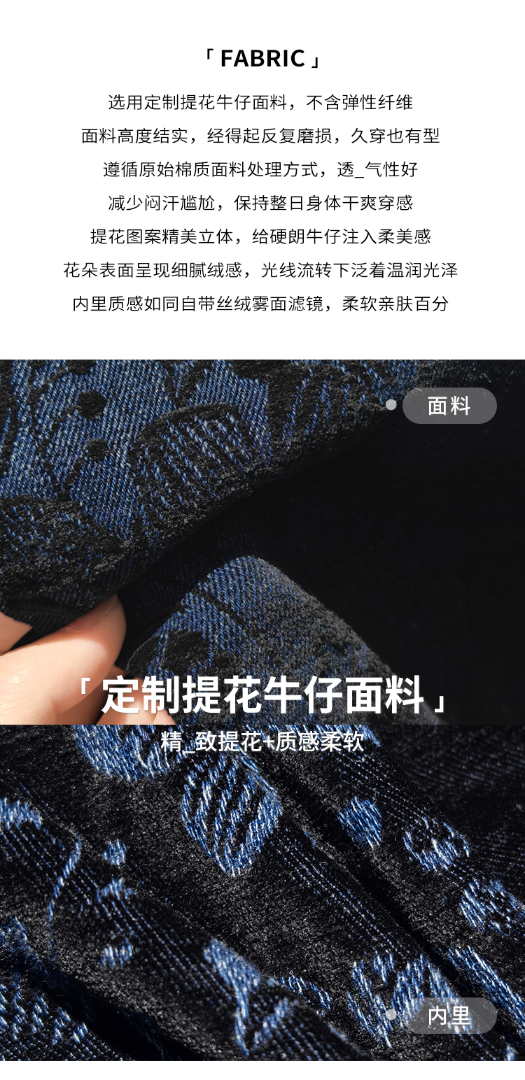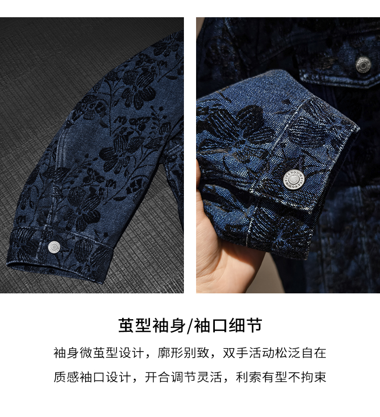 Meiyang Big Pin No. 4 Denim Jacket Jacquard Lapel Buttoned Jacket Top [Wide]