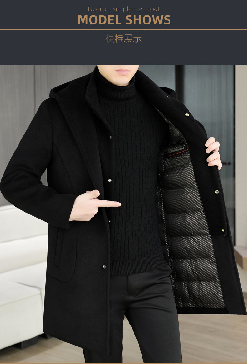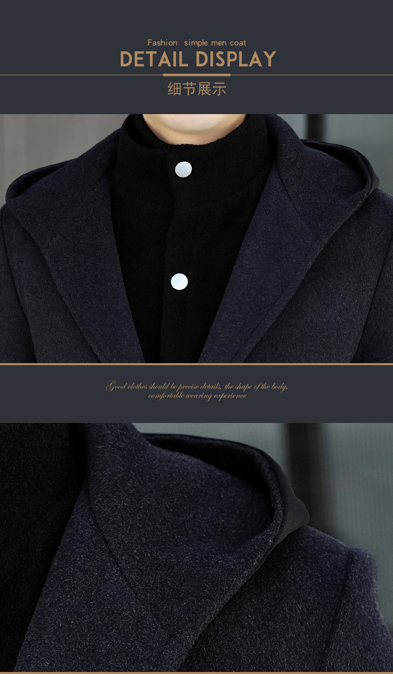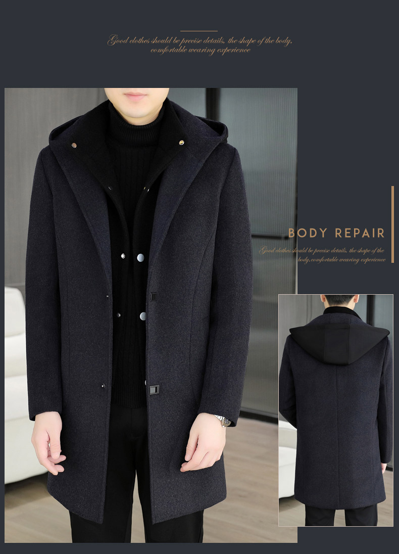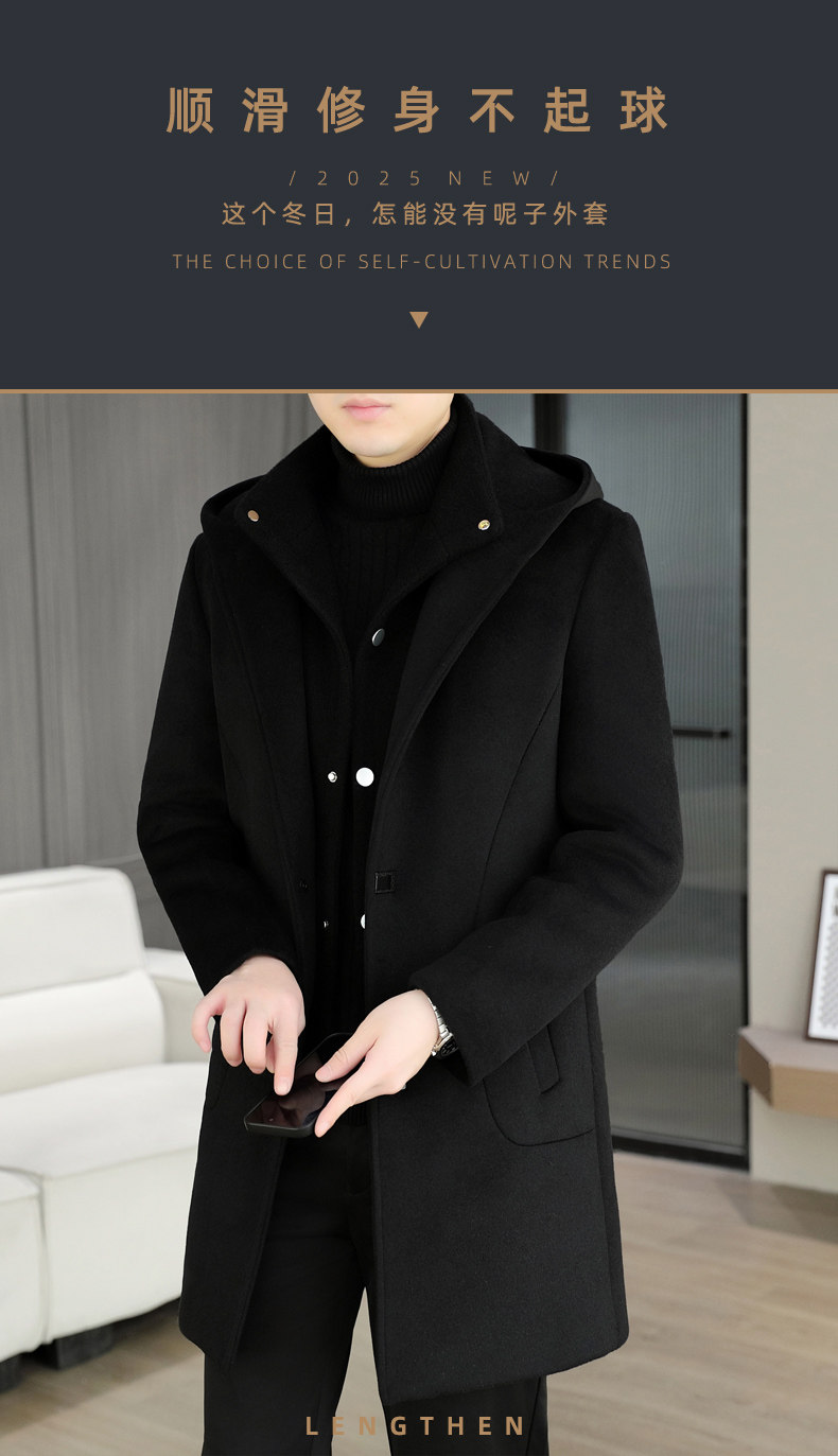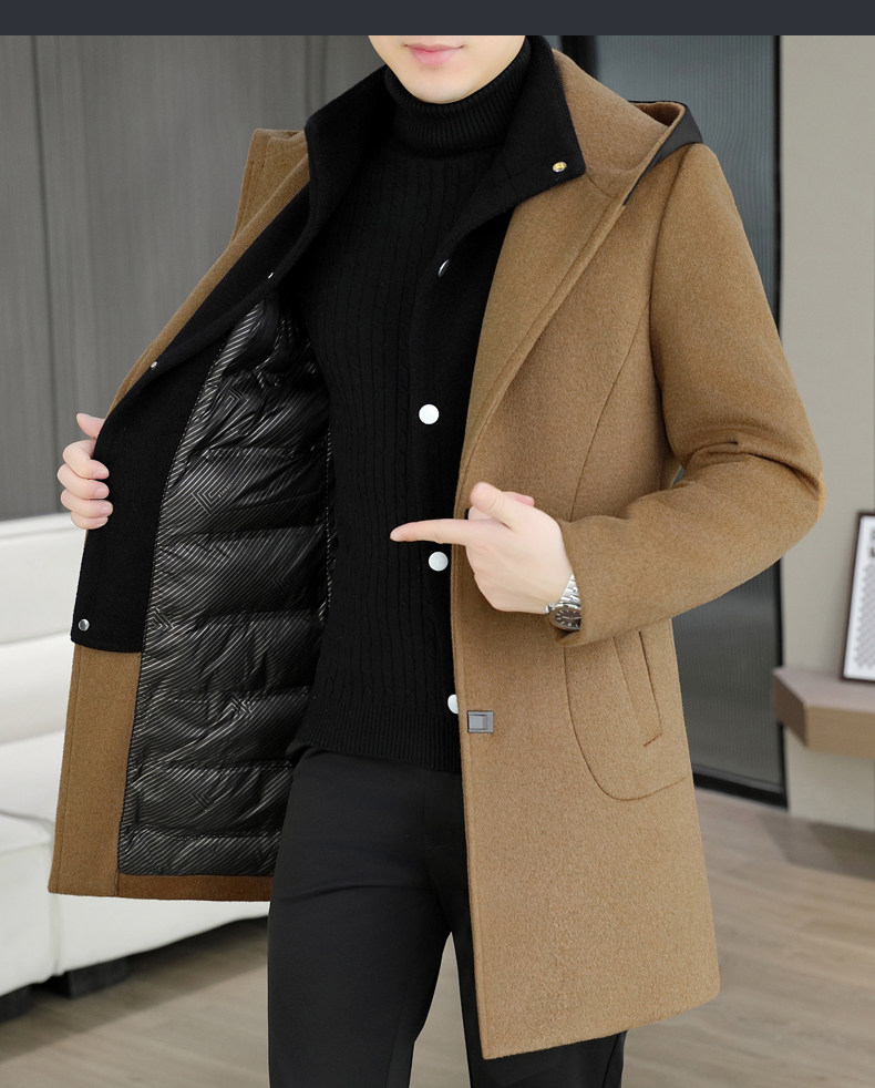 Mid-Length Woolen Coat for Men, Korean Style Cashmere Trench Coat, Thickened for Winter, Warm and Casual Woolen Jacket