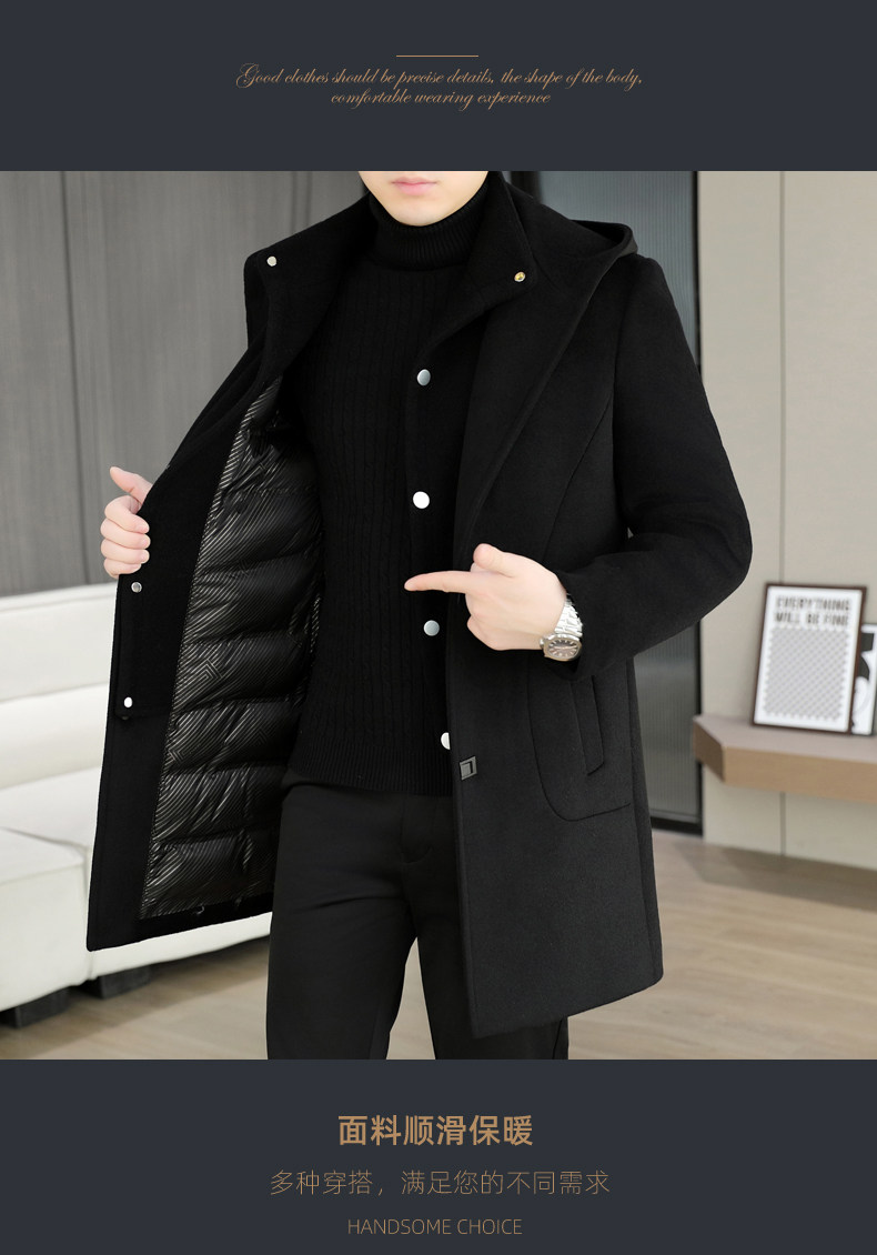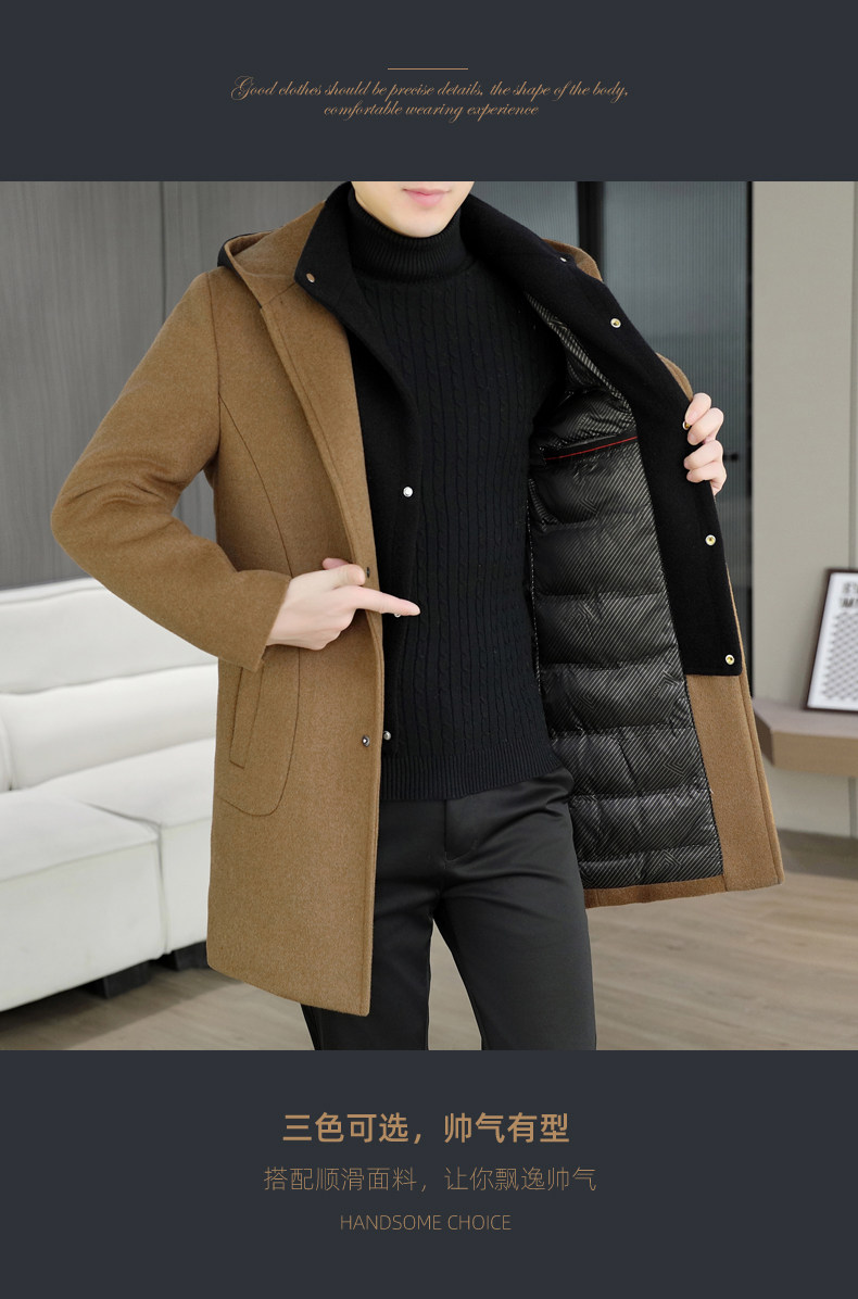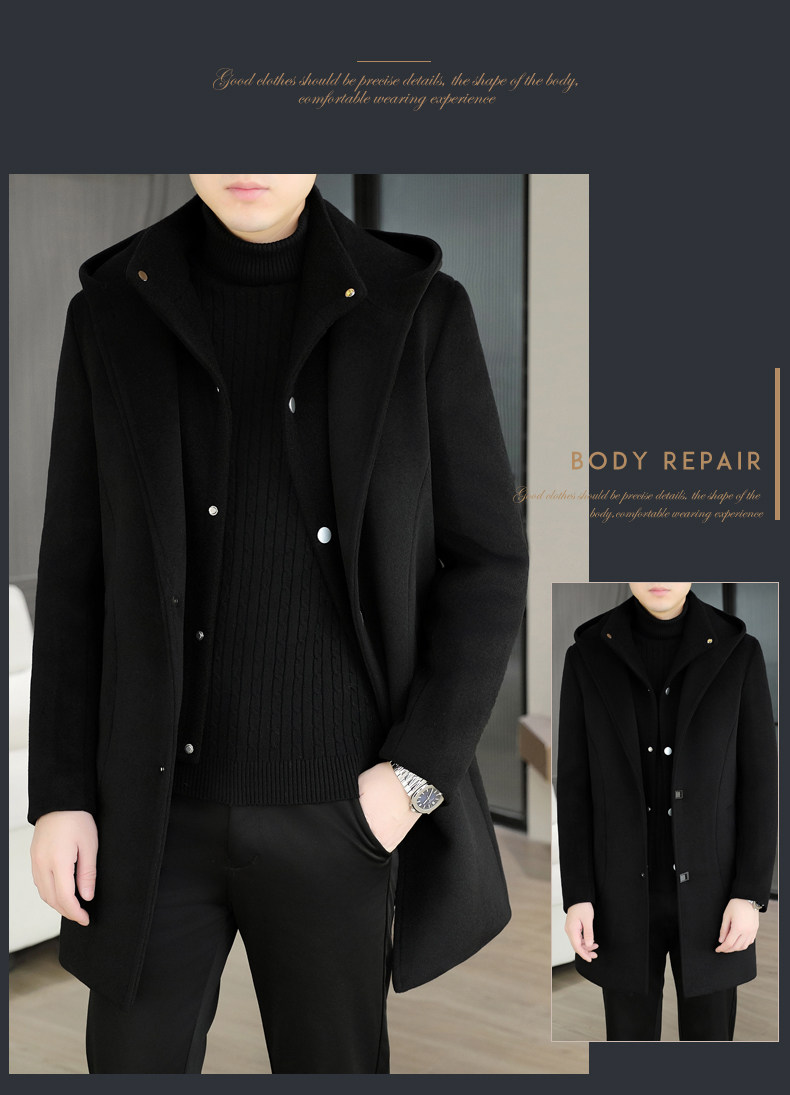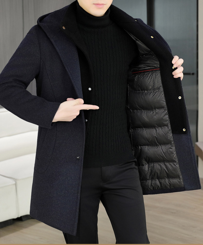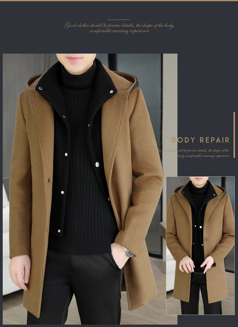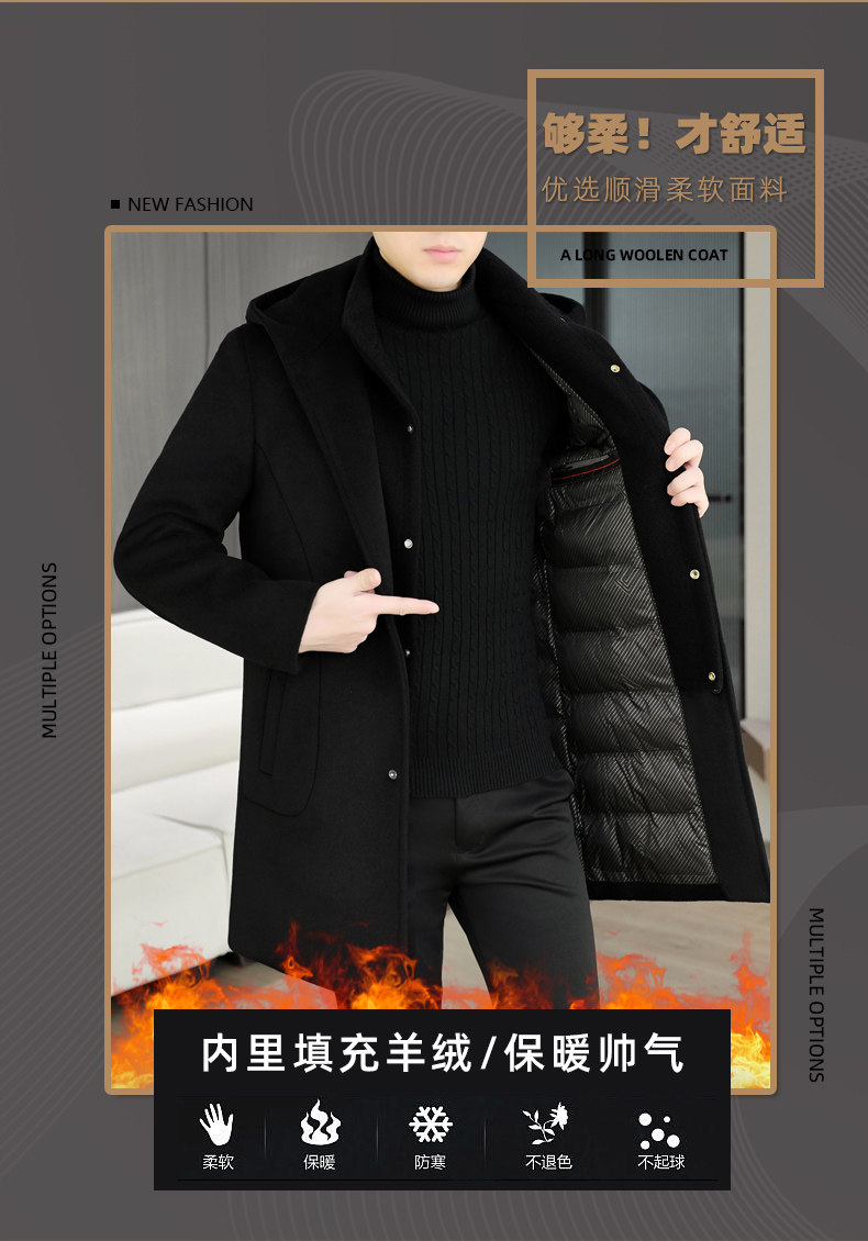Mid-Length Woolen Coat for Men, Korean Style Cashmere Trench Coat, Thickened for Winter, Warm and Casual Woolen Jacket