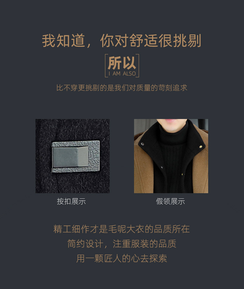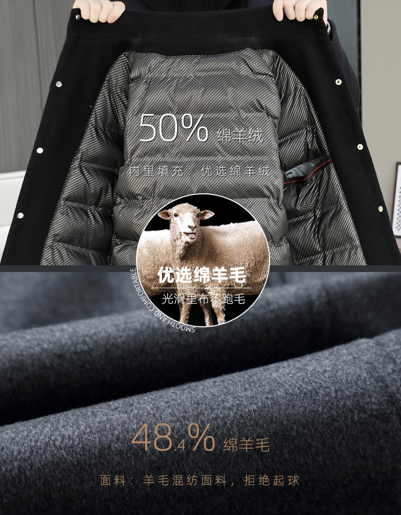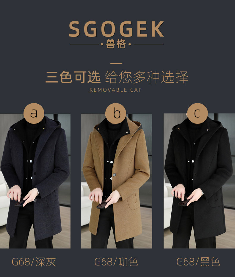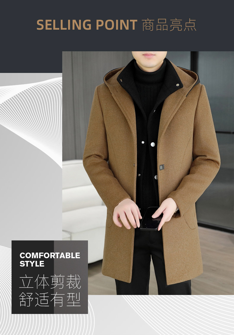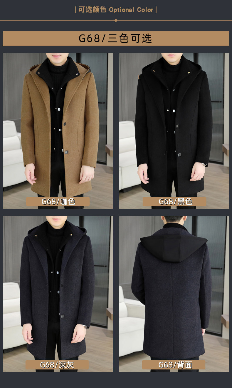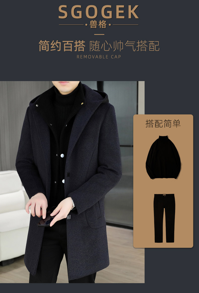 Mid-Length Woolen Coat for Men, Korean Style Cashmere Trench Coat, Thickened for Winter, Warm and Casual Woolen Jacket