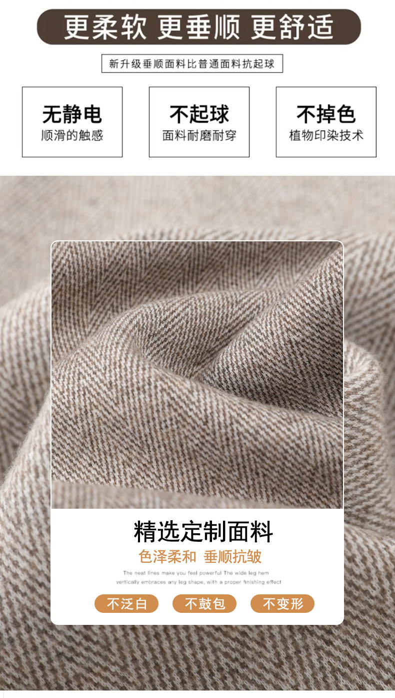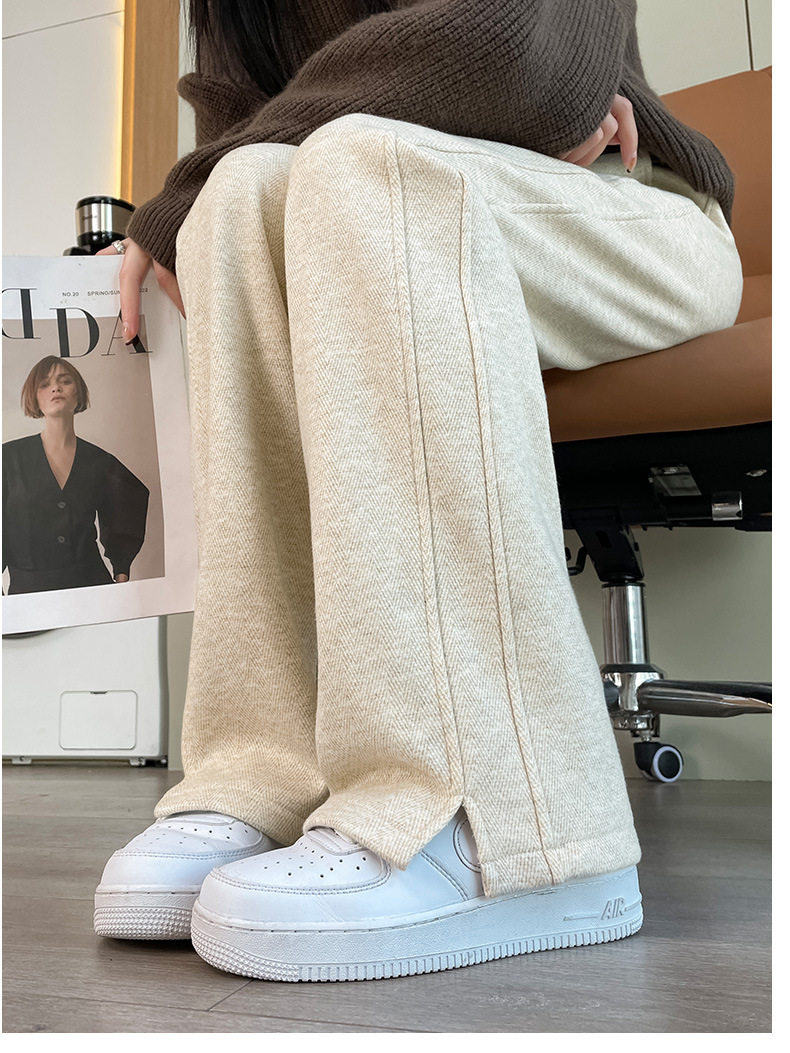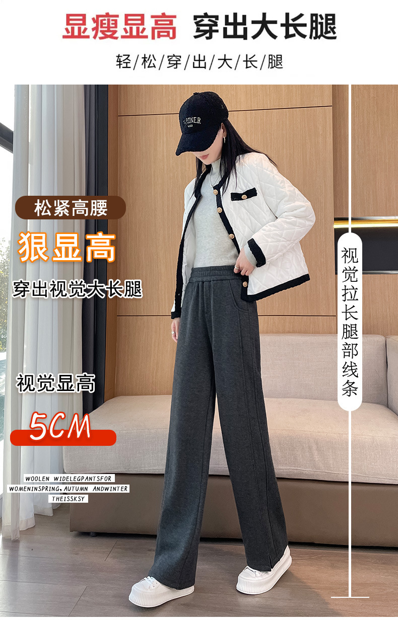 【Hot-Selling Recommendation】Women's Wide-Leg Pants for Autumn and Winter, High-Waisted, Fleece-Lined, Thickened, Slit, Narrow Version, Woolen Fabric, Ct Wide-Leg Pants