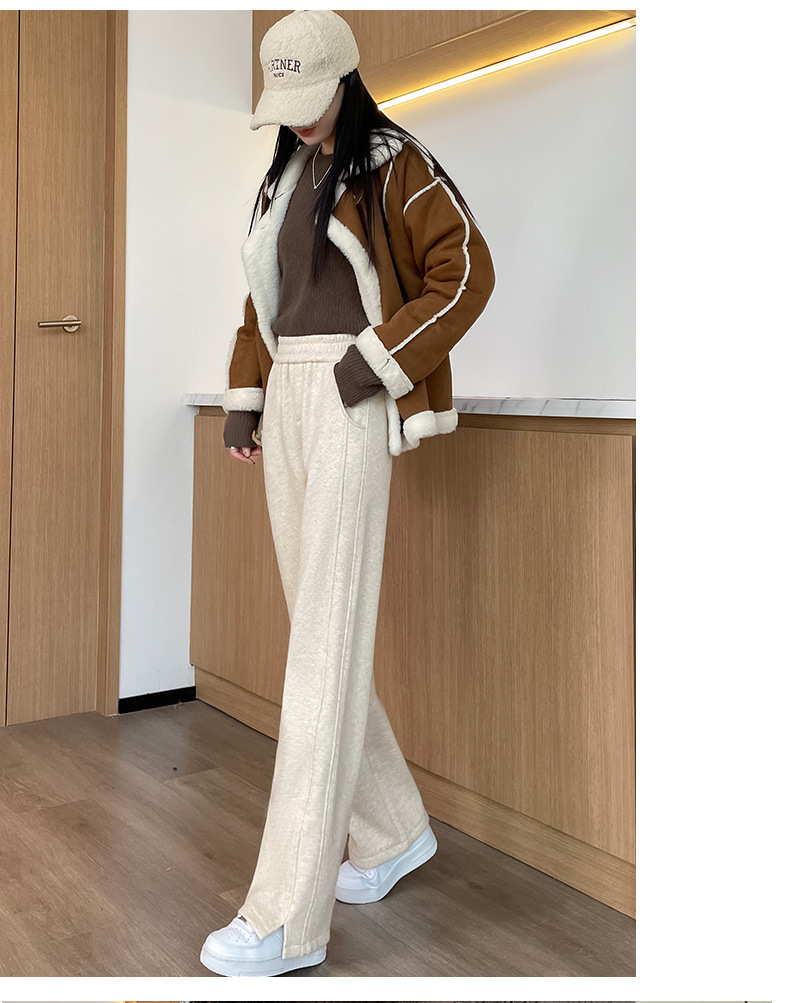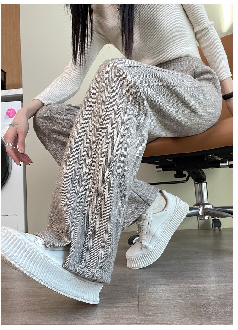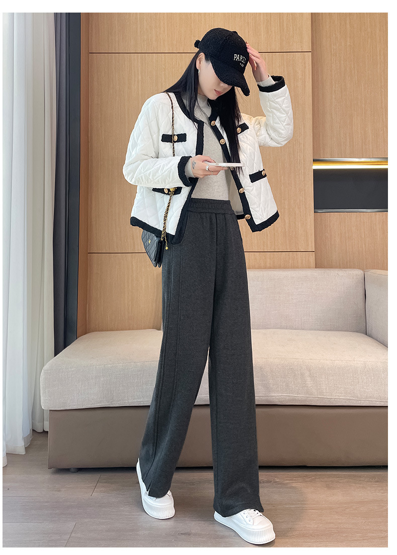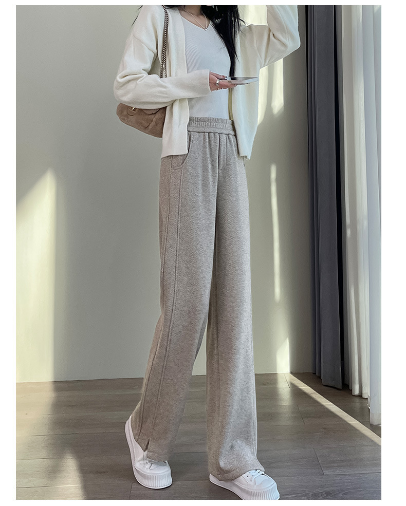 【Hot-Selling Recommendation】Women's Wide-Leg Pants for Autumn and Winter, High-Waisted, Fleece-Lined, Thickened, Slit, Narrow Version, Woolen Fabric, Ct Wide-Leg Pants