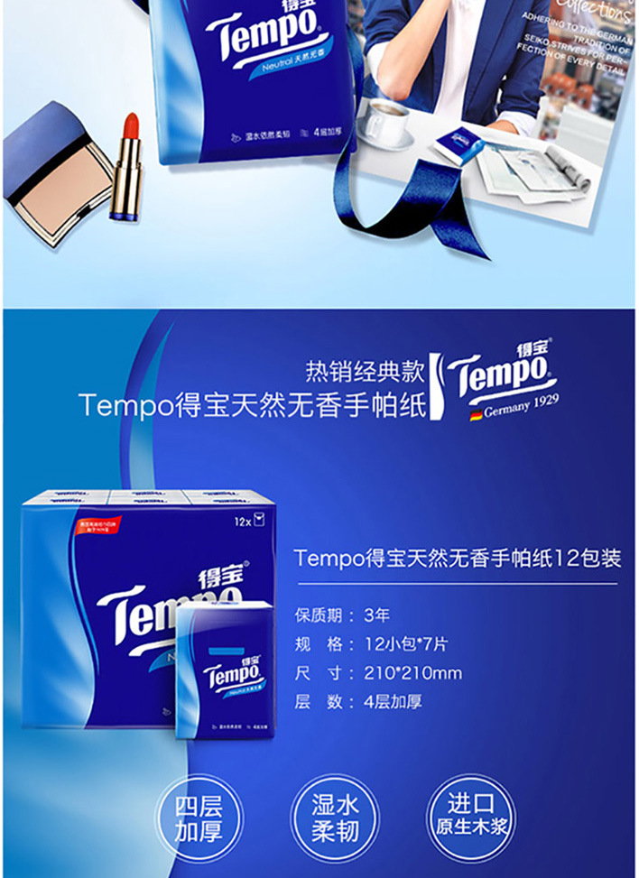 Debao Handkerchief Paper, Natural Unscented, 4-Ply, 7 Sheets, 12 Packs/Tissue Paper, Wettable Tissue, Portable T0138B