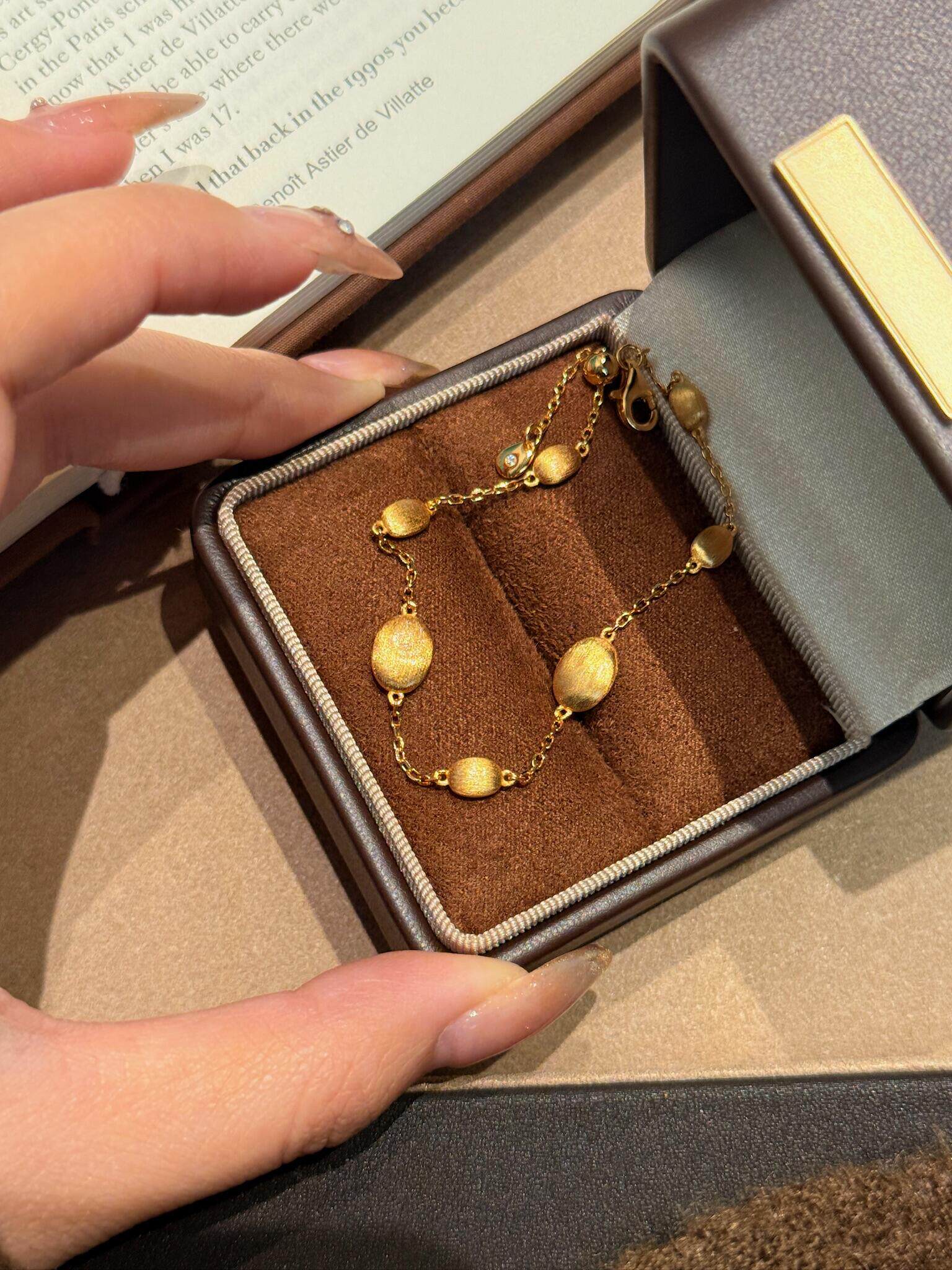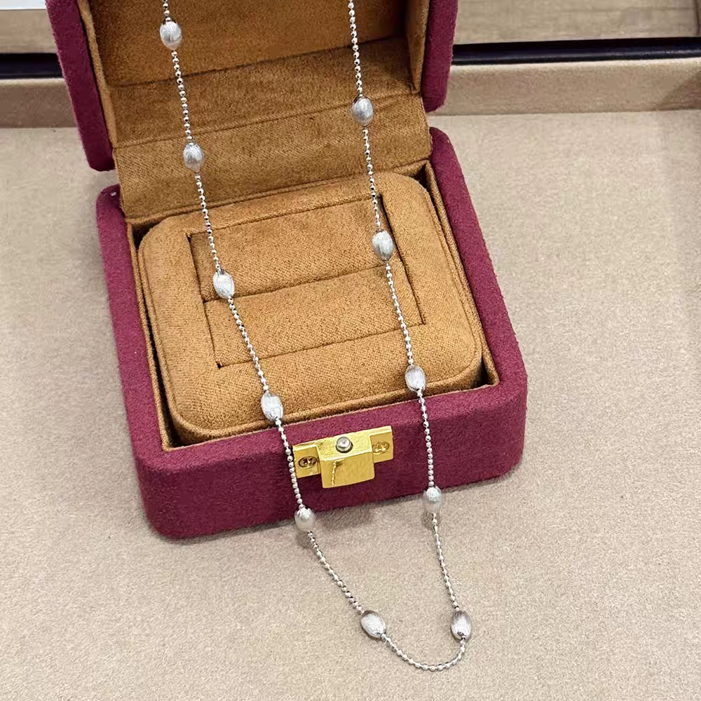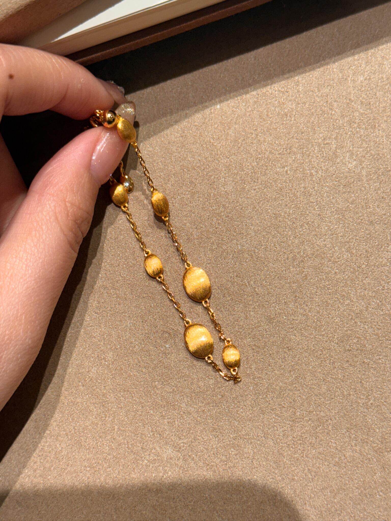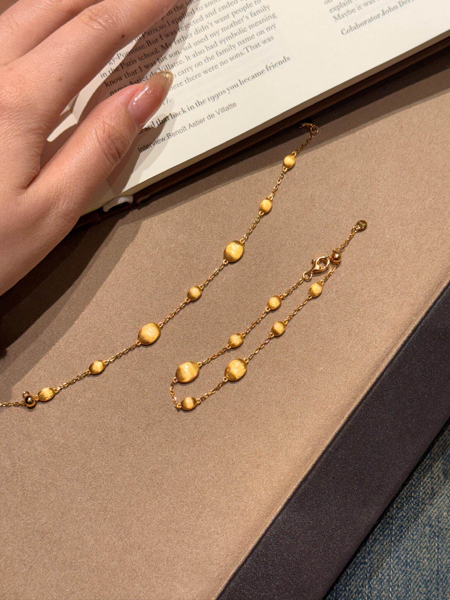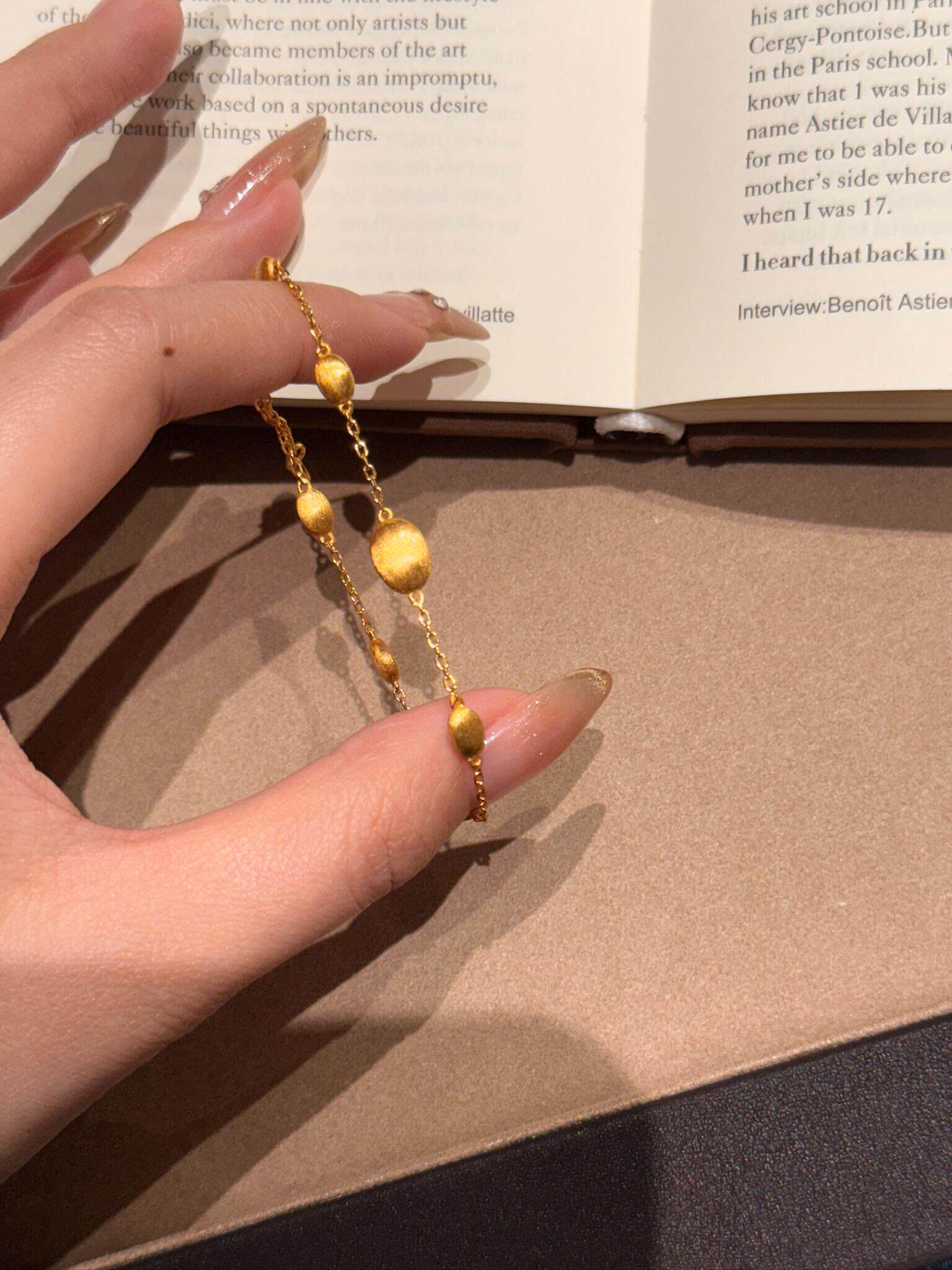 S925 Sterling Silver! Brushed Olive Bead Necklace and Bracelet Set, Gold Bean French Light Luxury Long and Short Necklace and Bracelet
