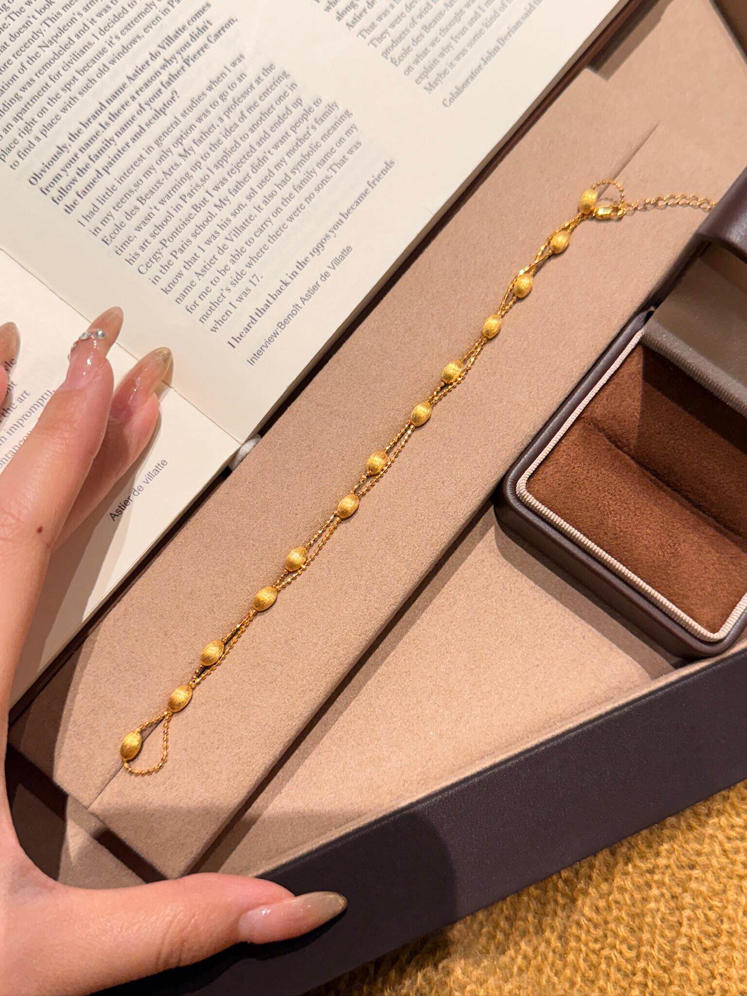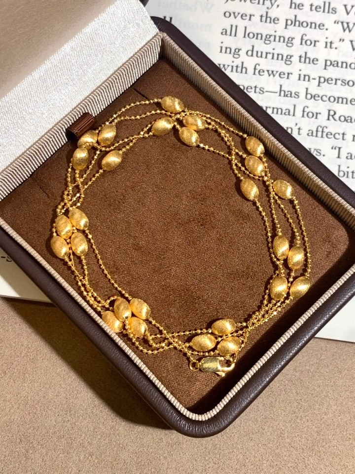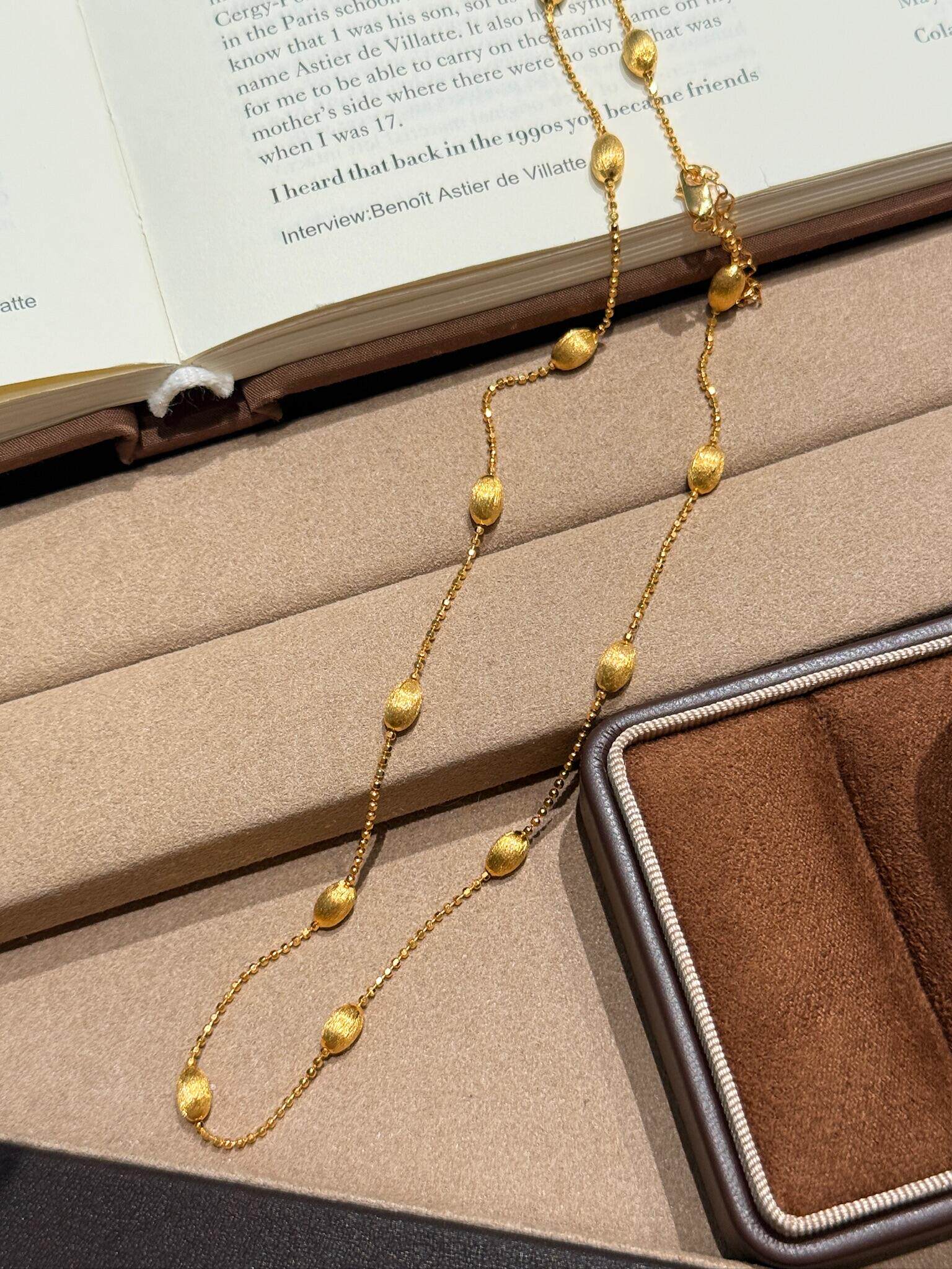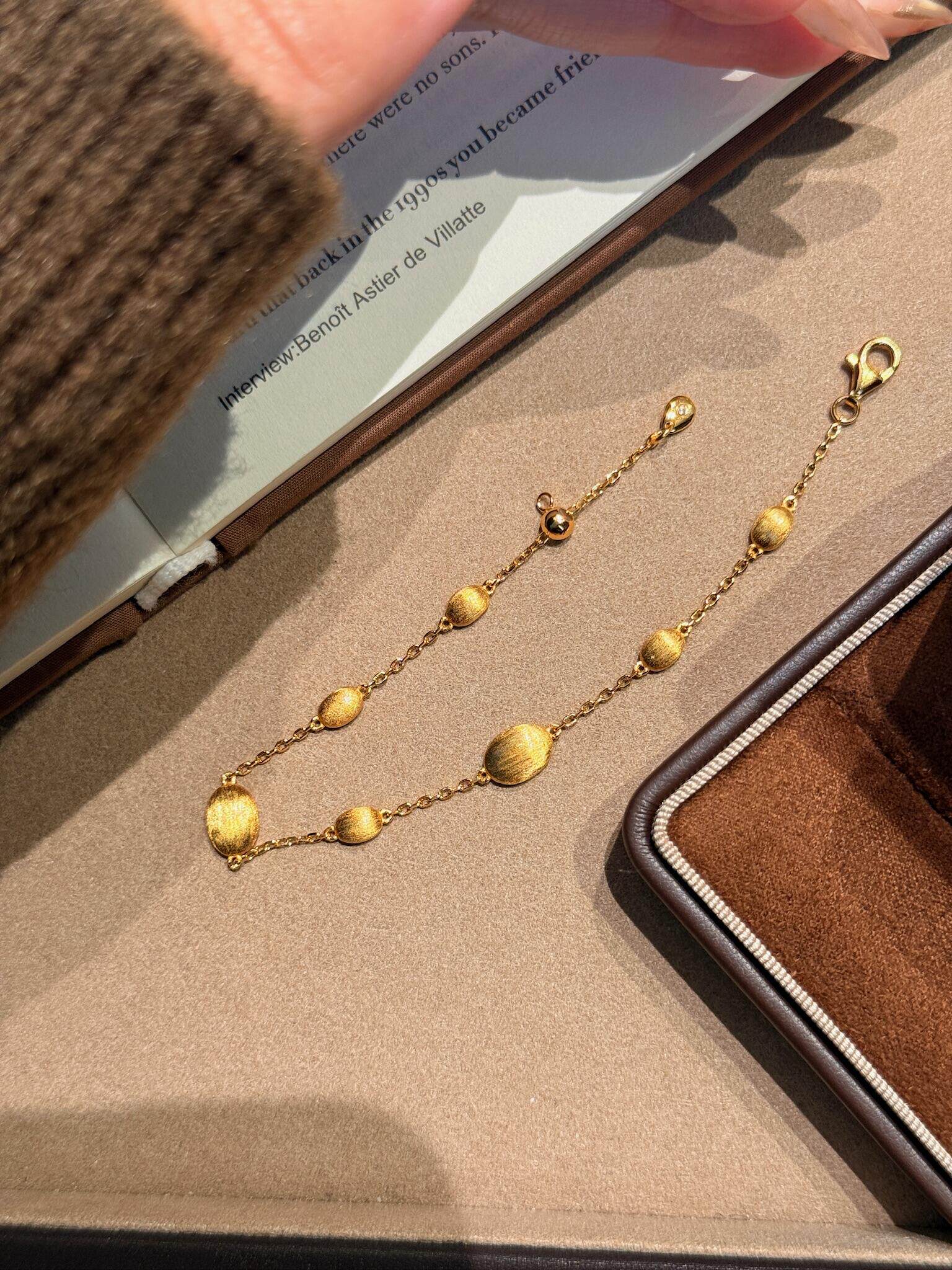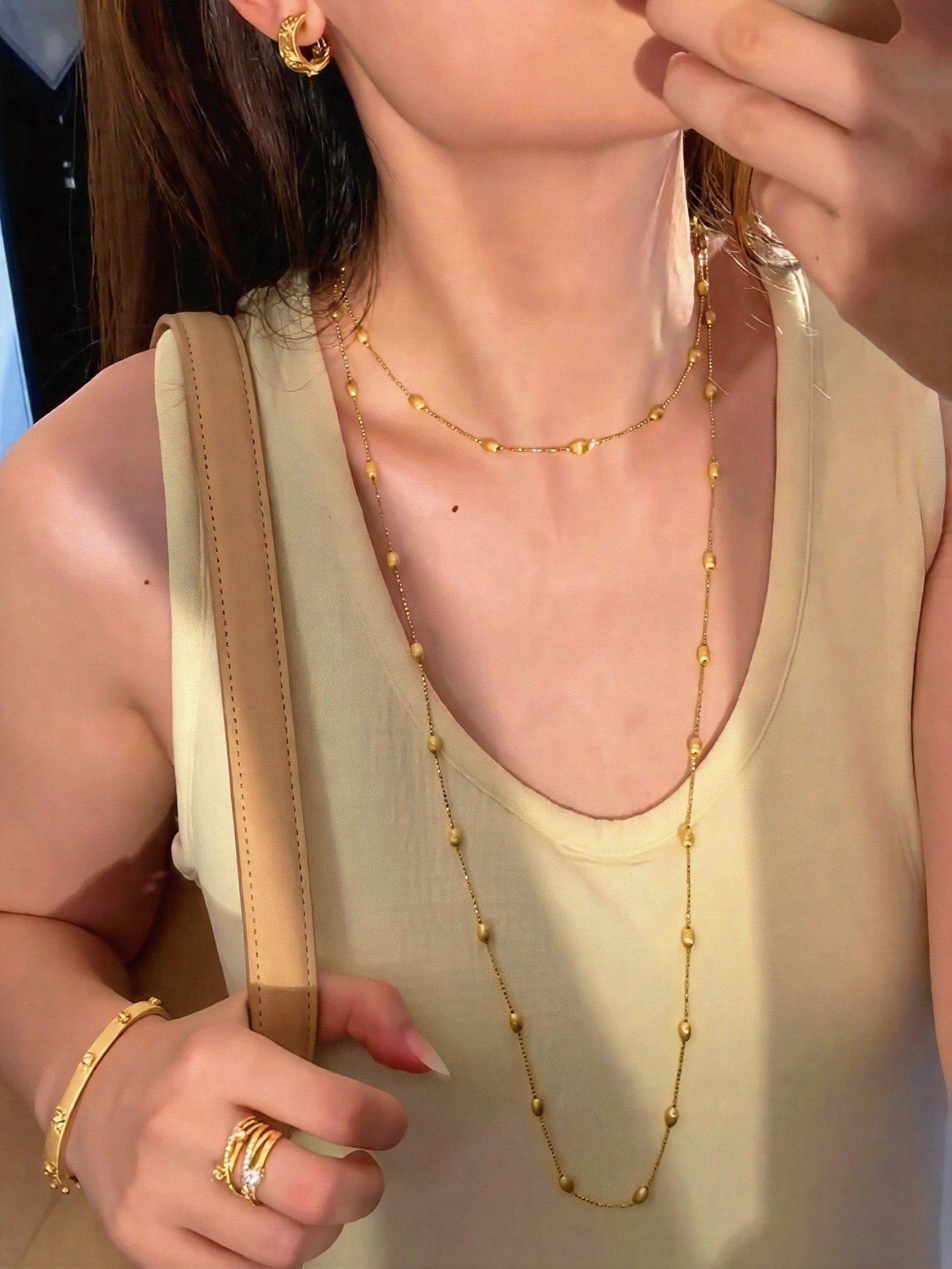 S925 Sterling Silver! Brushed Olive Bead Necklace and Bracelet Set, Gold Bean French Light Luxury Long and Short Necklace and Bracelet