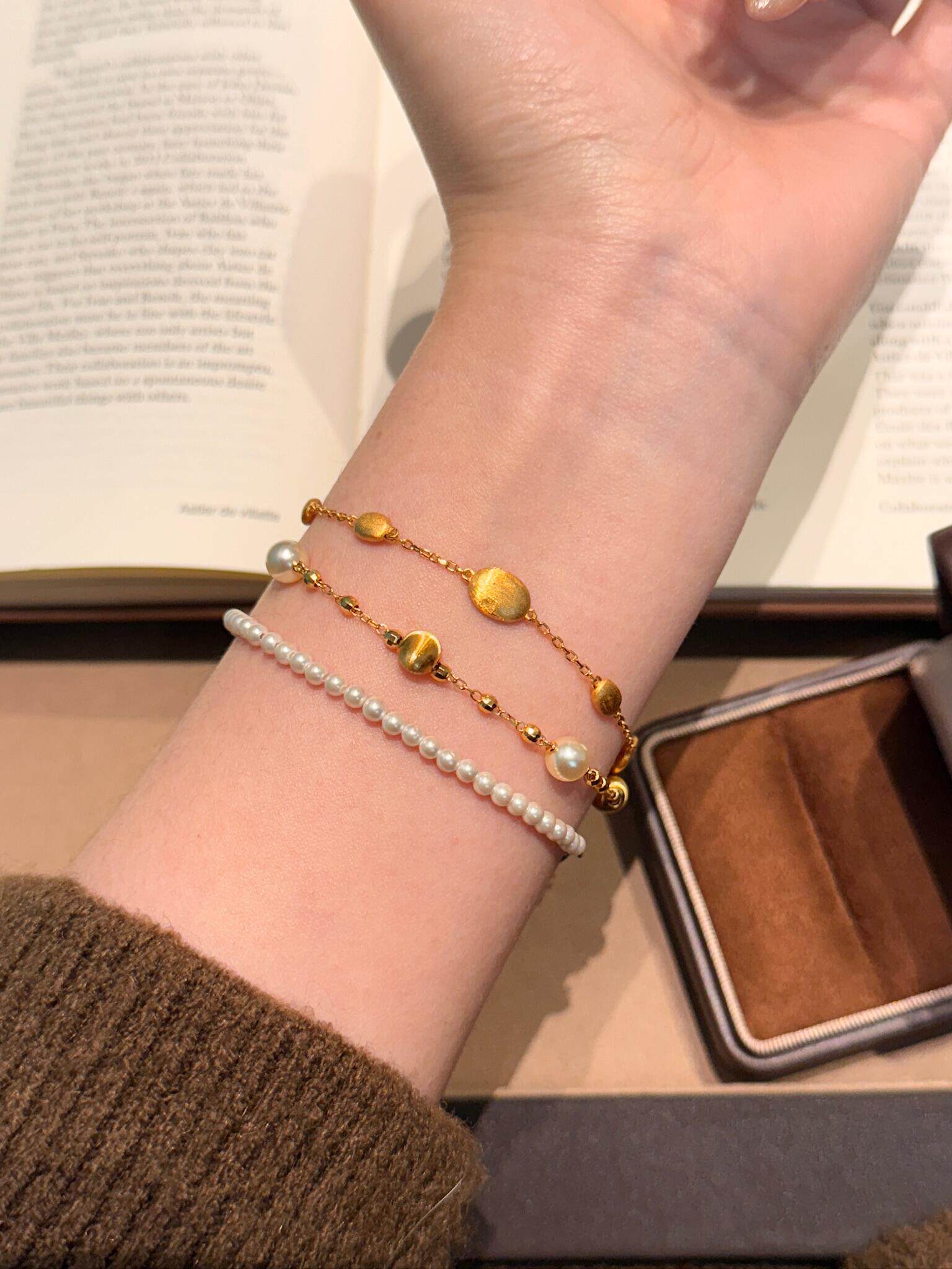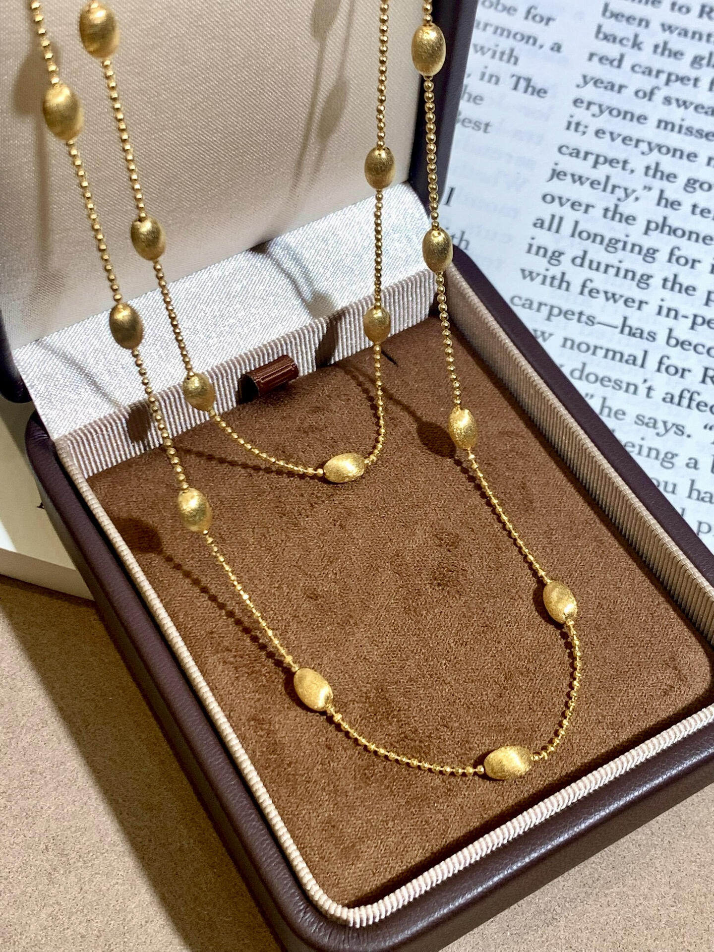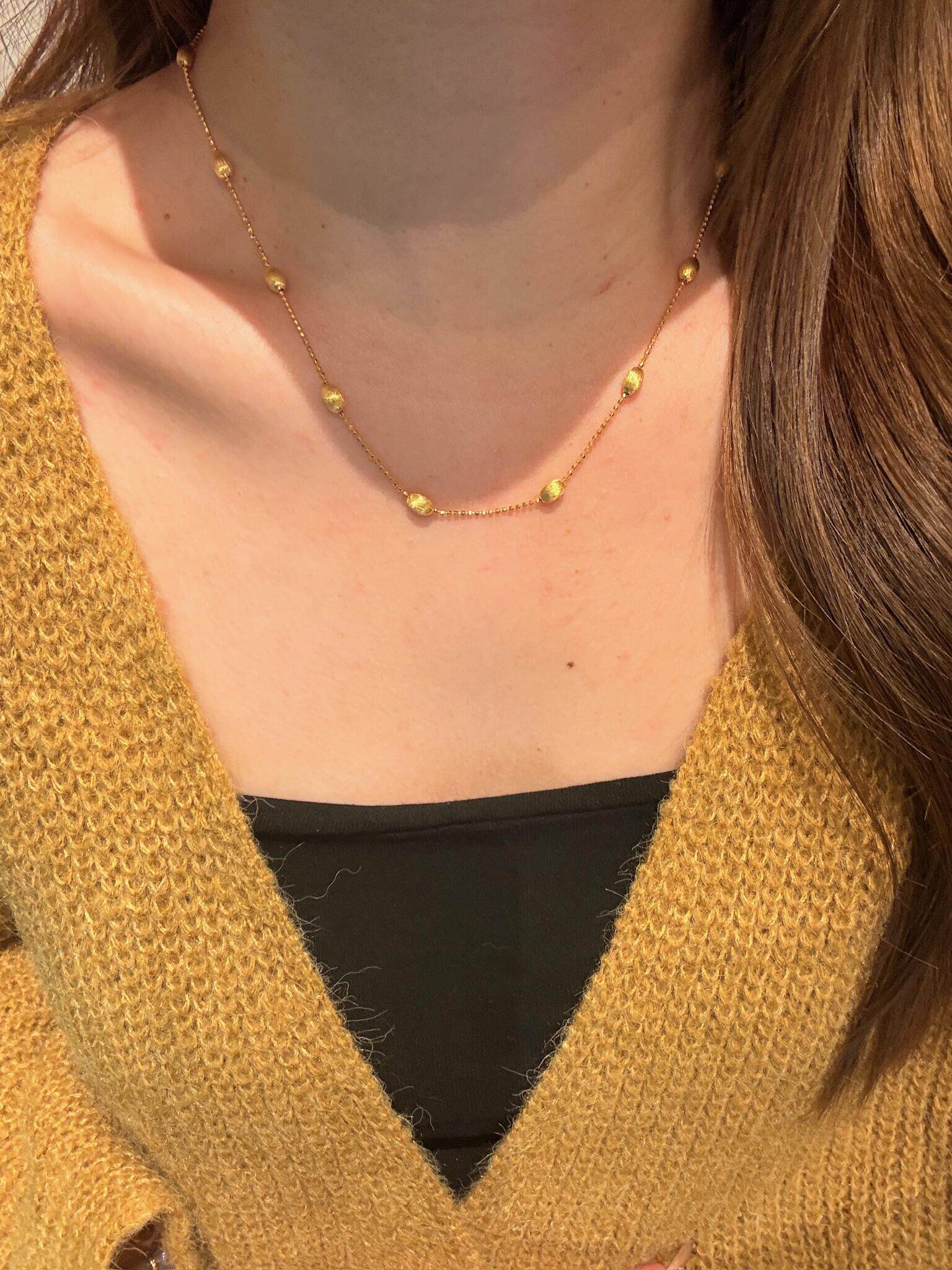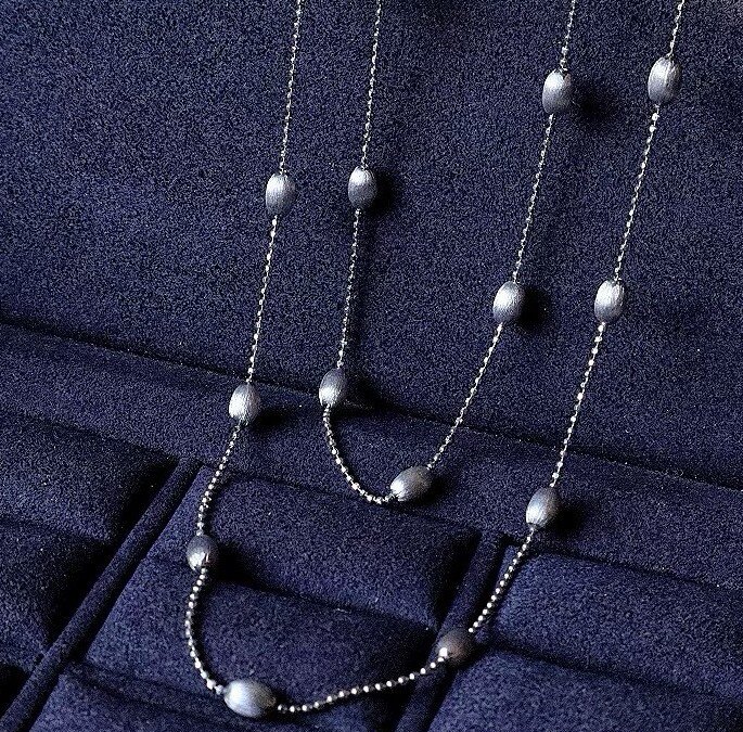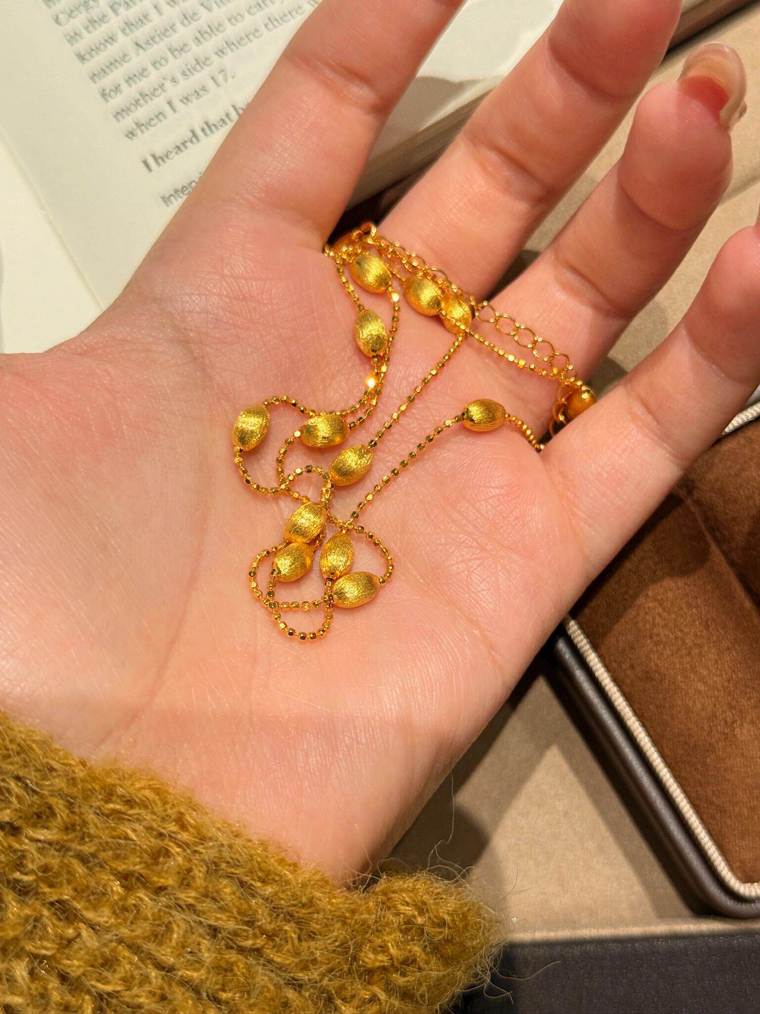 S925 Sterling Silver! Brushed Olive Bead Necklace and Bracelet Set, Gold Bean French Light Luxury Long and Short Necklace and Bracelet