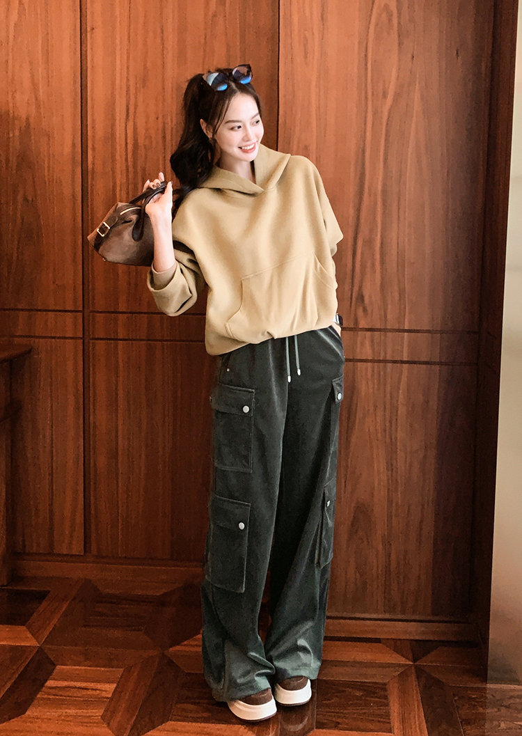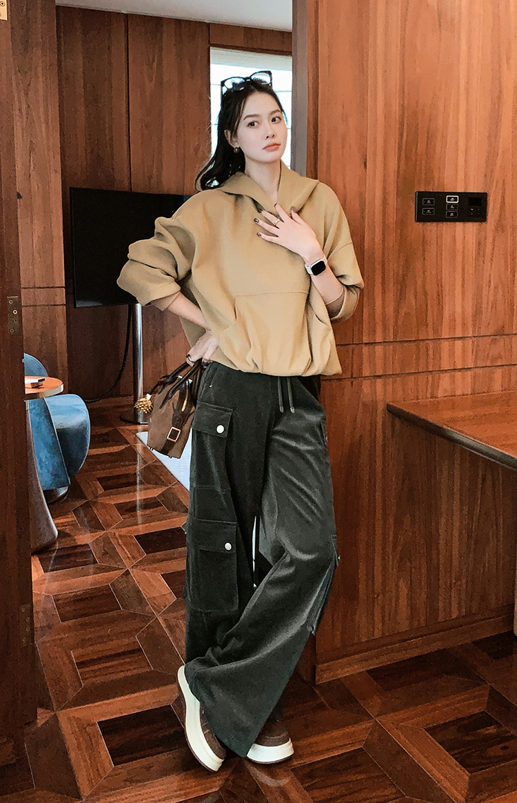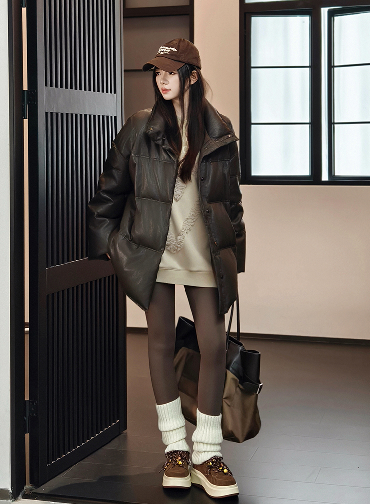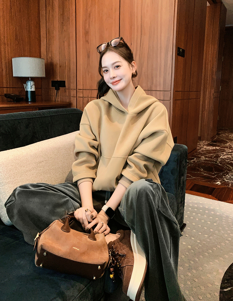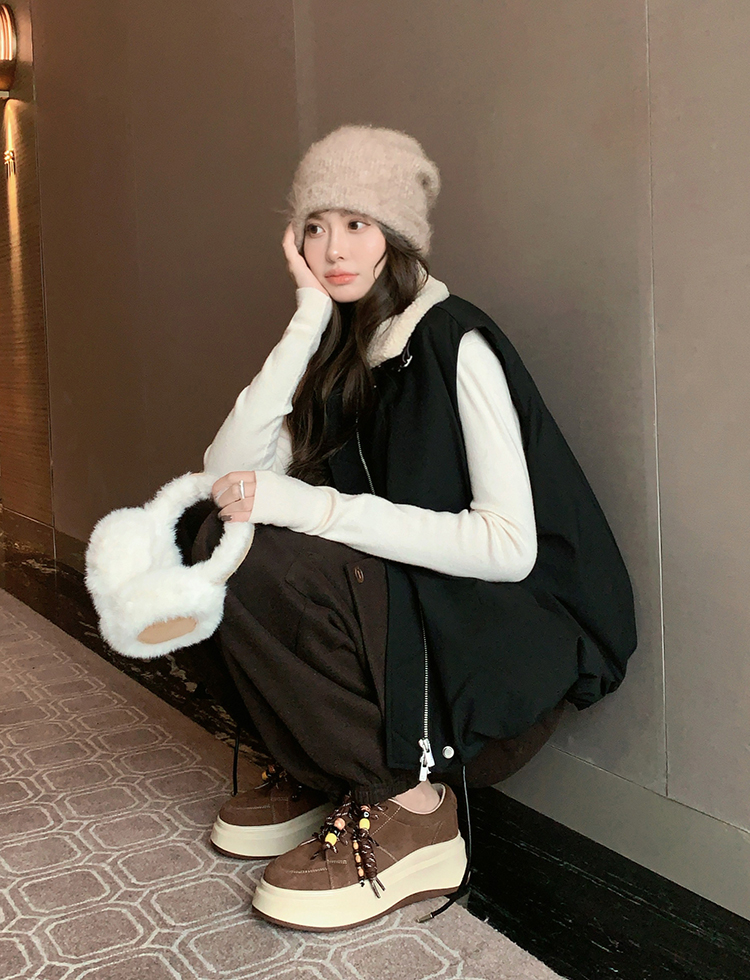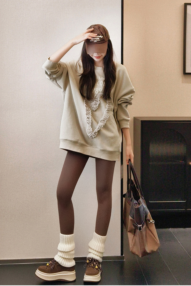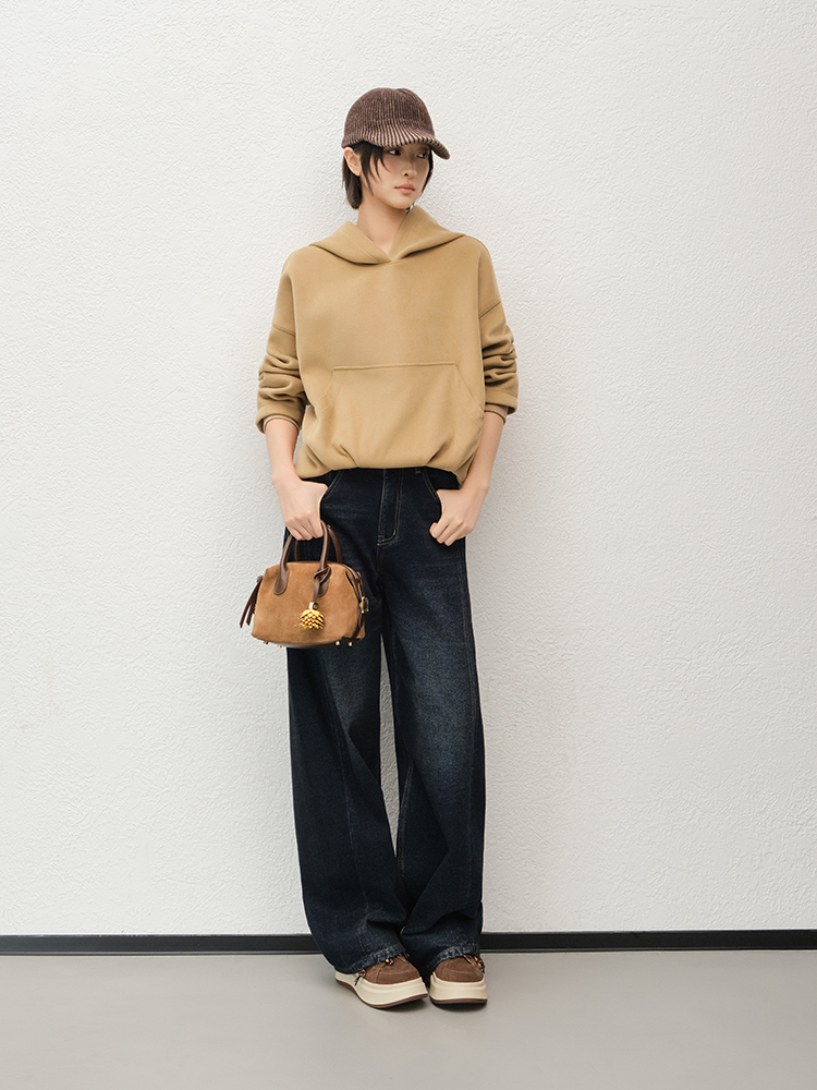 Meiyang Brown Sesame Casual Shoes Cow Suede_ Vintage Sweet Cool Round Toe Color-Block Beaded Decoration Thick Sole