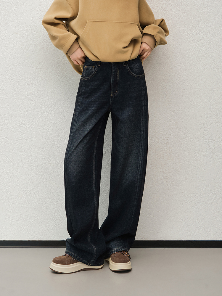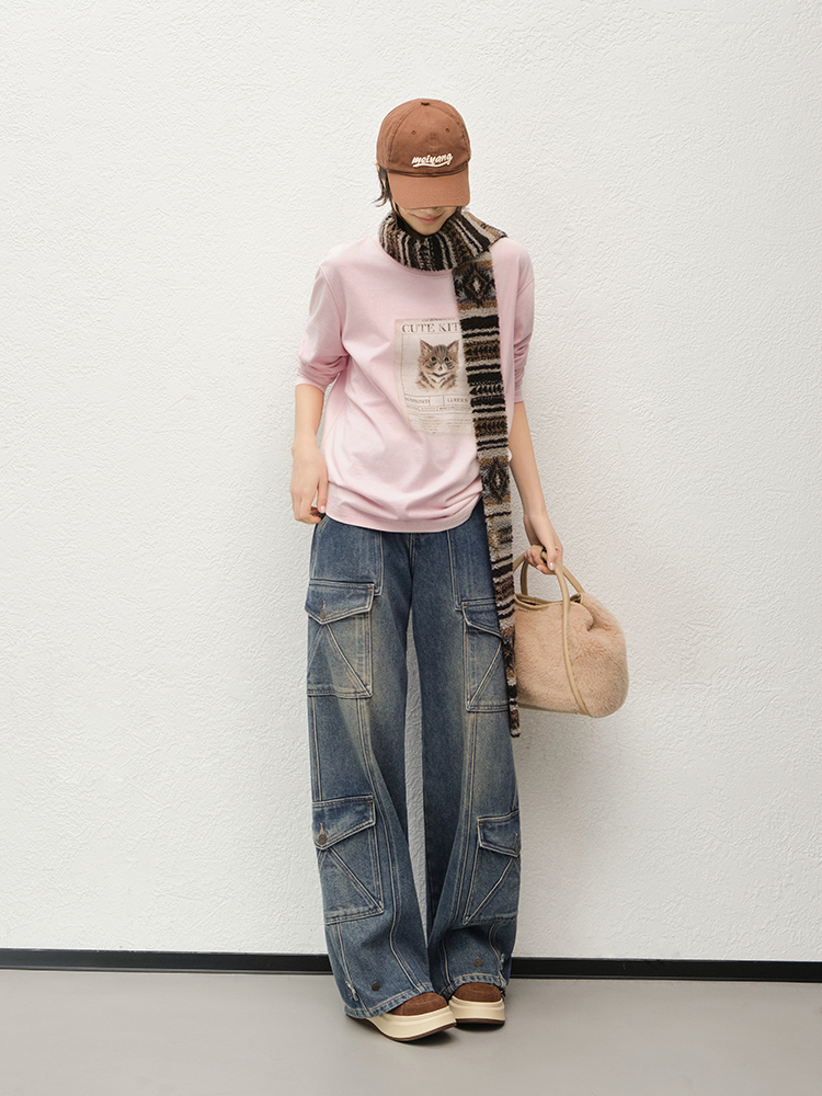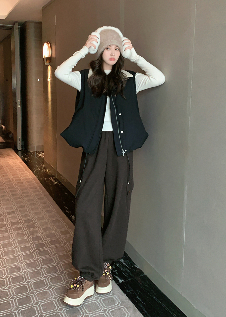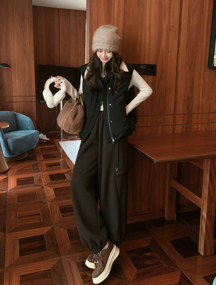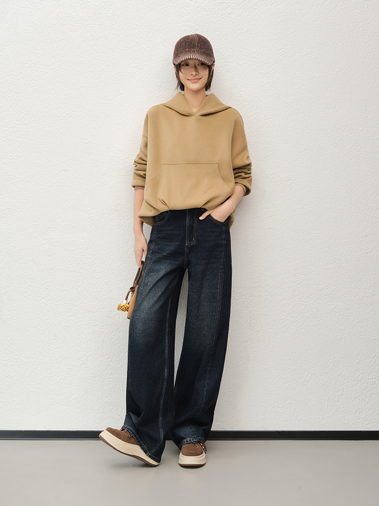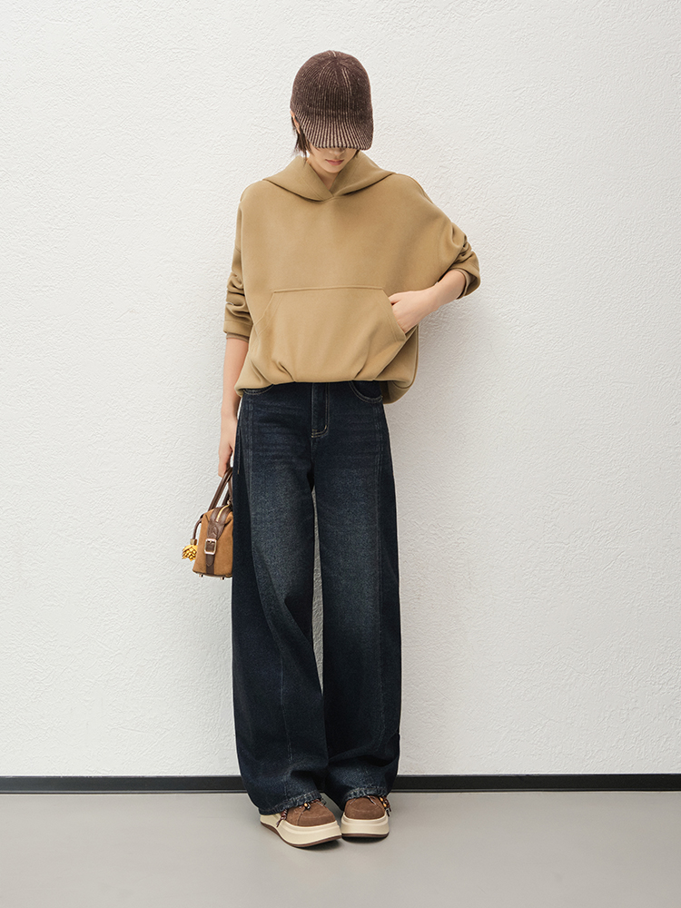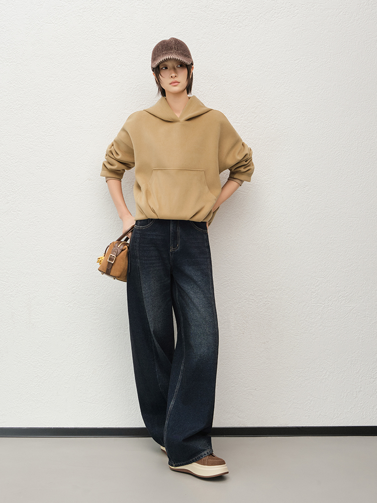 Meiyang Brown Sesame Casual Shoes Cow Suede_ Vintage Sweet Cool Round Toe Color-Block Beaded Decoration Thick Sole