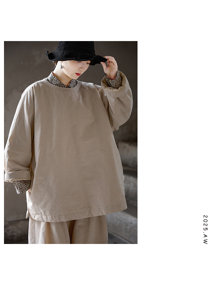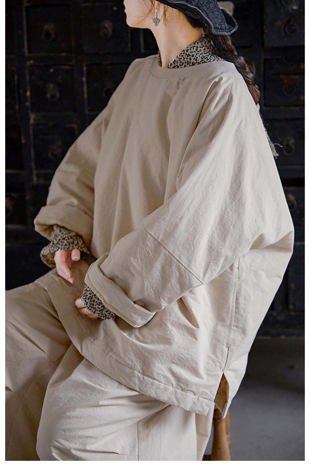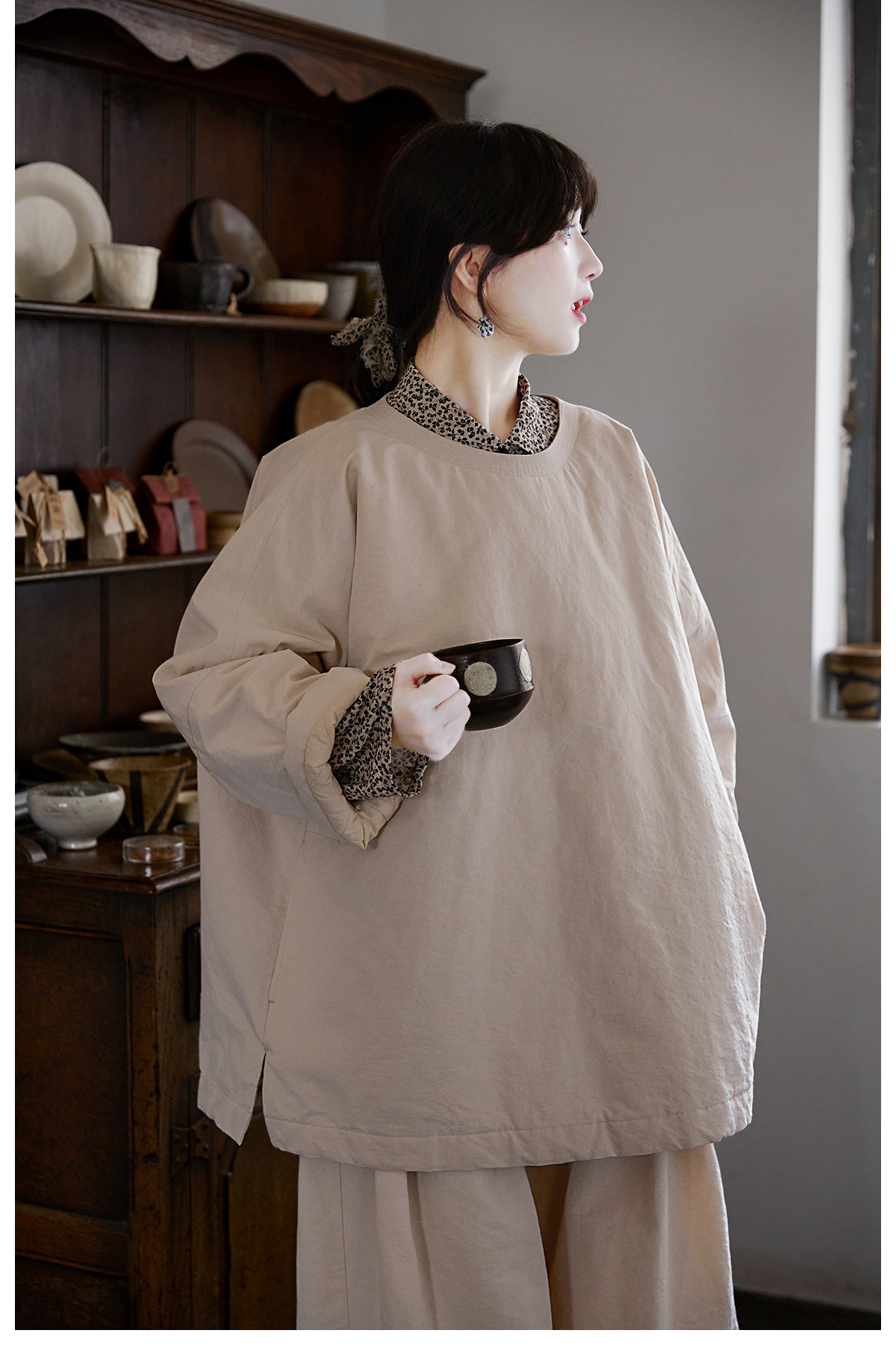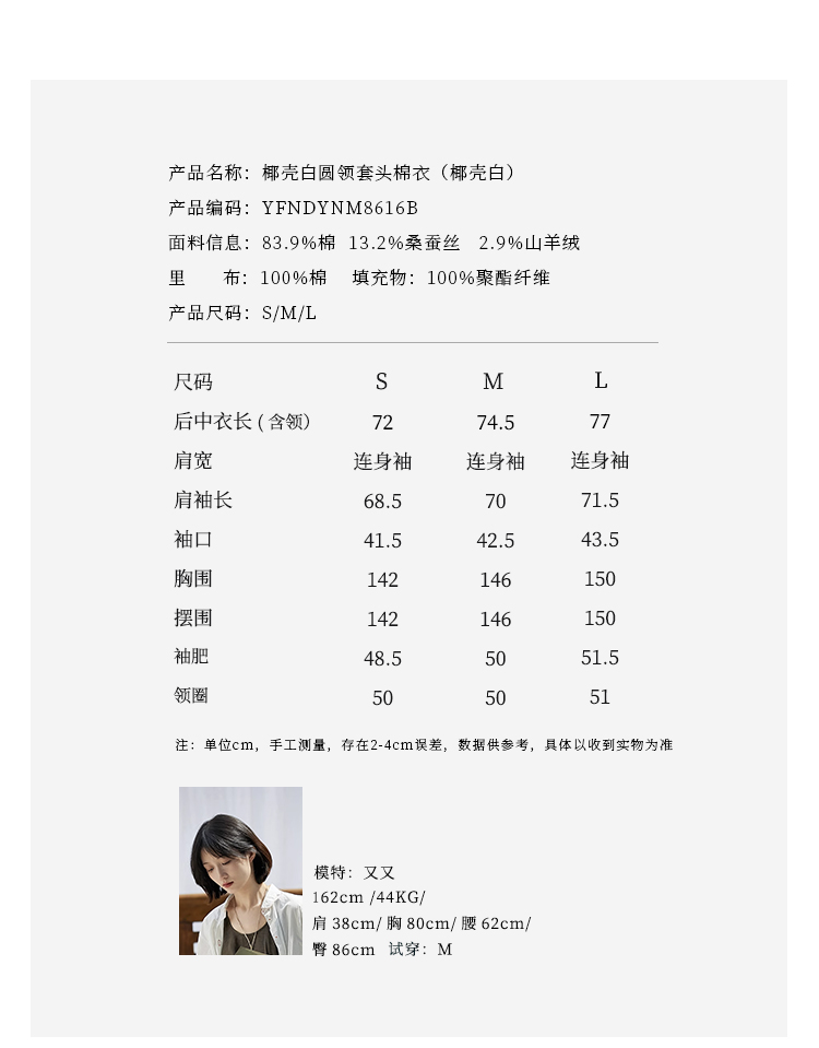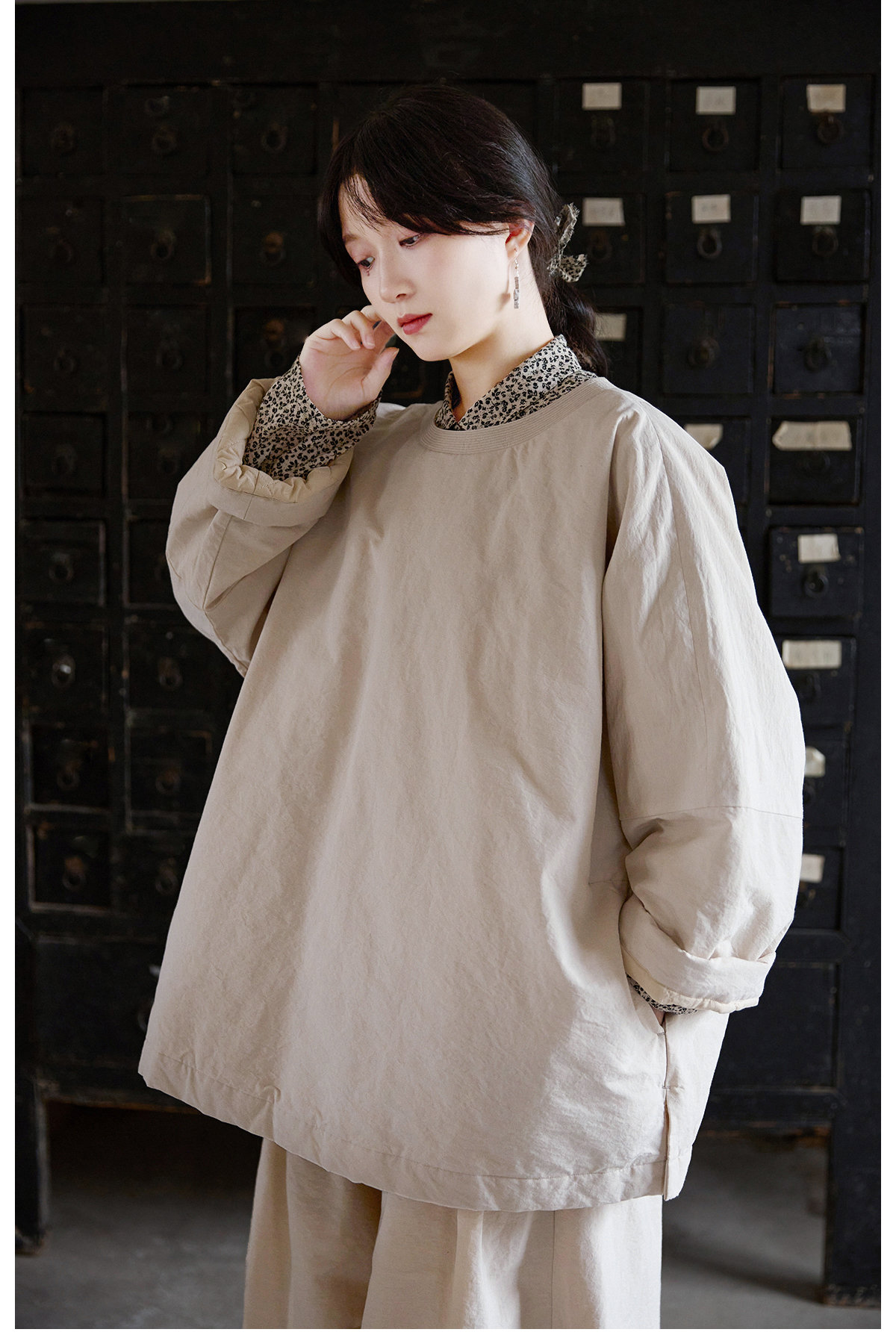 Original [Folk Art] Winter Coconut Shell White High-Quality Mulberry Silk Cashmere Simple Pullover Warm Cotton Coat 8616