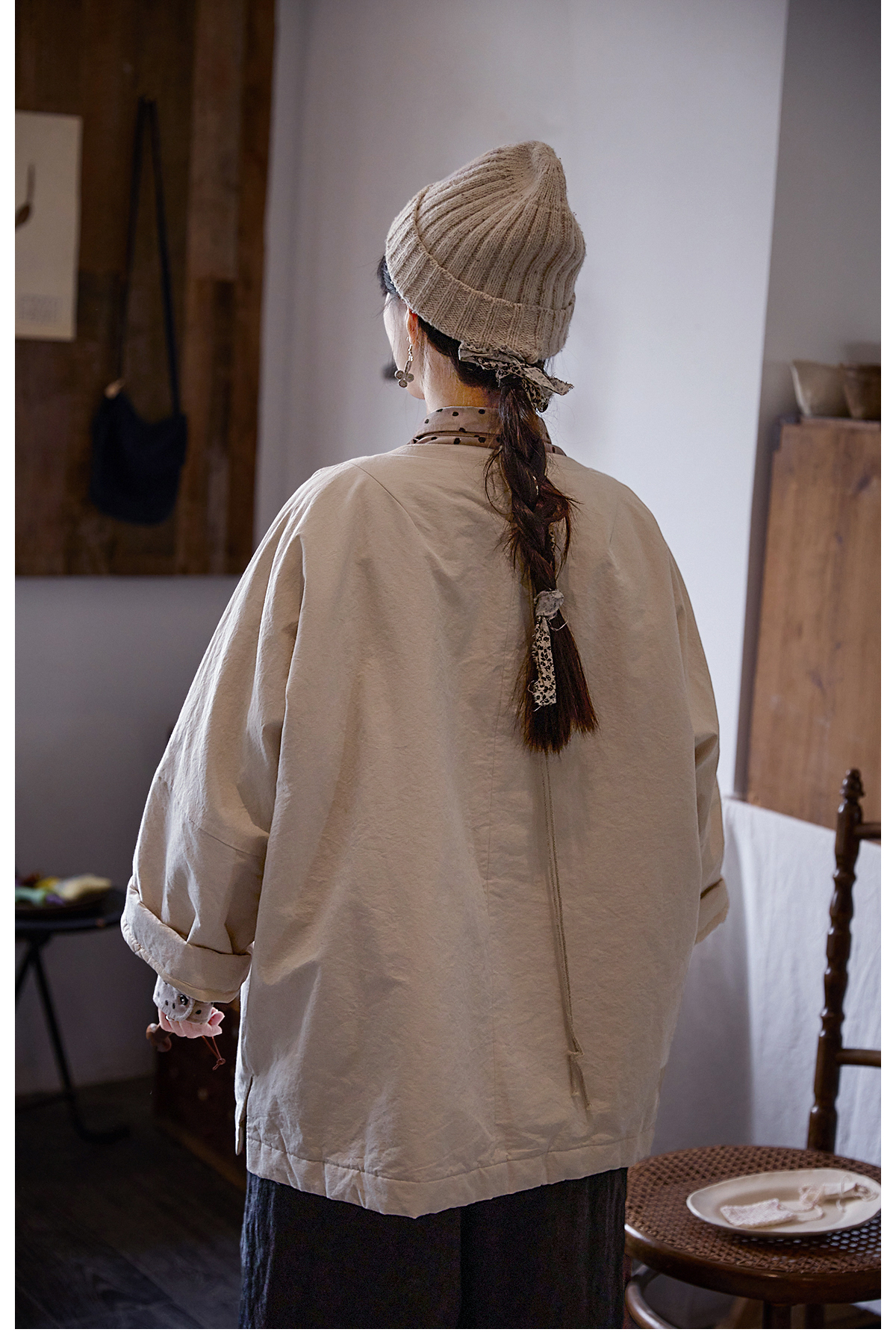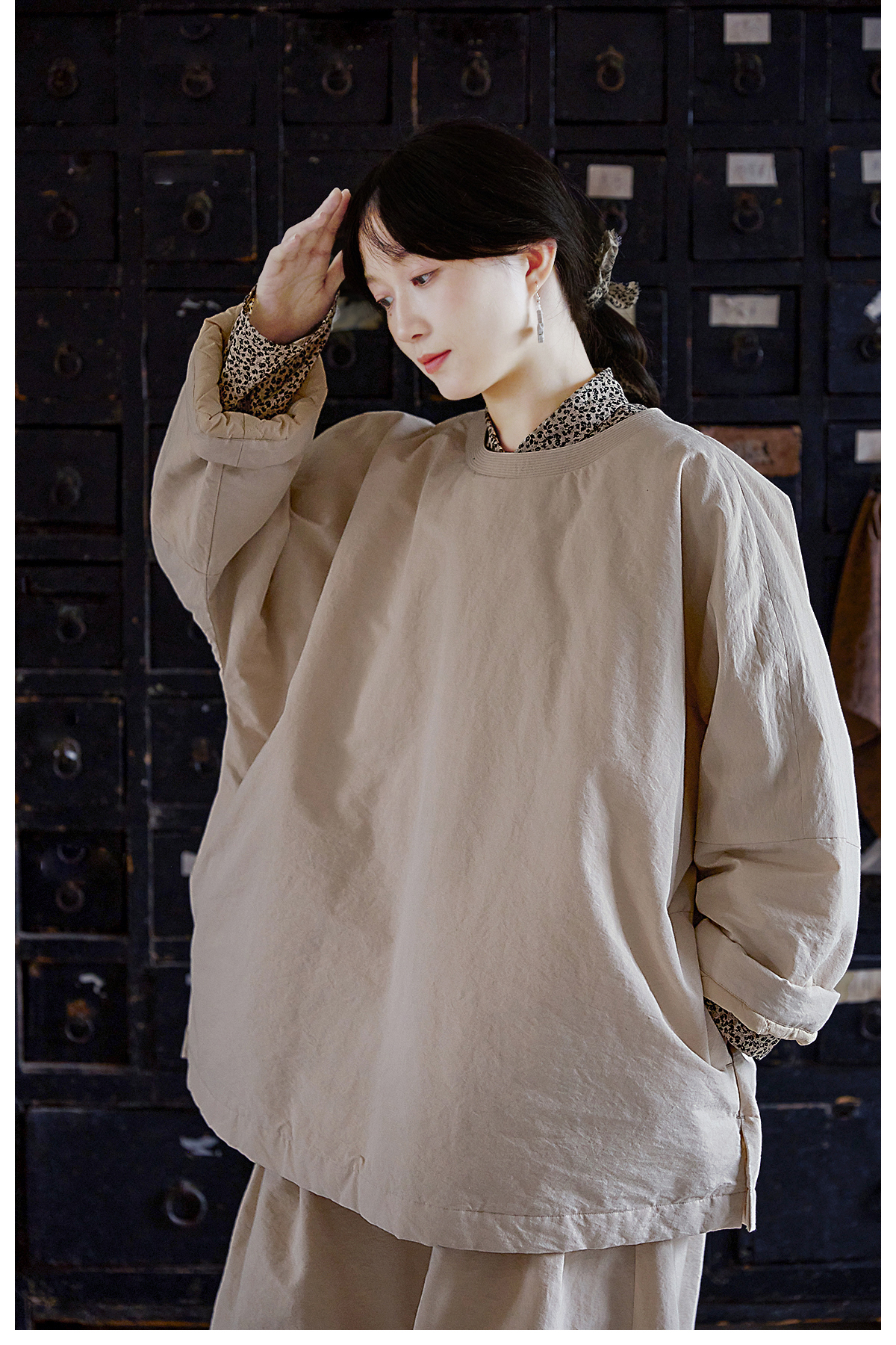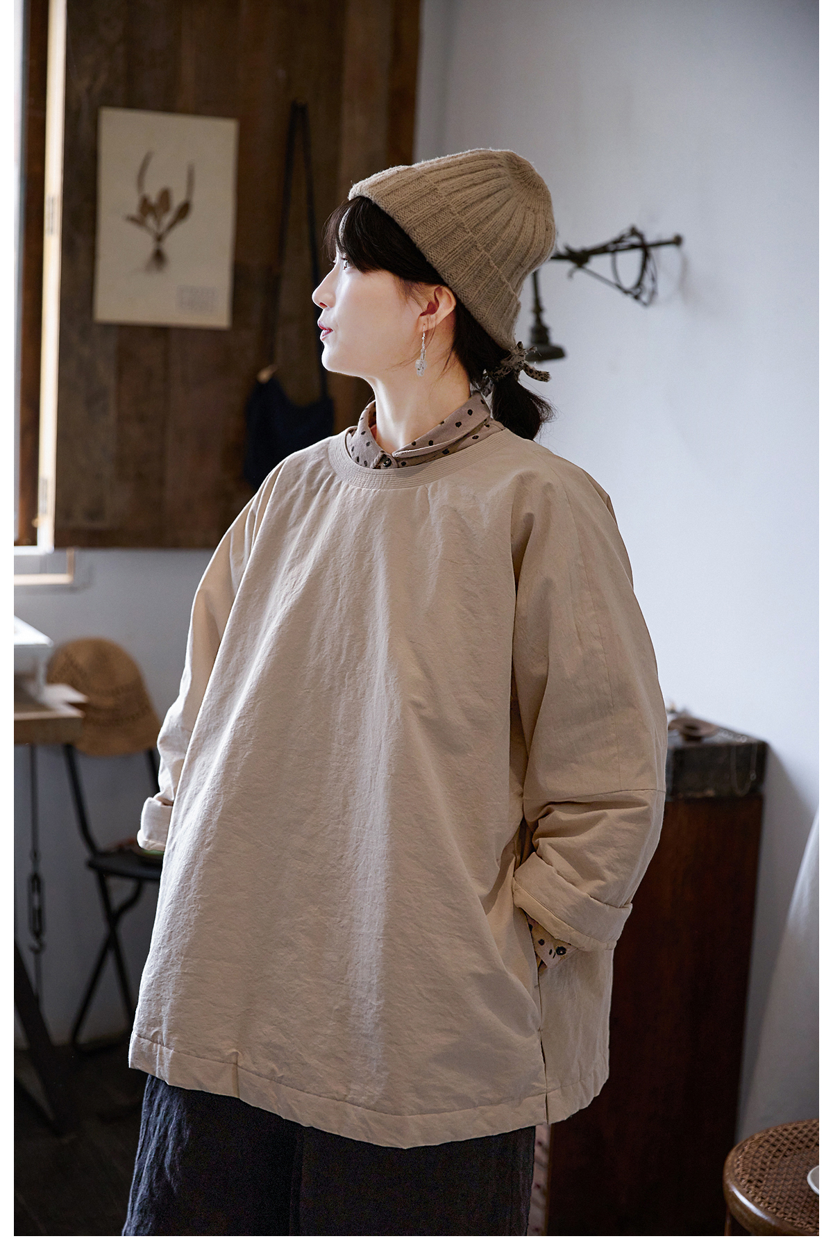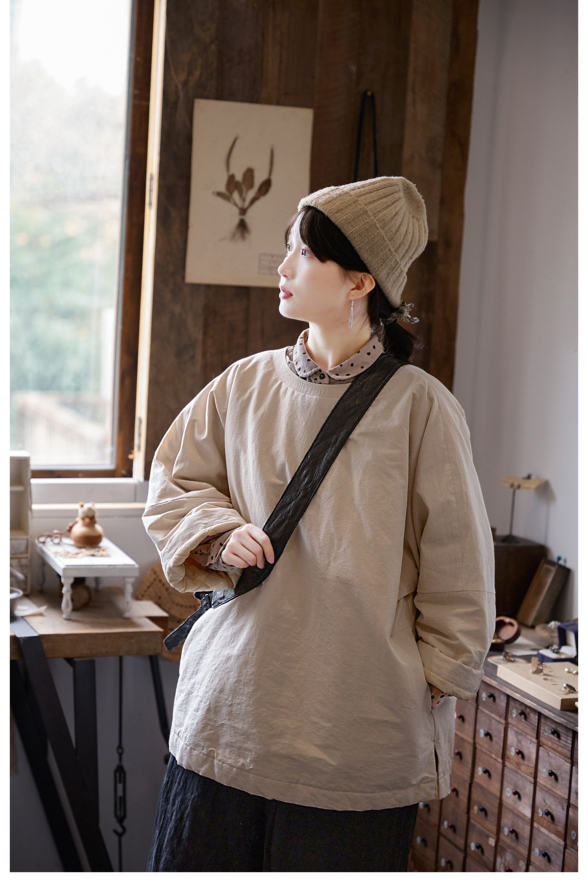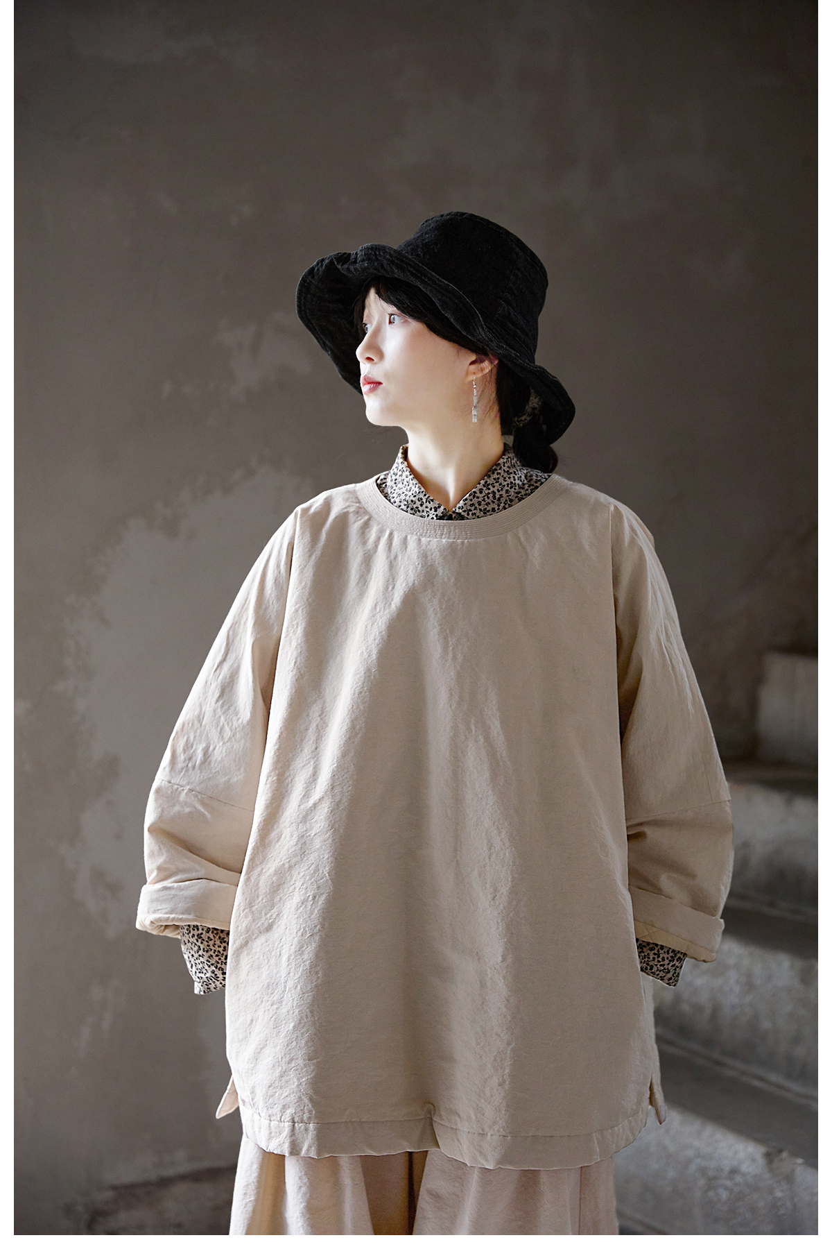 Original [Folk Art] Winter Coconut Shell White High-Quality Mulberry Silk Cashmere Simple Pullover Warm Cotton Coat 8616