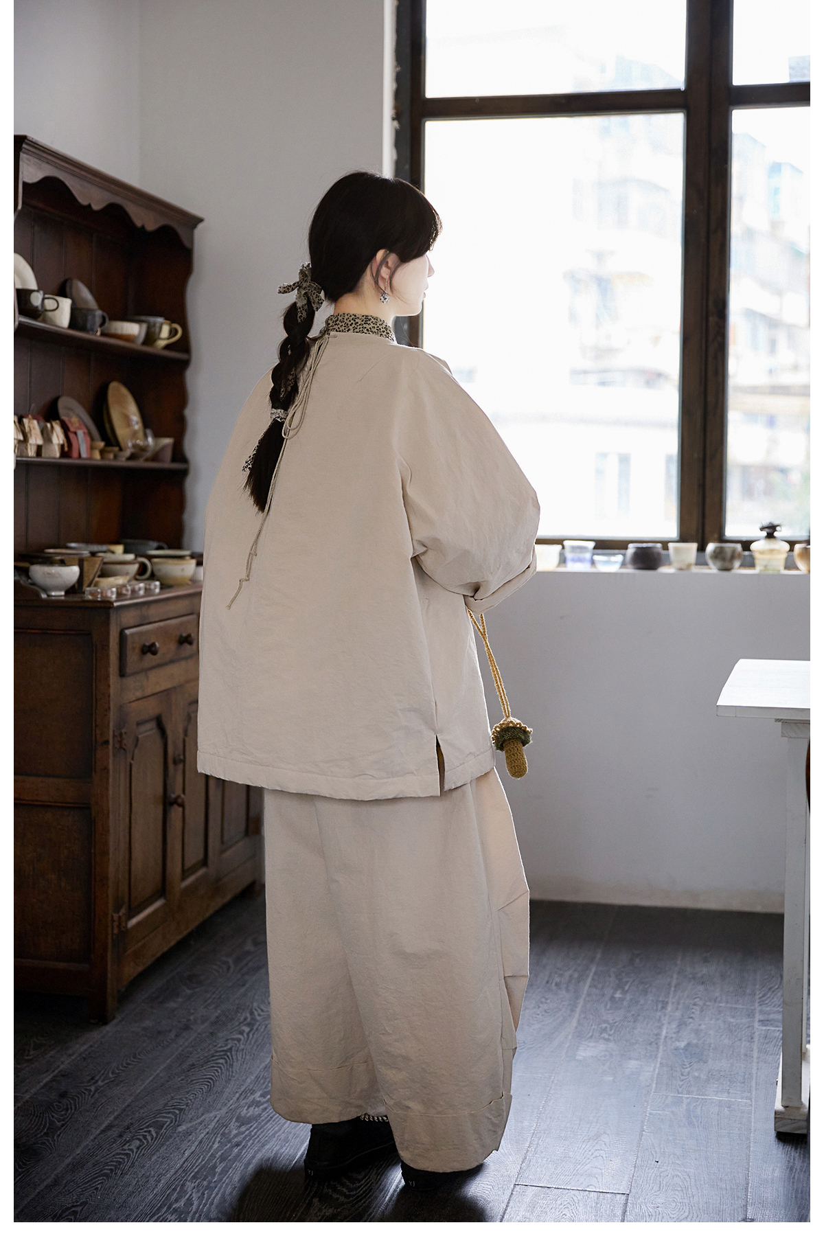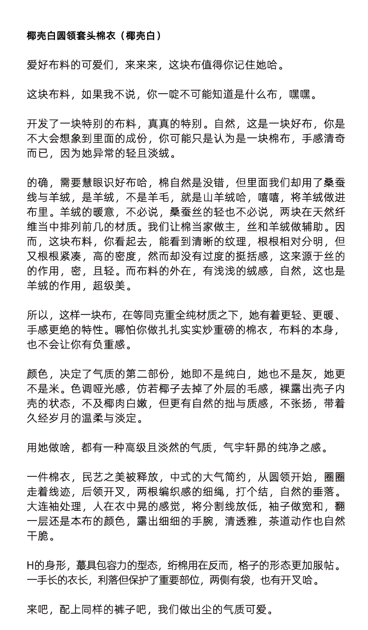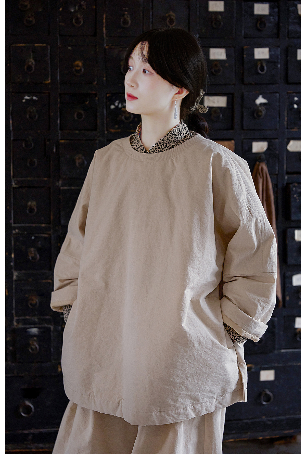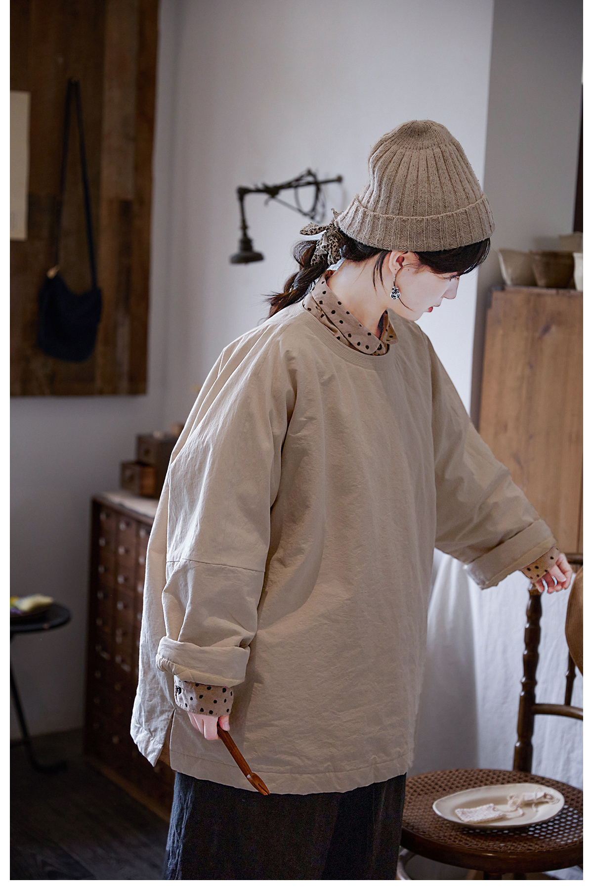 Original [Folk Art] Winter Coconut Shell White High-Quality Mulberry Silk Cashmere Simple Pullover Warm Cotton Coat 8616