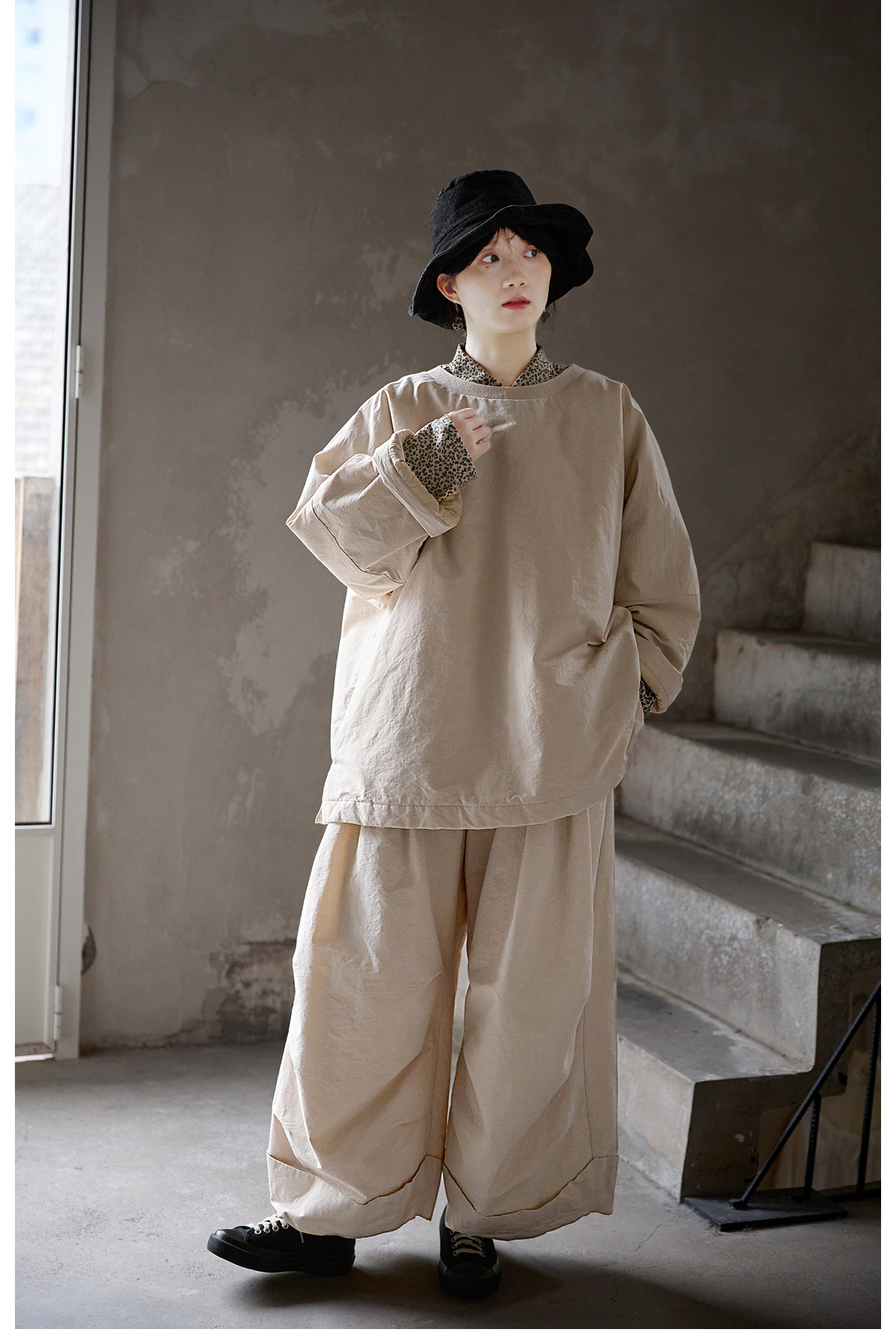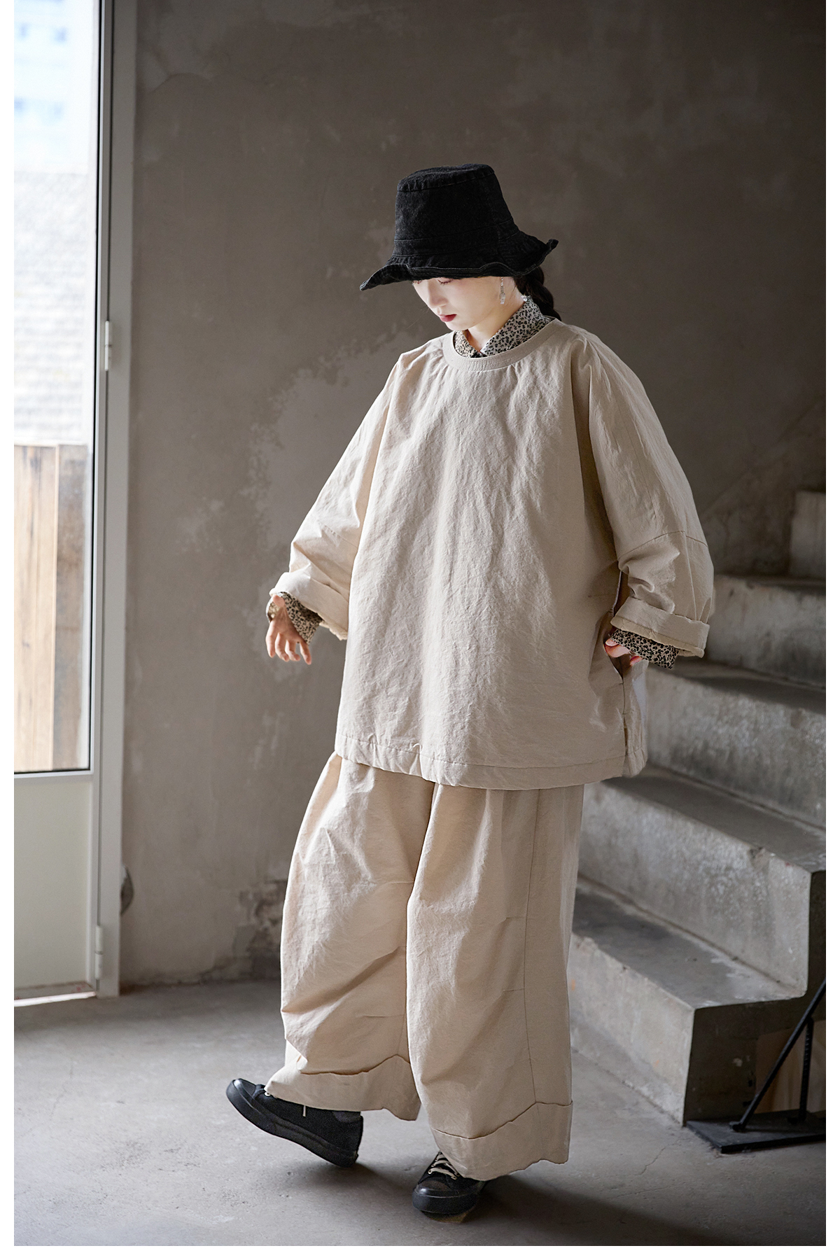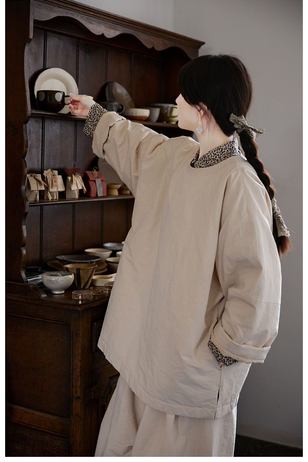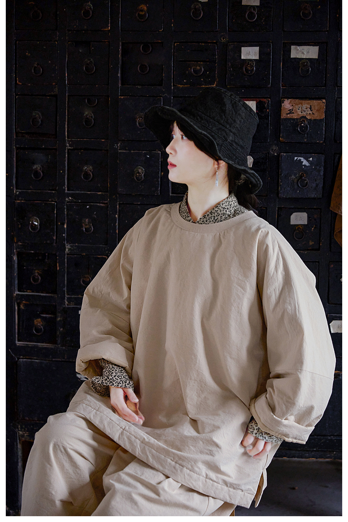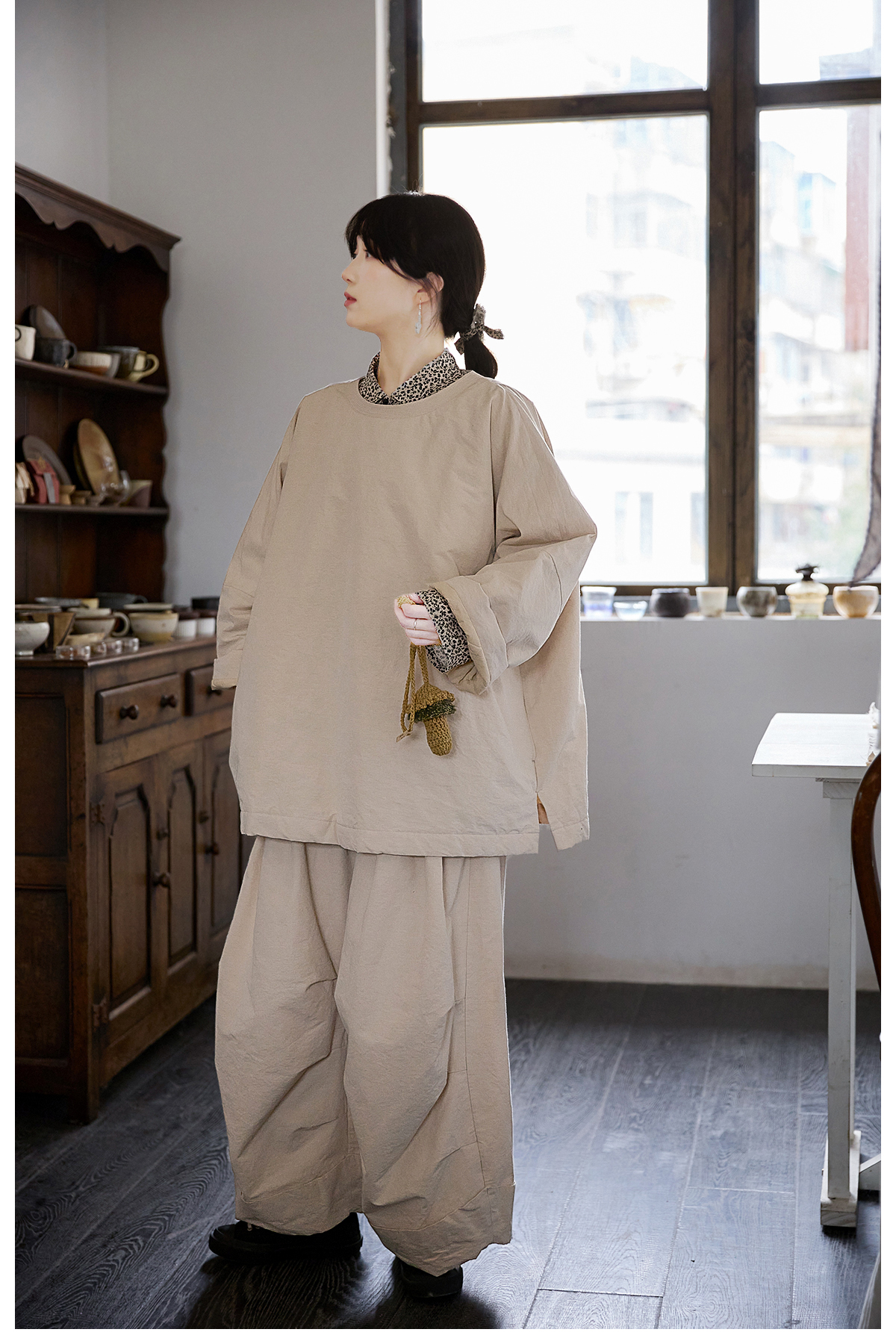 Original [Folk Art] Winter Coconut Shell White High-Quality Mulberry Silk Cashmere Simple Pullover Warm Cotton Coat 8616