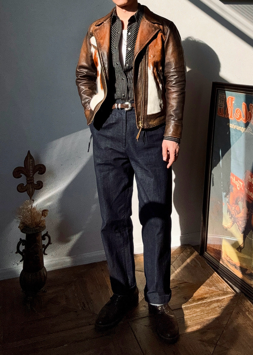 The Grand Finale of the Year~ the Final Work of the Peak Series ~ Cow Print Diagonal Zipper Jacket