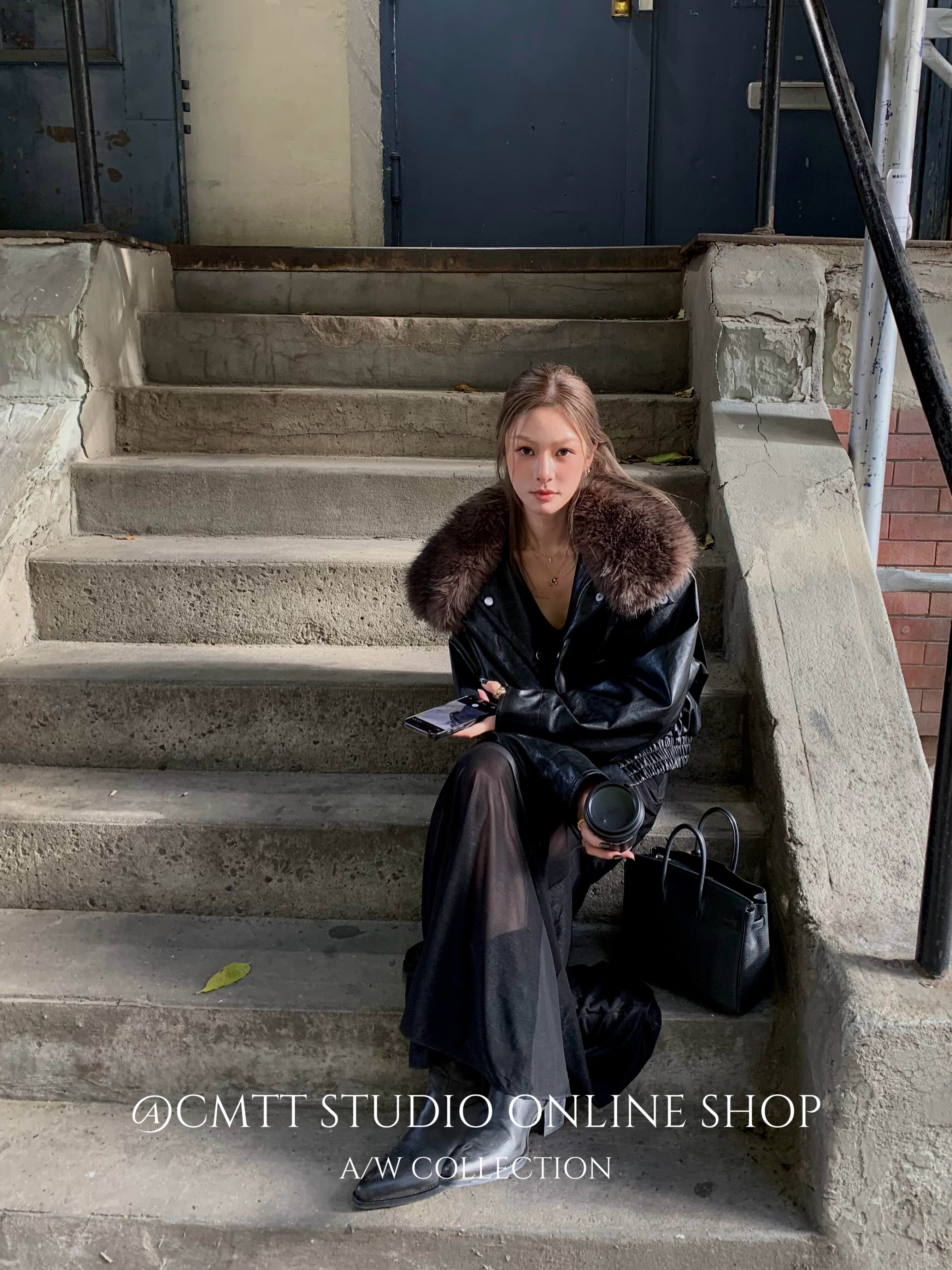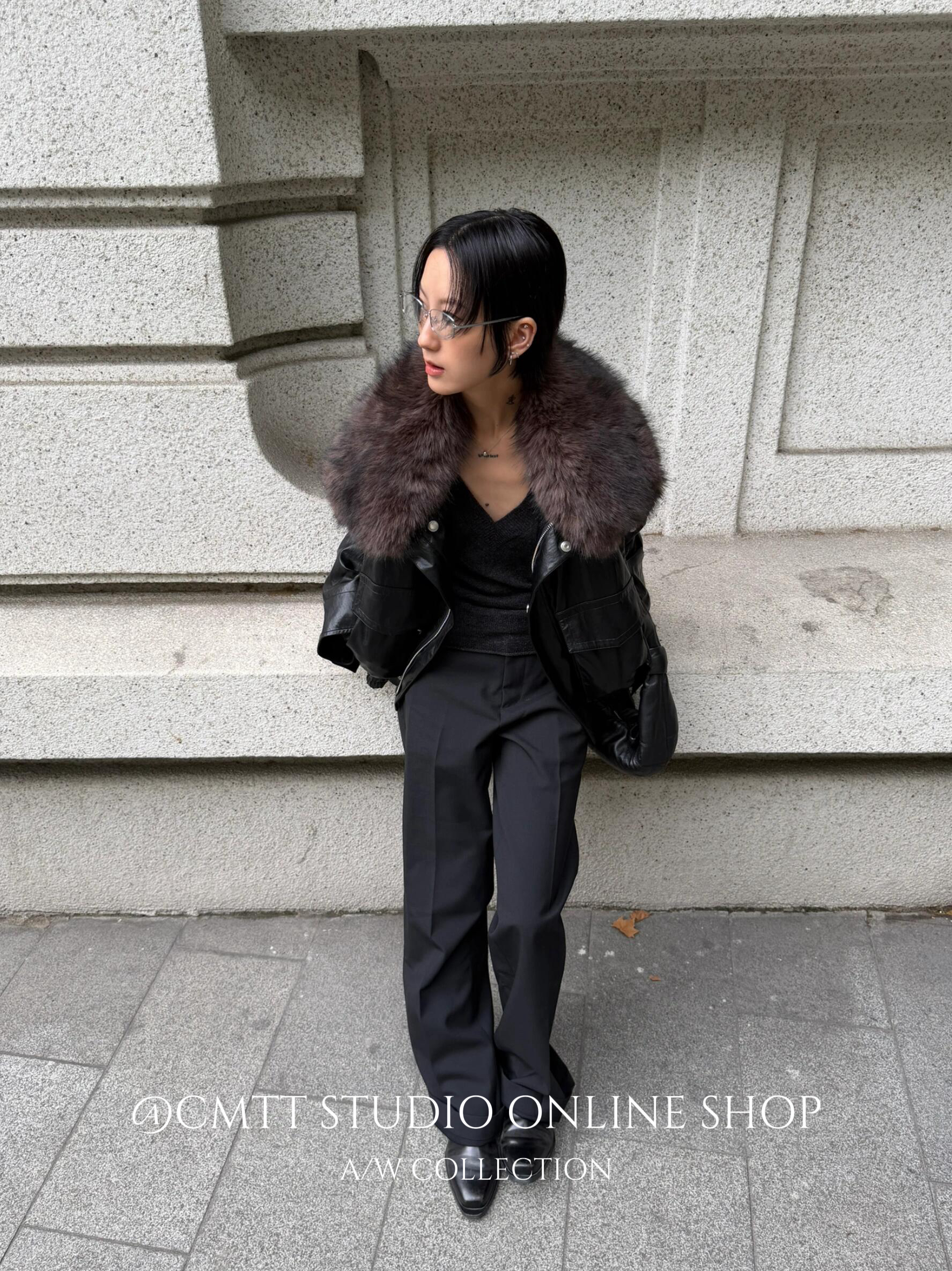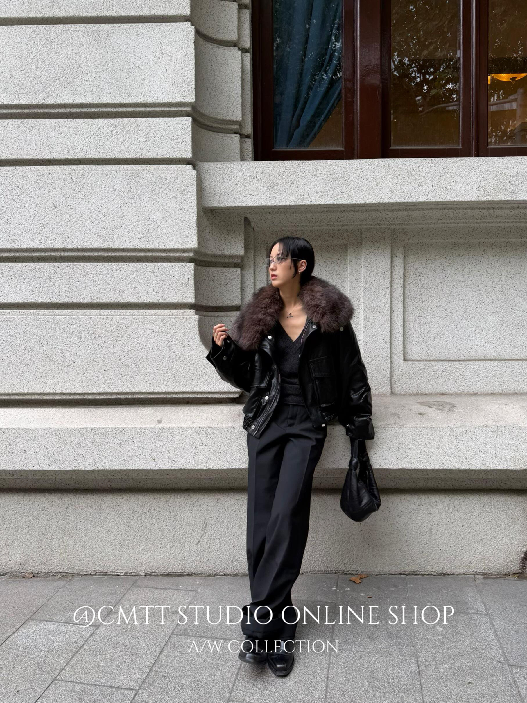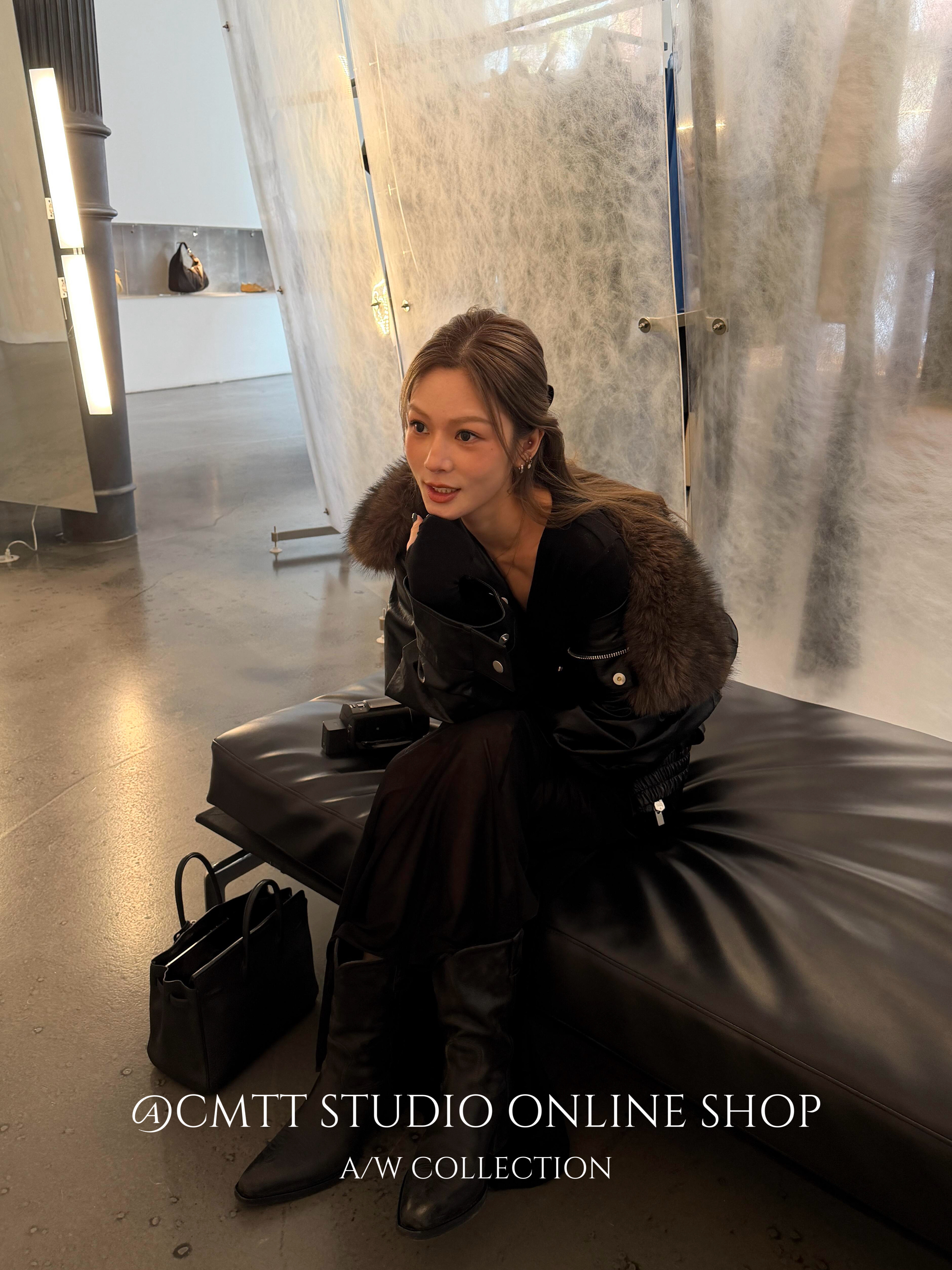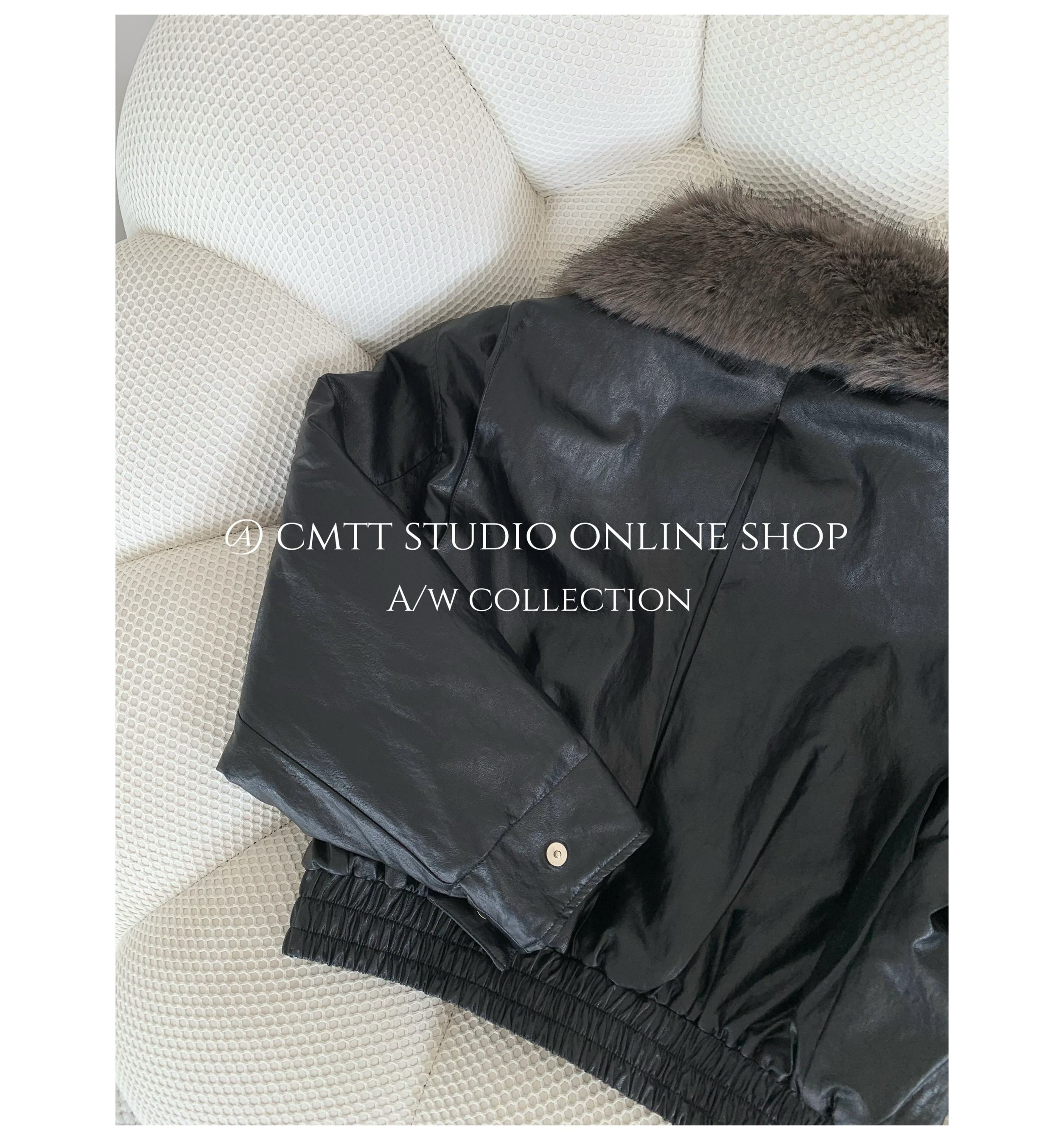 (Now) Nana's Same Style Fax Niche Design Adventure Black Fur Collar Leather-Feel Padded Jacket Leather Coat