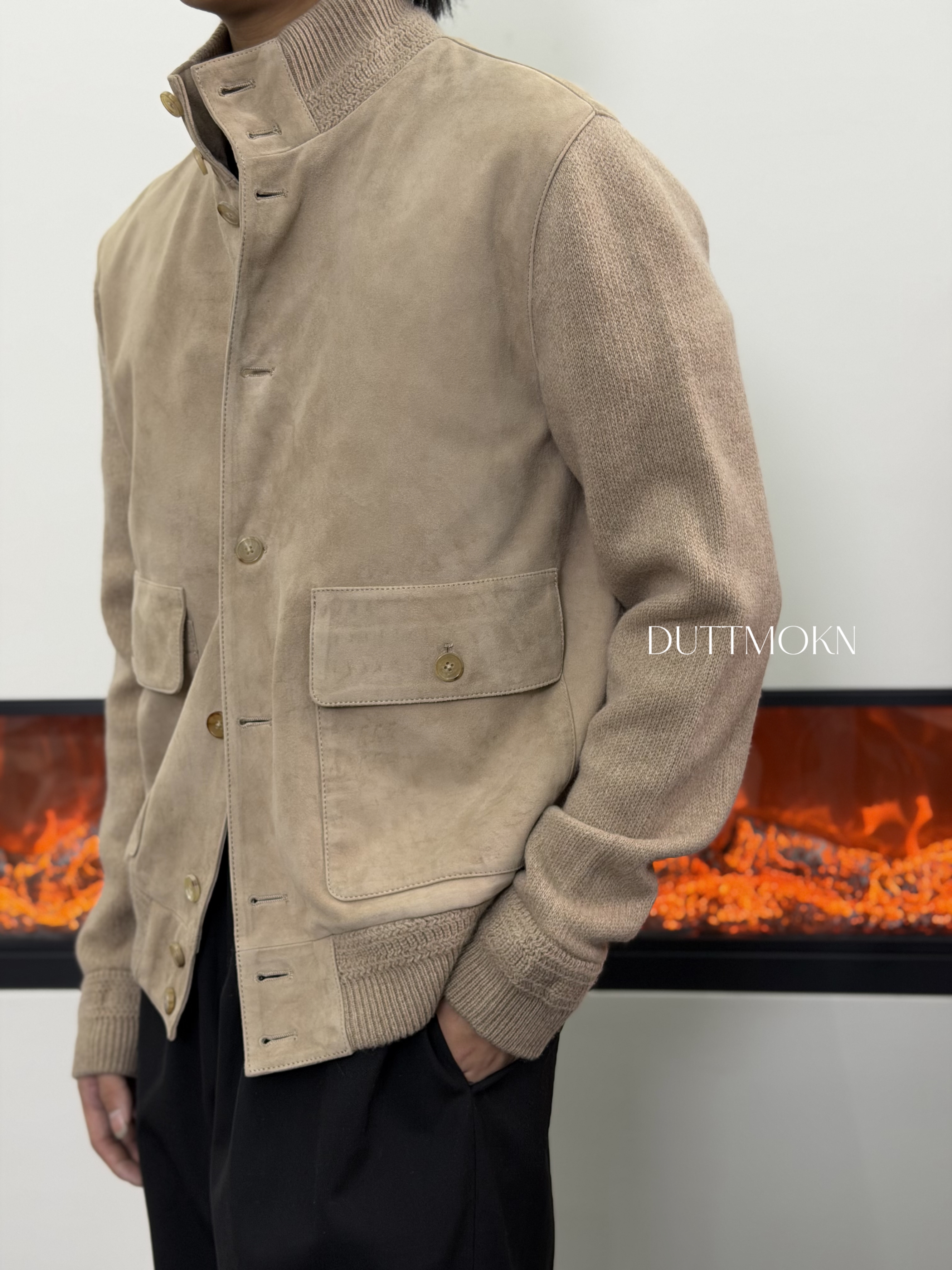 Duttmokn【Same Style as Rl Purple Label, Sudanese Lambskin】100% Goat Hair Knitted Jacket Casual Coat