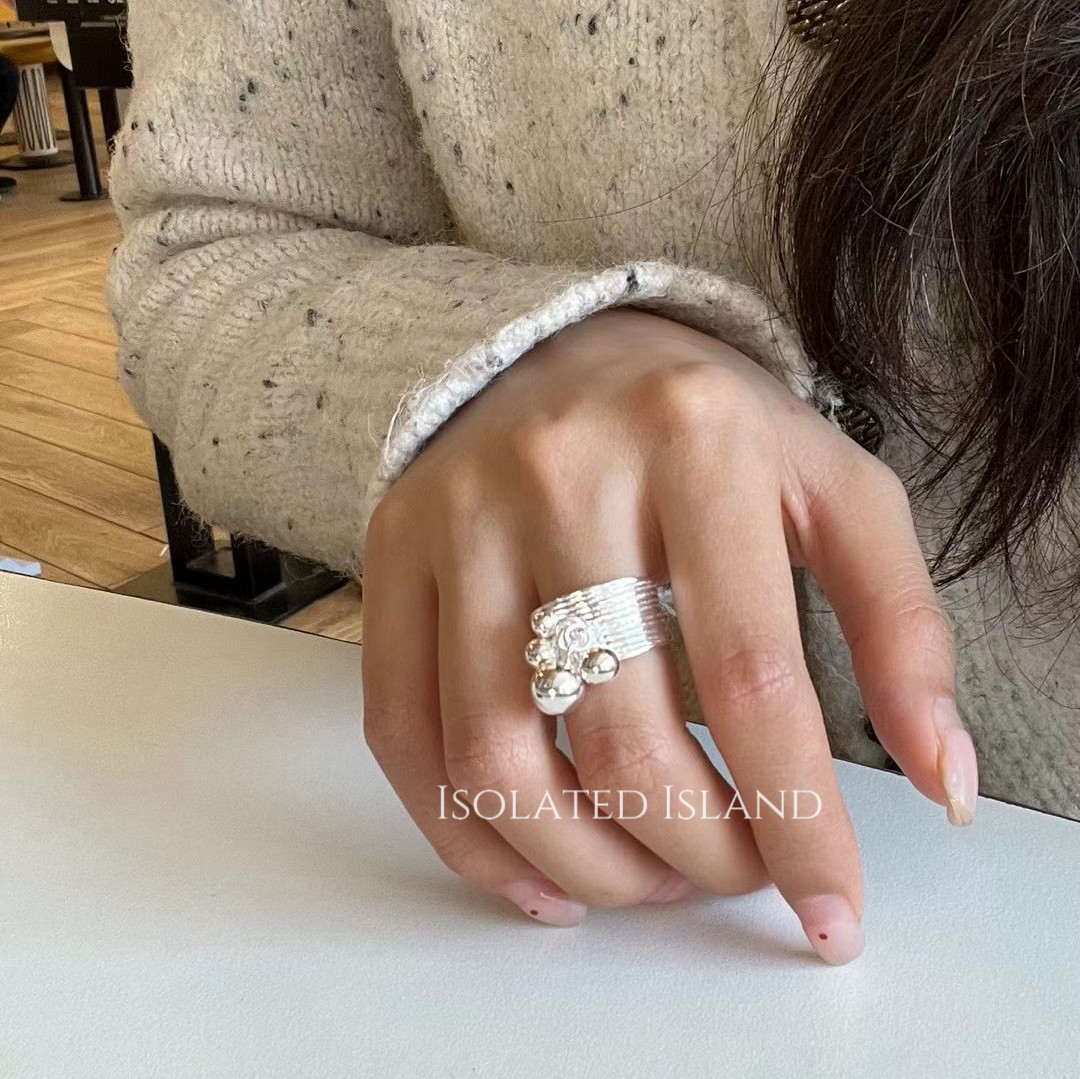 【Glacier】High-End All-Over S925 Sterling Silver Ring, Niche Versatile High-End Design with Small Silver Balls