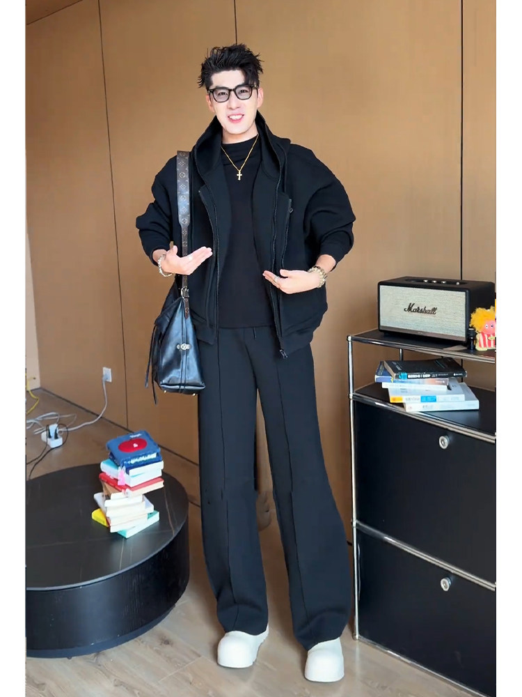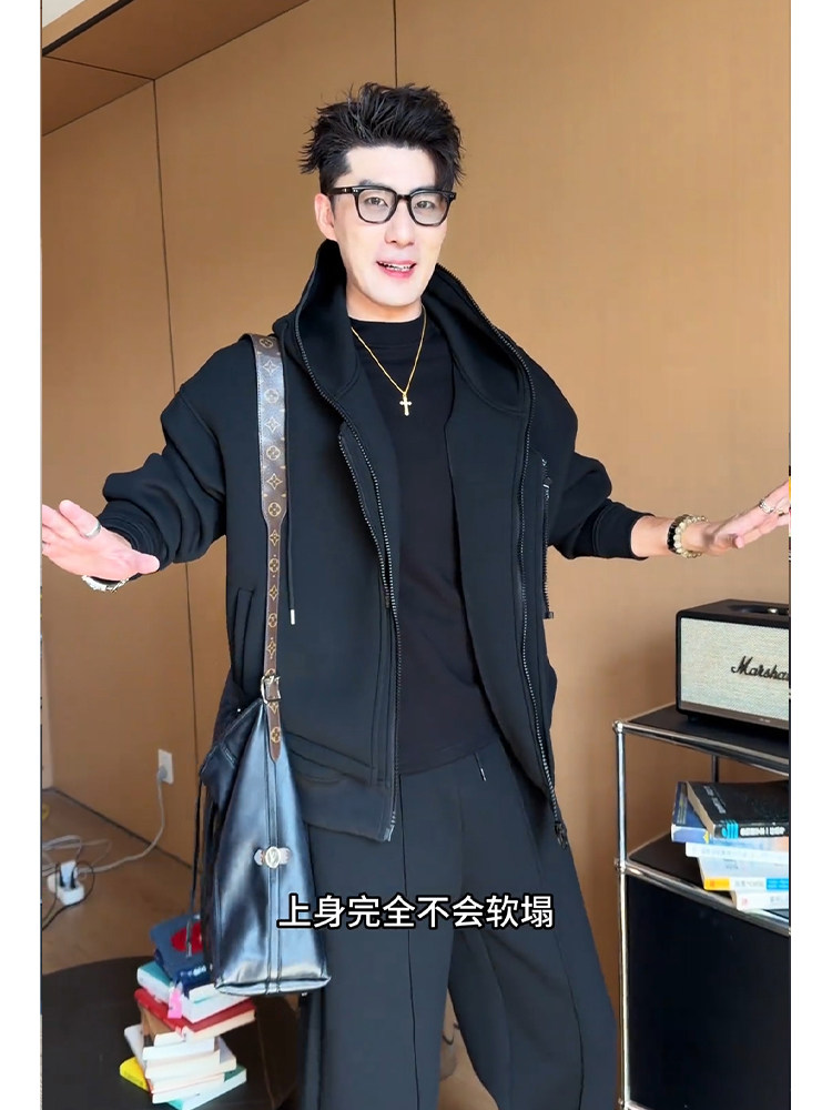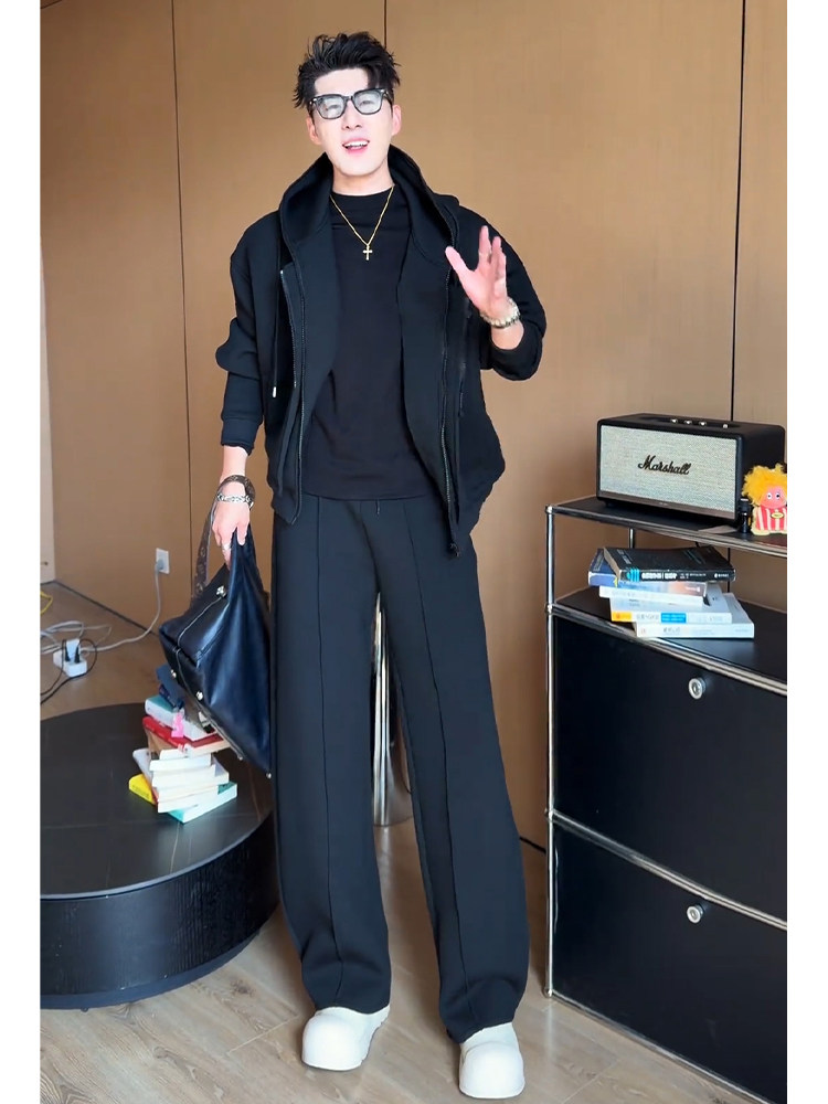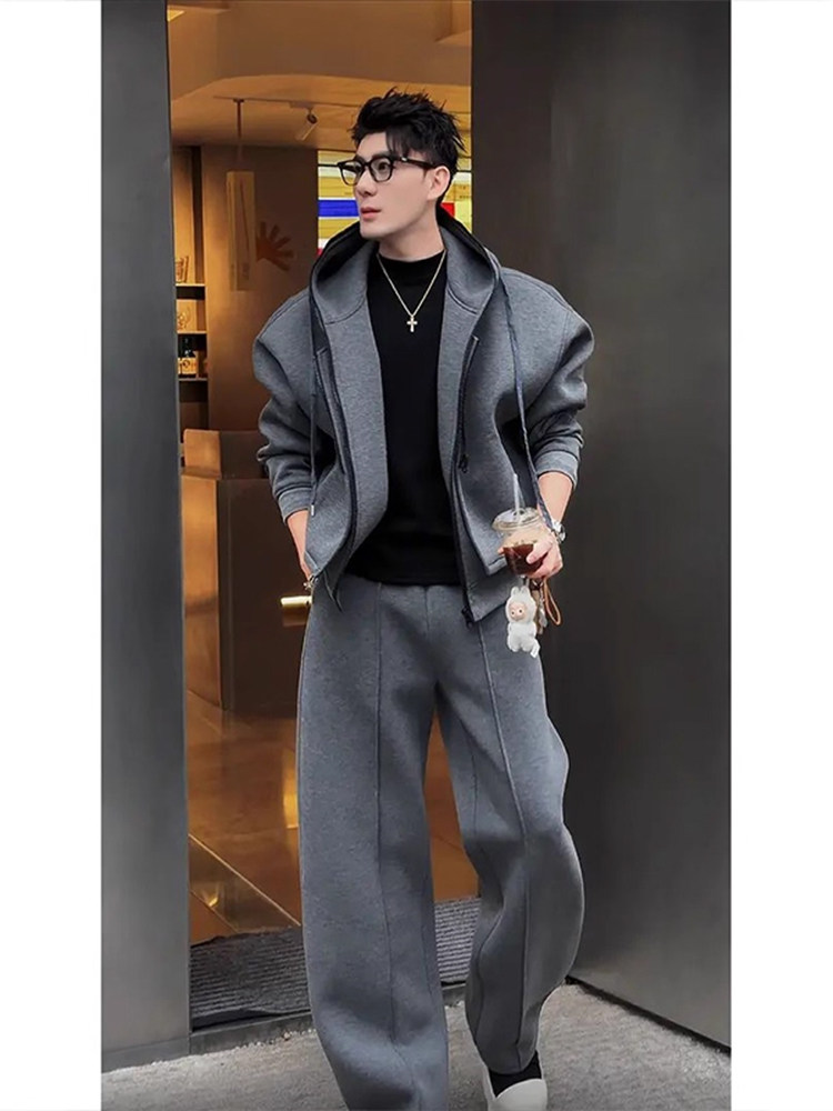 American-Style Cool and Handsome Outfit Set for Boys, Autumn and Winter Trendy Brand, High-End Silhouette Hooded Sweatshirt, Fashionable and Casual Complete Set
